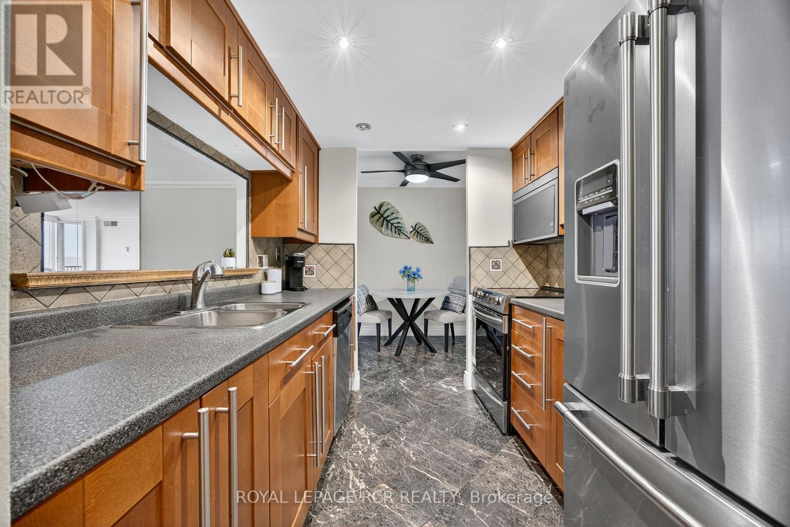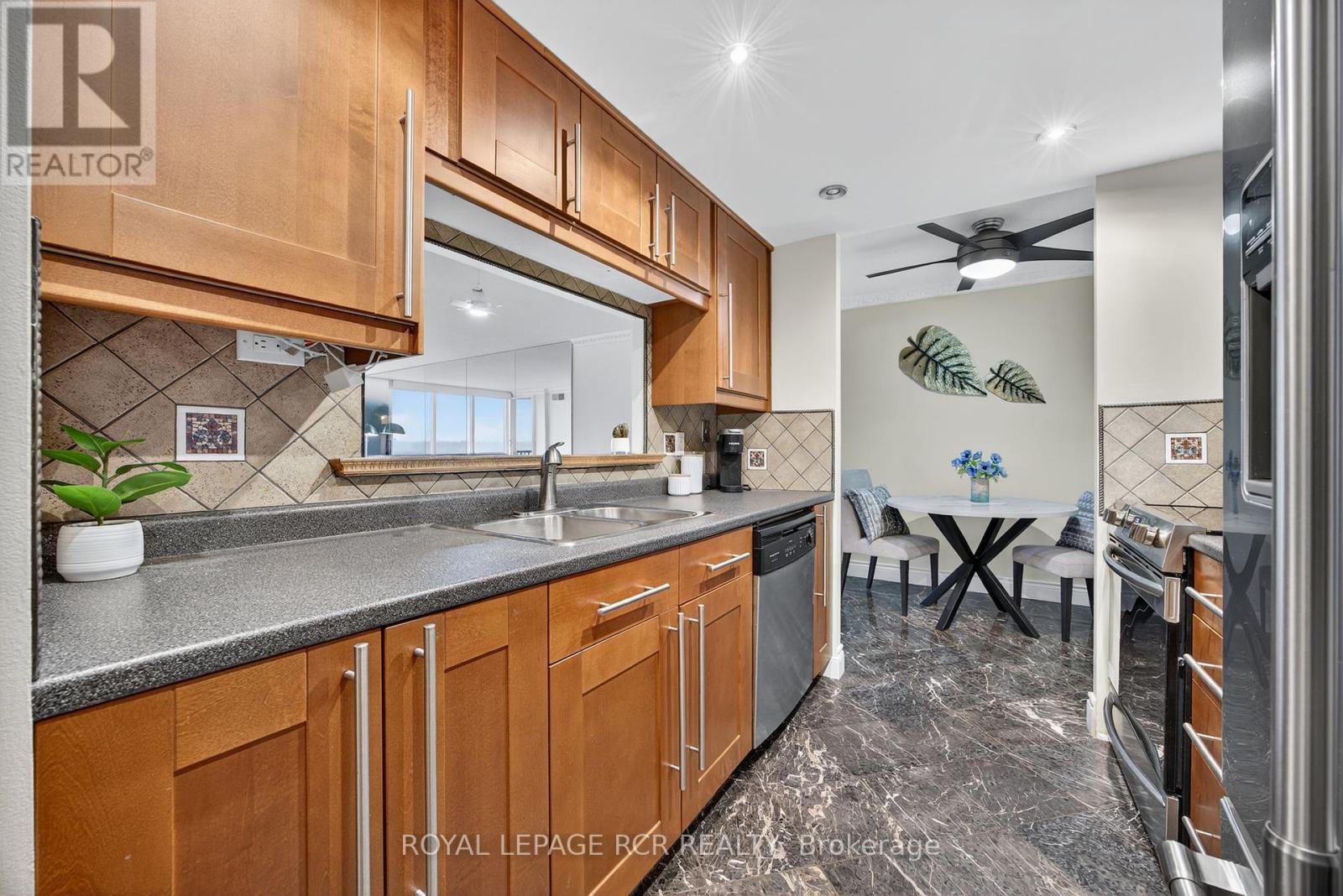 Welcome to Marina Bay! Soak in stunning south-facing views of Kempenfelt Bay from this beautifully updated 2-bedroom, 2-bath condo at Marina Bay Condos. Bright and spacious, this suite features a partially open kitchen with a breakfast bar overlooking the living area, Brazilian Cherry hardwood and marble flooring, remote-activated blinds, and a modern kitchen with sleek new appliances. The primary bedroom features a walk-in closet and full ensuite, while the second bedroom is perfect for guests, family, or a home office. Step out onto the private balcony to enjoy sunshine, lake breezes, and serene views. Experience resort-style living with an indoor pool, fully equipped gym, sauna, and landscaped common areas -- all just steps from Barrie's waterfront, beaches, parks, trails, and downtown dining. With easy access to shopping, cultural venues, and transit, this condo combines convenience, comfort, and the ultimate waterfront lifestyle. Lifestyle, and lake views -- all in one perfect package! (id:4555)