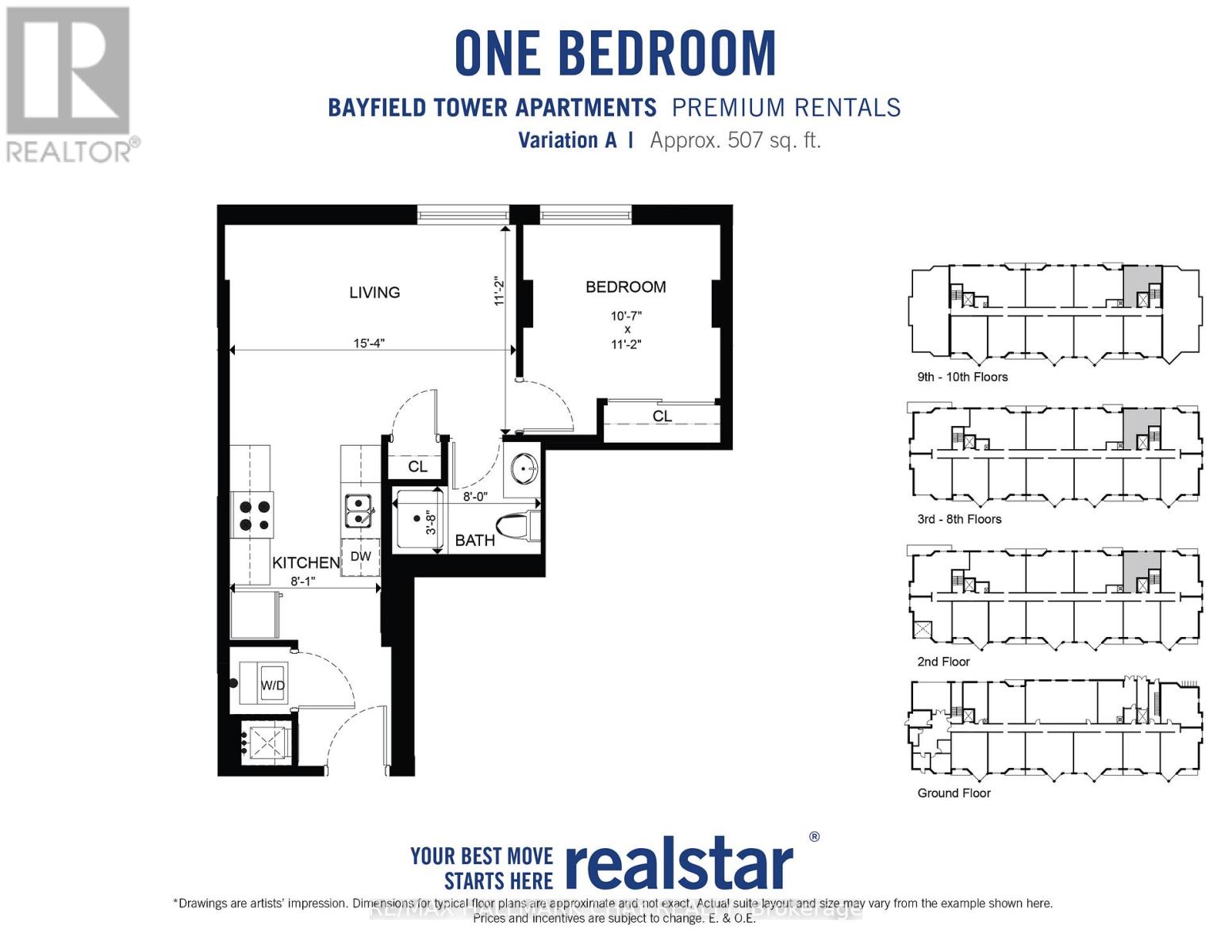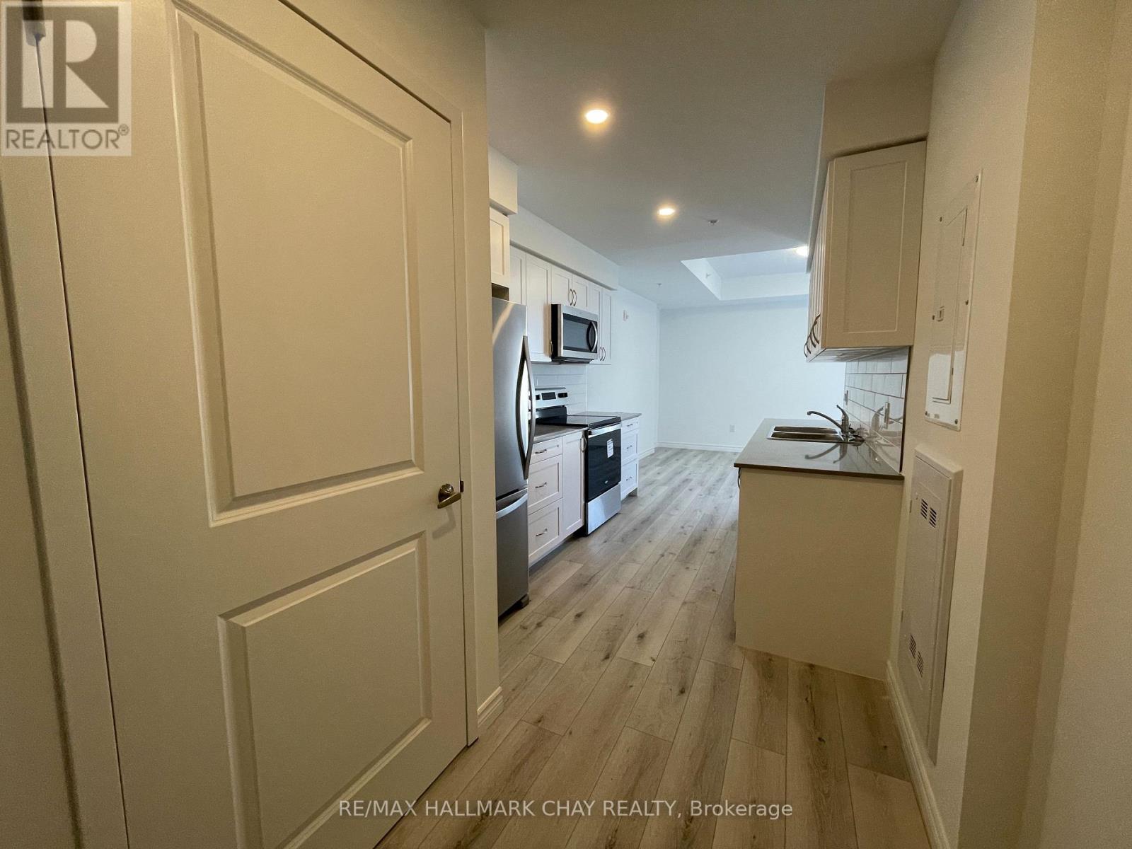 Welcome to Bayfield Tower Apartments, modern living at its finest. Bright, airy and spacious open concept 1 bed, 1 bath 507 square foot suite. Lovely Northeast view, providing a clear view. This apartment boasts 9' ceilings, luxury vinyl plank and ceramic tile flooring throughout. An upgraded kitchen with stainless steel appliances, an over-range built-in microwave, quartz countertop. In-suite laundry for your convenience, along with central air conditioning and forced air heat, and plenty of natural light throughout. Fantastic amenities, including two rooftop terraces with gas barbecue's, social room provides for resident to host social gatherings or book your private event, 24/7 on-site management. You can rent an additional storage locker as well as bike storage for a monthly fee. 100% smoke free building, friendly community environment, pet friendly, assigned parking (rental), visitor parking, dual elevators. Ideally located in North Barrie, minutes to shopping malls, grocery stores, pharmacies, banks, restaurants, public transit, City recreation Centre, parks, golf, and more.Easy access to major highways. This suite is a must see! (id:4555)