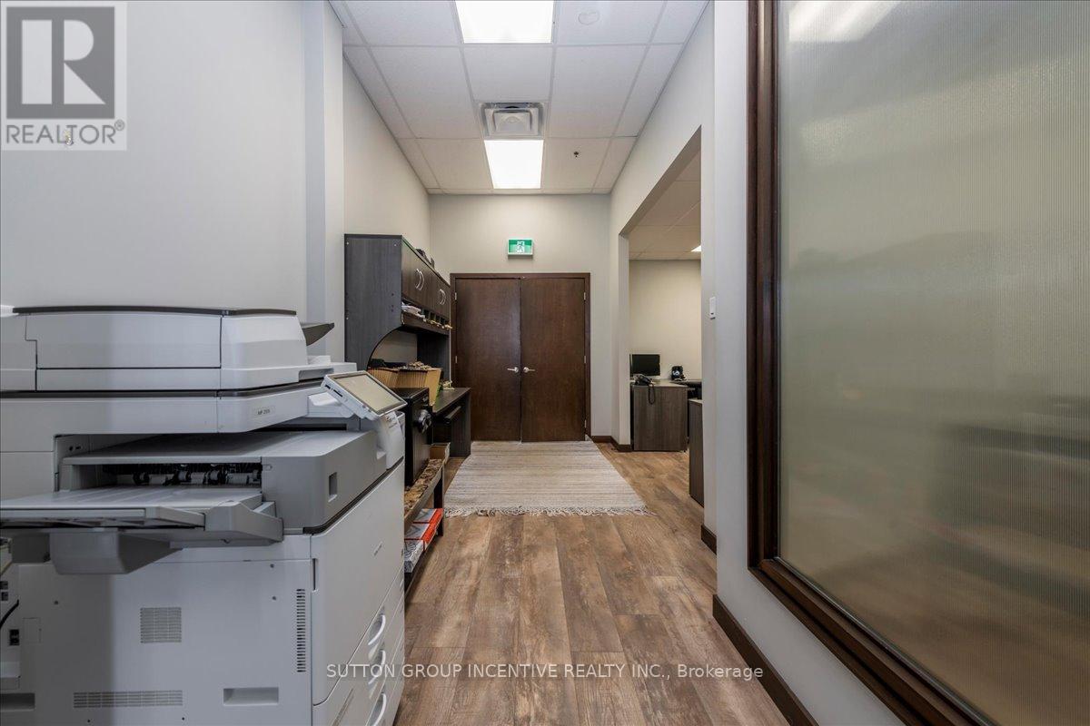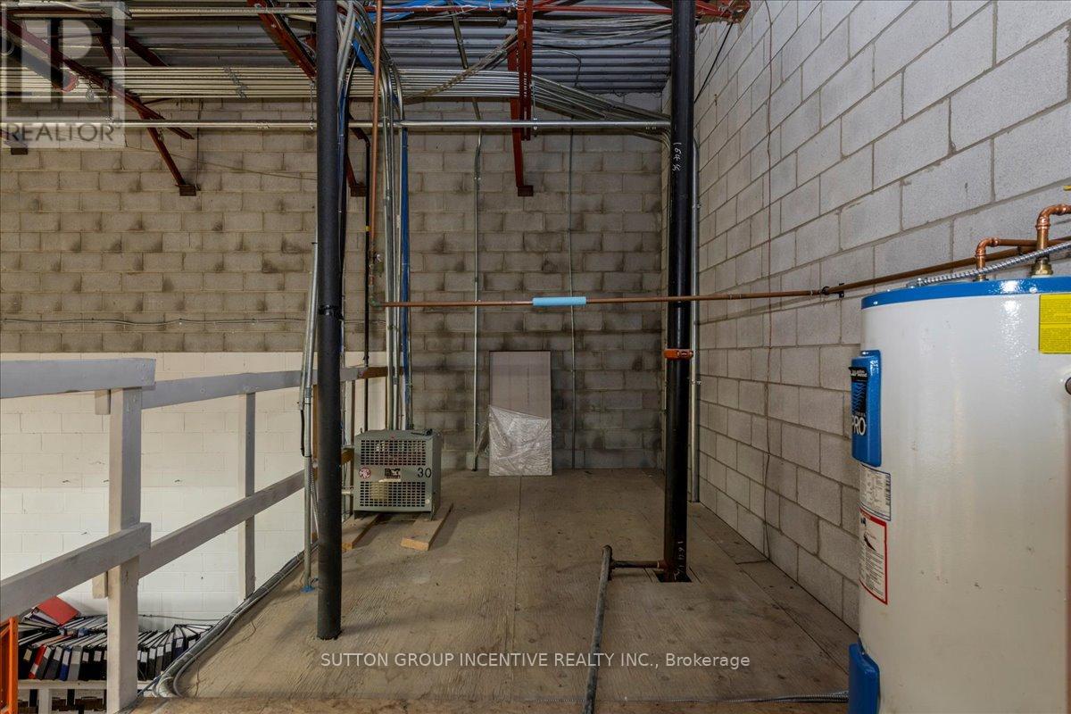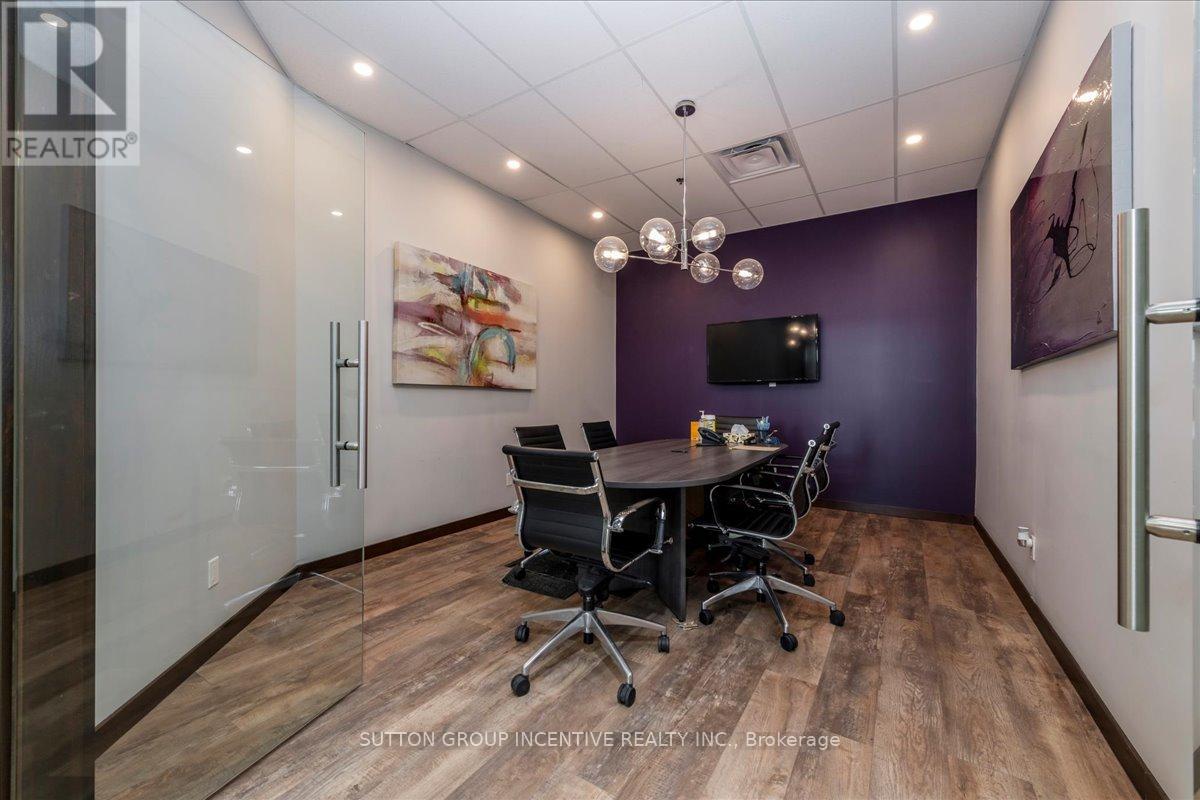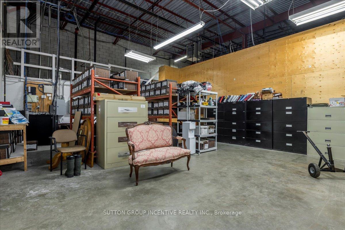 Stop paying someone else's mortgage -- own your workspace in the heart of Barrie, just minutes from downtown and Hwy 400. This professionally finished office spans two commercial condo units and was fully renovated in 2019. The front office area features a welcoming reception, waiting area, bright boardroom with custom glass doors, staff/lunch room, four private offices, open work area, and two washrooms -- ideal for a wide range of professional users. At the rear, utilize an approximate 740 SF of warehouse space with a 19' clear height and a 10' x 12' roll-up door, plus an additional 182 SF mezzanine for extra storage. Comfort and efficiency are covered with ductless heat pumps in the front offices for added cooling (2020), updated central air (2020), and a new forced-air natural gas furnace (2023).Included are a built-in custom desk and hutch in the angled office, custom blinds throughout, fridge, dishwasher, microwave, HWT (owned) and boardroom table. Additional furnishings (including copier) may be available, subject to negotiation. Flexible possession. Monthly condo fees of $775.93 include water/sewer, snow removal, landscaping, insurance, management, non-exclusive parking, and building envelope maintenance. (id:4555)