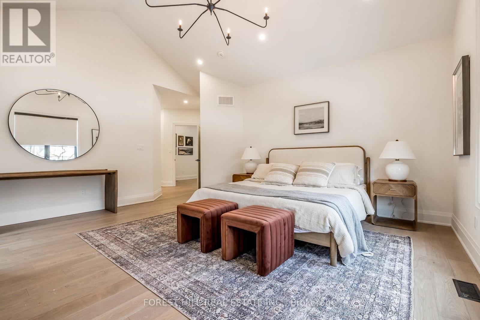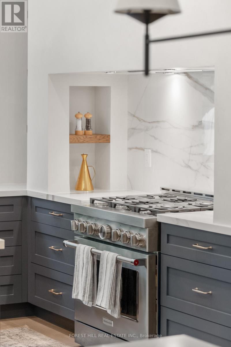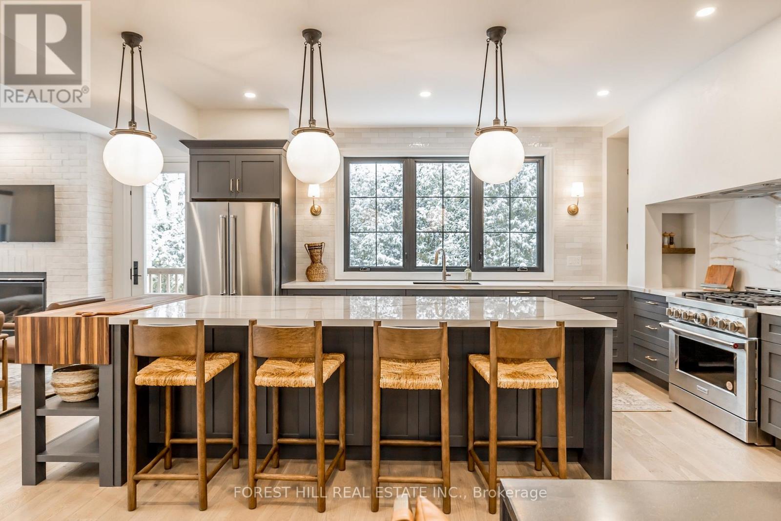 A fully furnished, turnkey residence offered in one of Barrie's finest neighbourhoods, this cozy yet luxurious home is truly a masterpiece. Designed for effortless living, it offers a rare combination of sophisticated style, thoughtful functionality, and maintenance-free comfort. Fall in love with the innovative design and exceptional craftsmanship of this curated home, where every detail has been carefully selected to create a harmonious balance of elegance and warmth. At the heart of the home is a show-stopping kitchen, featuring an oversized island finished in Handstone Quartz with a striking walnut butcher-block accent. Designed for both family living and entertaining, the space includes a custom range, designer lighting and a fully equipped bar and coffee station.The open-concept layout flows seamlessly into the inviting front living room, anchored by a cozy Napoleon fireplace, while the generous dining room offers an additional walkout-perfect for indoor-outdoor entertaining. A large main-floor laundry room blends refined design with exceptional practicality.Upstairs, the second level offers four spacious bedrooms and three beautifully appointed bathrooms. The private primary suite is a true retreat, tucked into its own wing with vaulted ceilings, a fireplace, a luxurious freestanding tub, and a custom walk-in closet with built-ins.The fully finished basement adds outstanding versatility with a spacious family room, a full bathroom, and an additional flex area ideal for a potential bedroom, home office, or home gym.Outside, the yard is quaint, private, and low-maintenance, providing a peaceful outdoor escape. Ideally located just a short stroll to the lake, walking trails, scenic parks, and shopping, this exceptional home delivers the ultimate blend of luxury, lifestyle, and location. (id:4555)