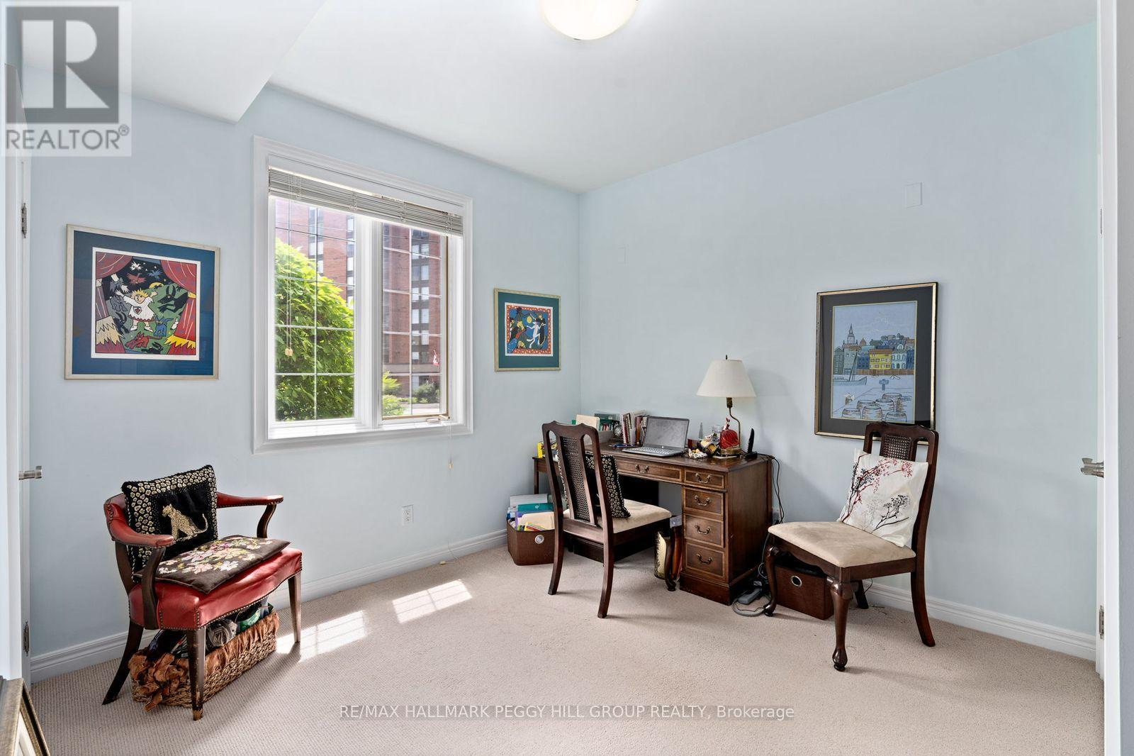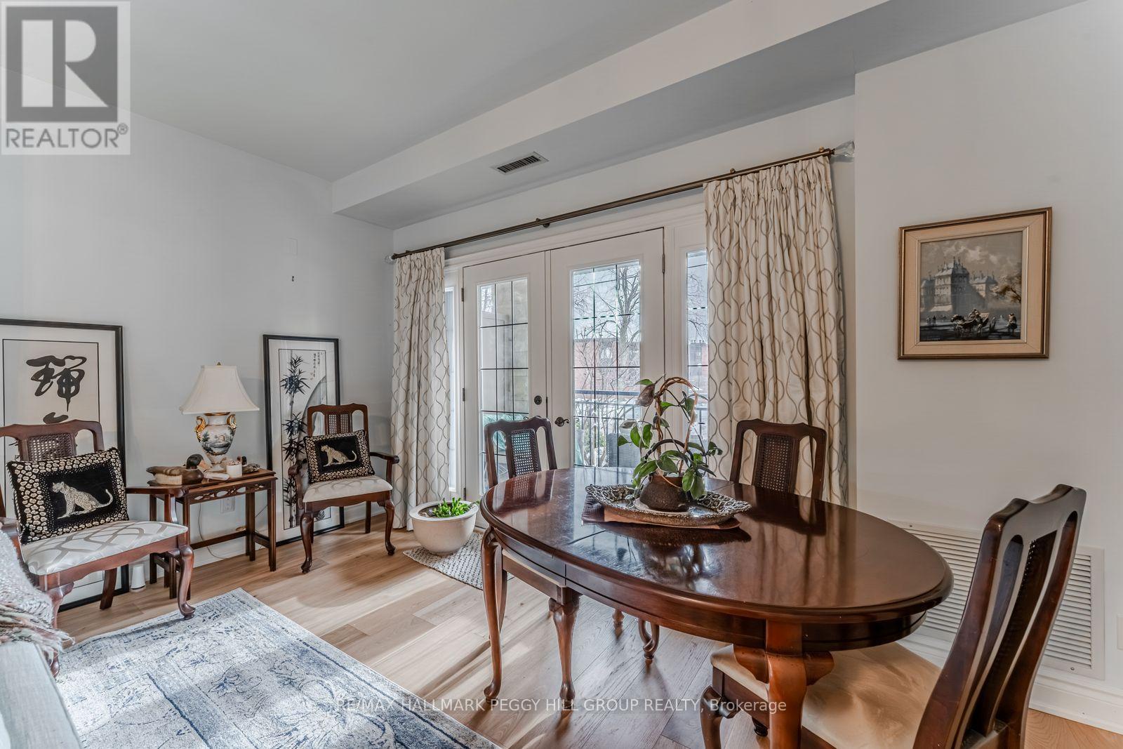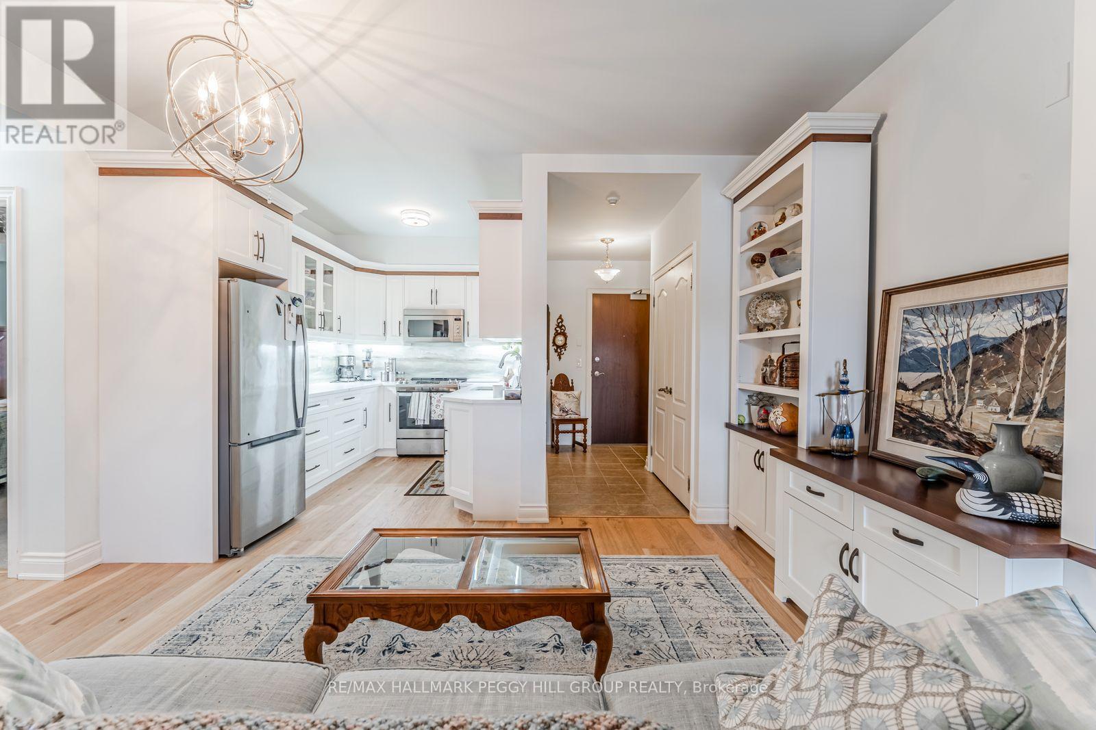 GROUND FLOOR END UNIT IN A WELL-MAINTAINED, QUIET BUILDING JUST STEPS TO THE WATERFRONT & DOWNTOWN BARRIE! Life at "The Roxborough" Condos brings together quiet living, beautifully kept surroundings, and the ease of walking to the waterfront, the downtown core, dining, entertainment, and the Farmers' Market. This charming and quiet 3-storey building stands out with its elegant stone exterior, boutique character, and meticulously kept gardens, offering underground and visitor parking, a community room, and a guest suite. The well-kept interior with a functional layout features newer wide-plank engineered hardwood flooring through the principal rooms, adding warmth and durability, while the modernized U-shaped kitchen makes a statement with quartz countertops, white shaker cabinetry topped with crown moulding, and stainless steel appliances. Double garden doors open from the living and dining room to a ground-floor terrace wrapped in lush greenery and mature gardens, a rare and inviting extension of living space when the weather turns warm. Two comfortable bedrooms each offer double closets, adding flexibility for guests, hobbies, or a tucked-away home office. Water is included in the condo fees for predictable monthly living, and the unit includes a locker and the option to rent a second parking spot. This is a standout #HomeToStay for buyers who want downtown living with a calmer place to call home. (id:4555)
