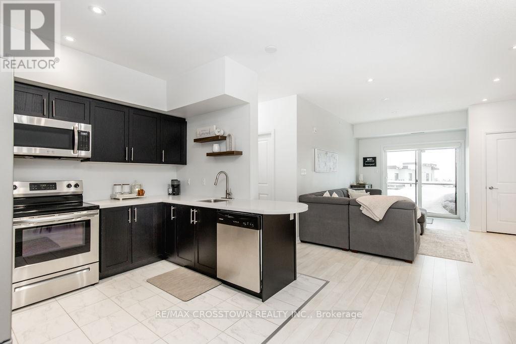 Quiet top-floor living, rooftop views, and stargazing at night on your private balcony, this condo offers an elevated lifestyle. Welcome to 609-304 Essa Rd at The Gallery Condos, a bright and beautifully maintained top-floor suite offering space, privacy, and effortless living in a central Barrie location. This modern 2 bedroom, 1 bathroom condo spans over 1,000 sq ft and is filled with natural light thanks to oversized windows and a thoughtfully designed open concept layout.The kitchen, dining, and living areas flow seamlessly and provide room for a long harvest table or a separate at-home office area, making it ideal for entertaining or work-from-home life. Oversized bedrooms, large closets, and excellent storage add to the functionality of the space. With only one neighbouring unit and no one above, this is the quiet and peaceful home you have been searching for, paired with the conveniences of condo living.Step outside to your penthouse balcony, perfect for outdoor dining, relaxing under the stars, or enjoying views of trees and the city. Residents also enjoy access to a stunning rooftop terrace with panoramic views across Barrie, a truly special place to unwind.Built in 2018, this condo features in-suite laundry, air conditioning, elevator access, visitor parking, and two owned parking spaces, a rare and valuable bonus. Condo fees include water, building insurance, and snow removal, meaning no more shovelling for you.Pet lovers will appreciate that the building allows two pets per unit with no size restrictions.Conveniently located close to grocery stores, restaurants, hotels, RONA, trails, Barrie's waterfront, downtown, Highway 400, and the Barrie Allandale GO Station, this is an ideal option for commuters, professionals, downsizers, couples, or small families. Modern, spacious, and move-in ready, this top-floor condo delivers comfort, convenience, and lifestyle in one exceptional offering. Take a look today! (id:4555)