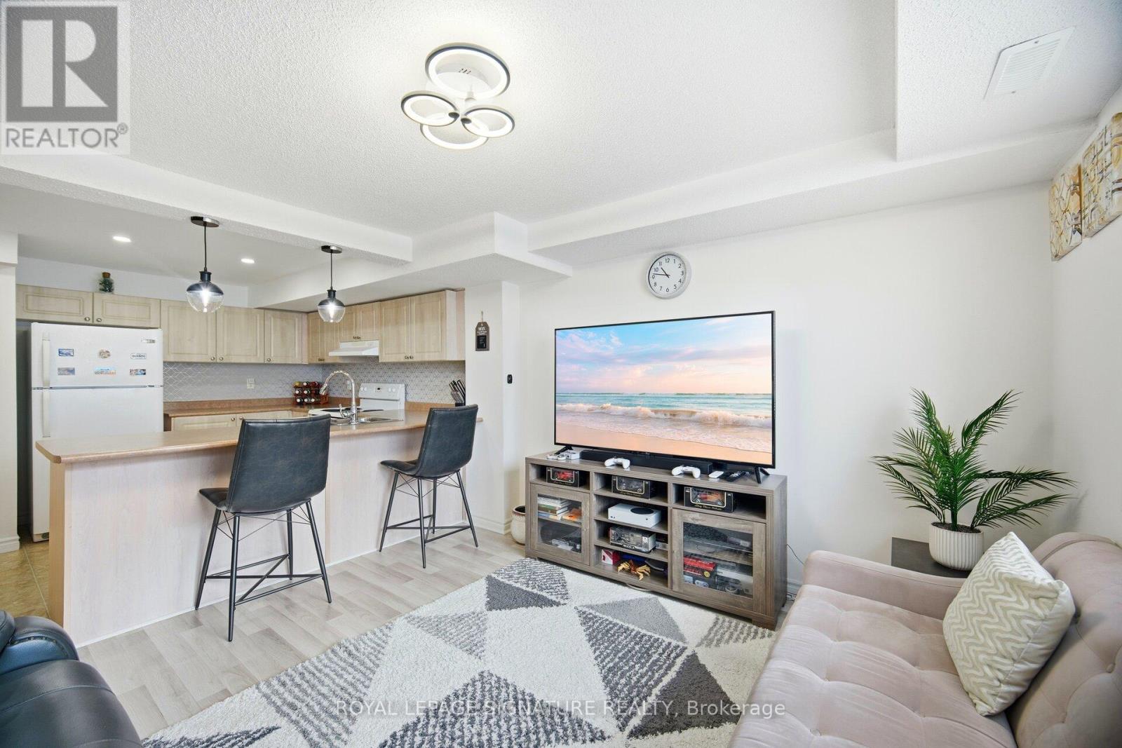 AN EXCELLENT OPPORTUNITY FOR FIRST-TIME BUYERS, DOWNSIZERS, SENIORS, OR INVESTORS. WALKABLE CONVENIENCE AND EASY COMMUTING. Meticulously maintained and move-in ready. bright corner-unit condo "townhouse Styled" offers the perfect blend of style, comfort, and convenience. Located in a quiet, low-rise, family-friendly development, this turn-key 1-bedroom home is flooded with natural light thanks to its corner exposure and large windows. The open-concept main level features laminate flooring, a spacious living area, and a modern eat-in kitchen complete with backsplash, upgraded pot lights, and all appliances included-ideal for everyday living and entertaining. The kitchen was tastefully updated in2023. The generously sized bedroom offers excellent views and is equipped with a high-efficiency heating and cooling system for year-round comfort. Equipped With A full 4-piecebathroom. Additional features include a dedicated utility room, in-suite laundry, one parking space, and professional painting completed prior to listing. Enjoy low condo fees, low utility costs, and truly maintenance-free living with no snow removal or grass cutting. The development is kid-friendly and includes its own playground, with convenient mobility access and parking close to the unit. Ideally situated just minutes from Barrie South GO Station, Mapleview Shopping Area, top-rated schools, grocery stores, restaurants, and major amenities. (id:4555)