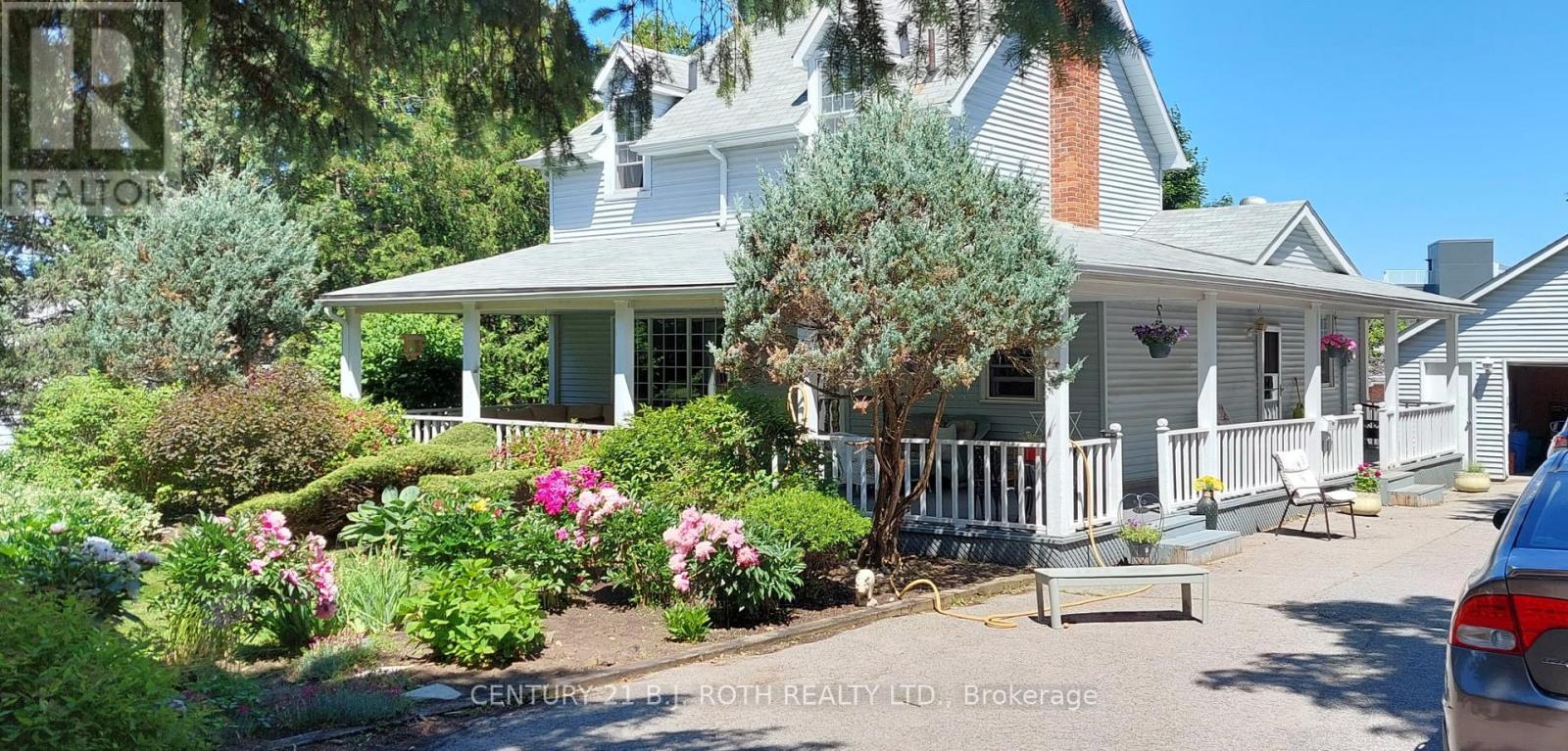 An extraordinary opportunity to own a piece of Barries history in the heart of Allandale. Set on a massive 101 x 235 mature, tree-lined lot, this 1870-built century home offers unmatched privacy and tranquillity rarely found within city limits. A long, private driveway stretches nearly 100 feet from the road, opening to reveal this historic residence, perfectly nestled among towering trees in complete serenity. A detached garage/workshop with power includes a bonus lower level, ideal for a hobbyist, home gym, or studio, while parking for 810 vehicles adds incredible convenience. The homes wrap around porch features an impressive 12 x 40 covered front veranda - a peaceful space to relax through summer evenings or rainy days alike. Blending timeless craftsmanship and vintage charm, the interior offers four bedrooms (one on the main floor) and two full bathrooms, including a renovated 4-piece bath and foyer with heated floors. Natural light fills every room with treed views throughout, while the private, landscaped backyard showcases lush gardens, a raised deck, and room for a potential pool oasis or garden suite. Upstairs are three spacious bedrooms and a full bath, complemented by the original staircase and character hardwood flooring beneath the current finishings. Updates include structural work to the porch, newer porch and garage shingles, eavestroughs, and west-side foundation waterproofing. Located just minutes to the Allandale Waterfront GO Station, Kempenfelt Bay, downtown Barrie, and steps to Shear Park and St. John Catholic School and Church, this rare, character-filled home offers a once-in-a-generation opportunity to own a century property on an estate-sized lot in one of Barries most sought-after neighbourhoods. (id:4555)