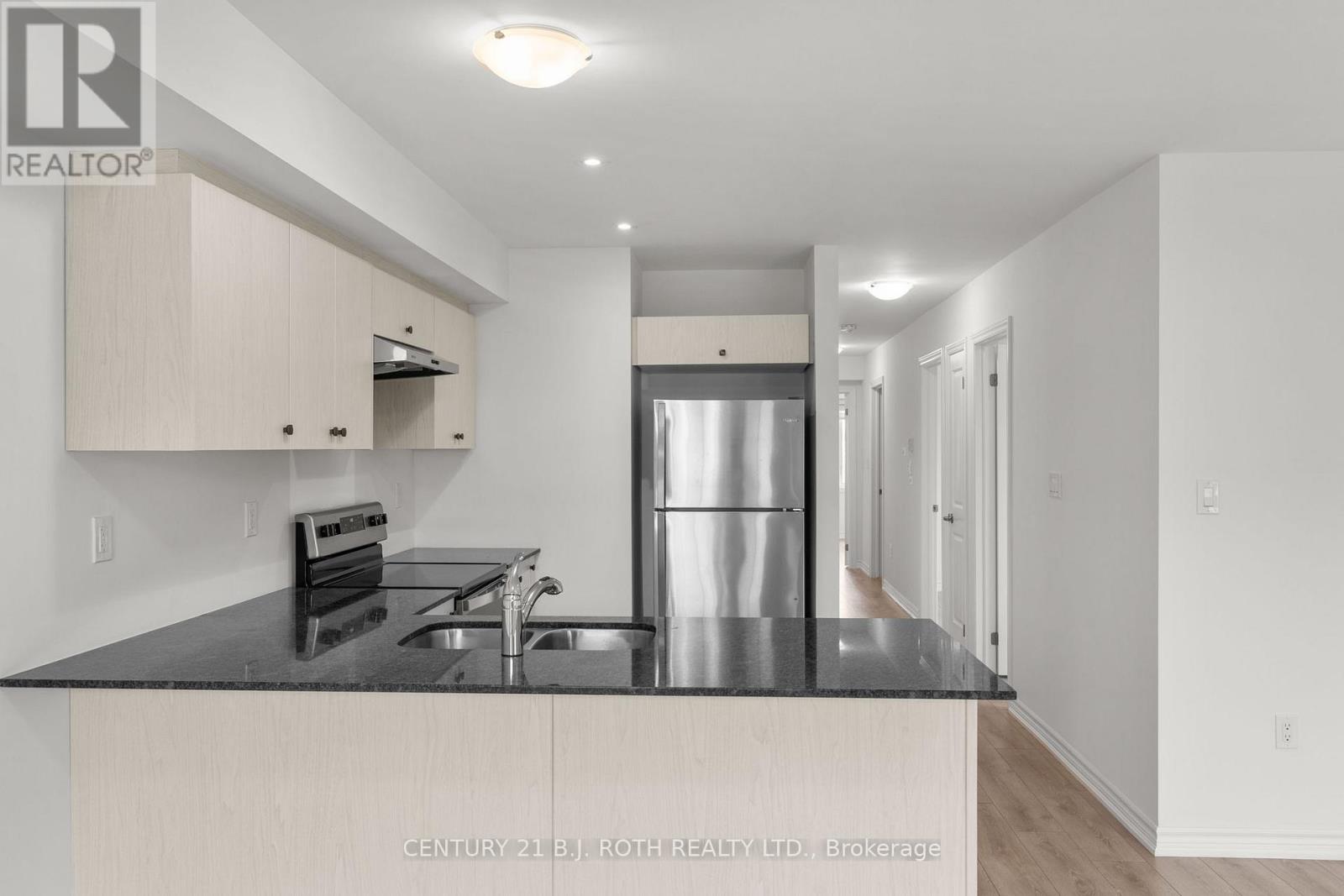Welcome to 23 Hay Lane, Unit 4, located in Barrie's highly sought-after South End. This top-floor stacked townhouse offers modern living with thoughtful upgrades throughout. Step inside to a bright, beautifully finished space featuring wide-plank laminate flooring, pot lights, and custom window coverings that create a seamless and inviting flow. This spacious unit offers 3 bedrooms and 2 full bathrooms, making it ideal for families, professionals, or anyone seeking extra space. The chef-inspired kitchen showcases quartz countertops, soft-close cabinetry, generous storage, and an eat-in peninsula perfect for casual meals or entertaining. Ensuite laundry and ample storage, including a walk-in closet in the primary bedroom, add everyday convenience. Enjoy outdoor living on your private balcony, ideal for BBQs, along with a grassy area near the front entrance. The home also features direct garage access and one driveway parking, combining style with practicality. Conveniently located close to shopping, schools, transit, and everyday amenities, this modern townhouse offers comfort, functionality, and an exceptional lifestyle opportunity in one of Barrie's most desirable neighbourhoods. (id:4555)
