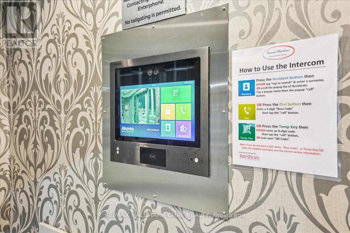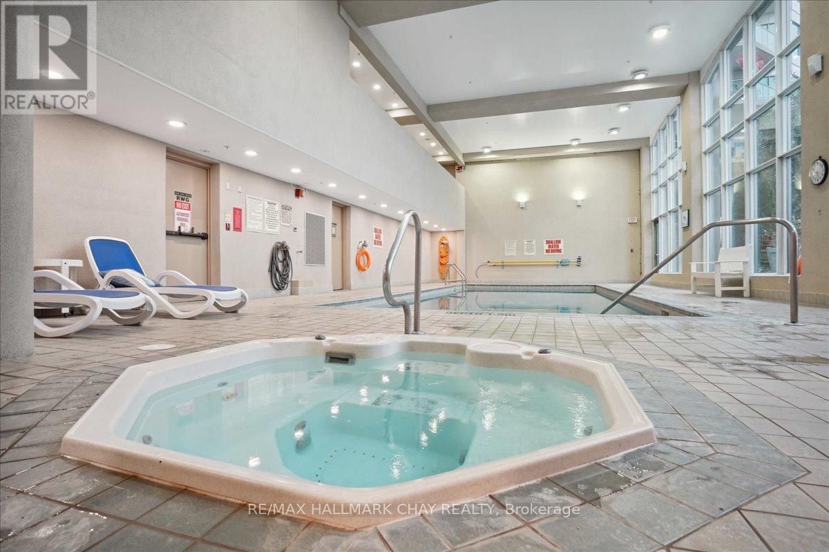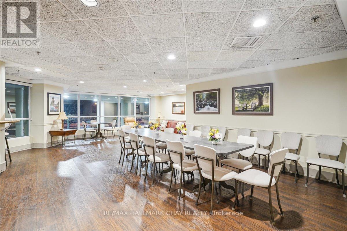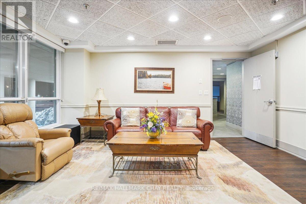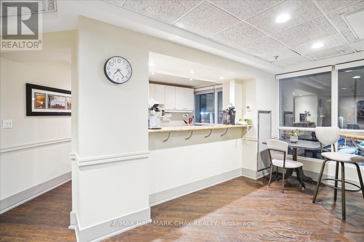 Wake up every day to breathtaking views of Kempenfelt Bay in this beautifully bright and spacious 2-bedroom, 2-bath suite at the highly sought-after Grand Harbour. Offering approximately 1,340 sq ft of thoughtfully designed living space, this home delivers comfort, style, and an unbeatable waterfront setting.The expansive living room features a cozy gas fireplace, walls of windows, and a walk-out to a balcony where you can soak in panoramic views of the bay, and city skyline. A separate dining room makes entertaining effortless and flows seamlessly into the kitchen, complete with raised granite counters, full-height white cabinetry, stainless steel appliances, under-mount double sink, modern backsplash, pot lighting, and a breakfast bar overlooking the dining area.The primary bedroom is a true retreat with space for a king-size bed, large windows, a walk-in closet, and a private 4-piece ensuite with a separate glass shower. The second bedroom is ideal for guests, a home office, or den and is conveniently located across from the main 4-piece bath.Hardwood floors, tile in the kitchen and baths, crown molding, 9-foot ceilings, roller blinds, and a neutral colour palette add to the home's polished feel. In-suite laundry with stacked washer and dryer, recently updated toilets in both bathrooms, one indoor parking space, and a locker complete the package.Grand Harbour is a well-managed, amenity-rich building offering an indoor pool, gym, sauna, hot tub, party room, games room, guest suites, and an active social community. Walk to the GO Station, stroll to the beach, and enjoy waterfront living at its finest. Rare opportunity to become a part of such a wonderful building. (id:4555)