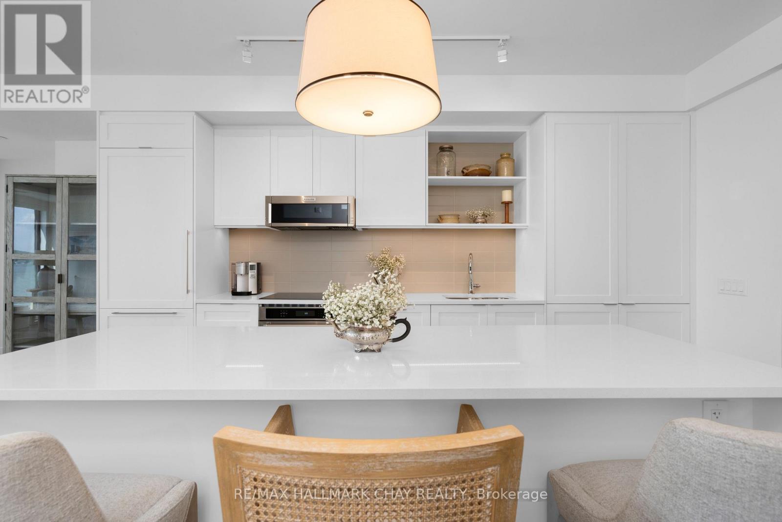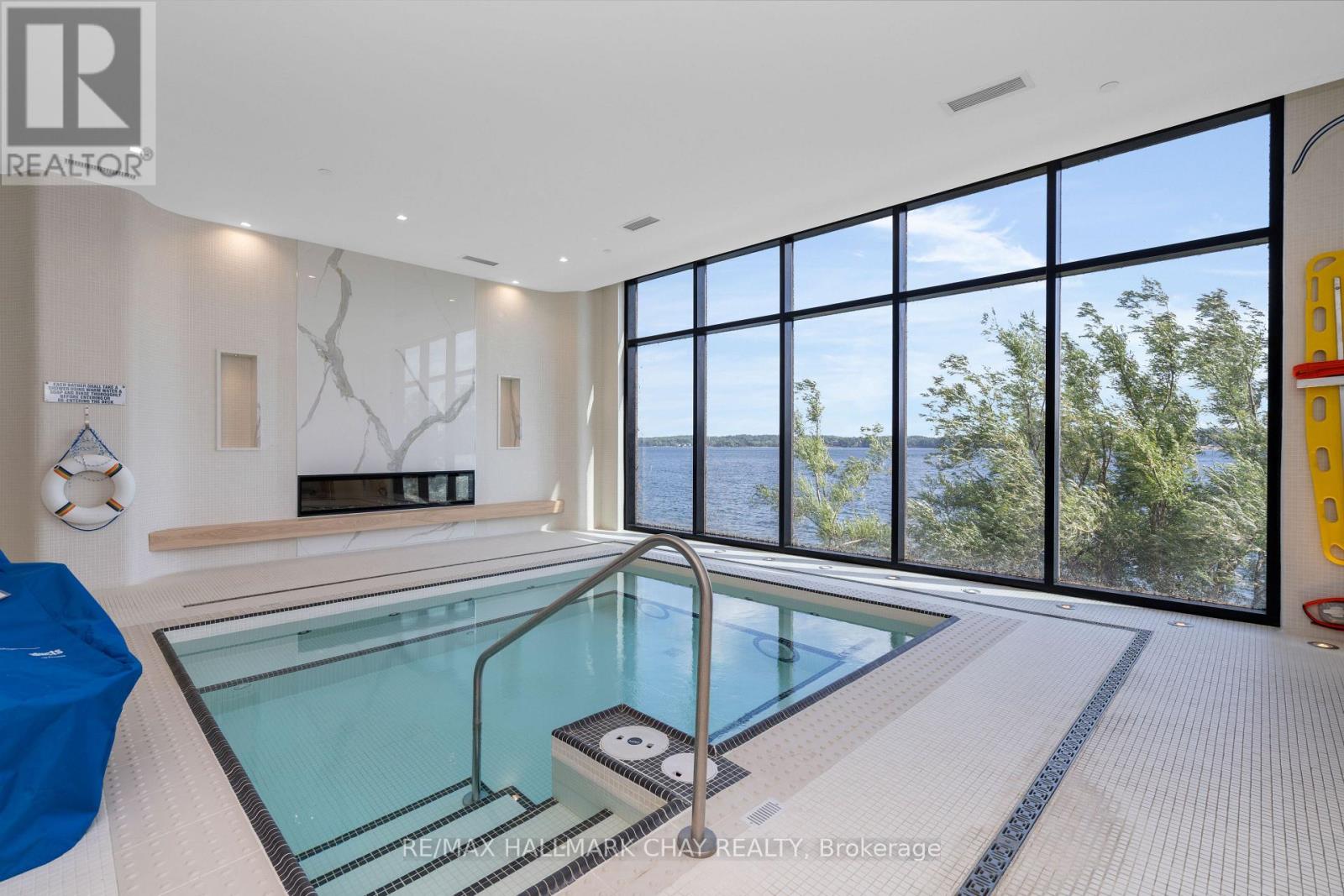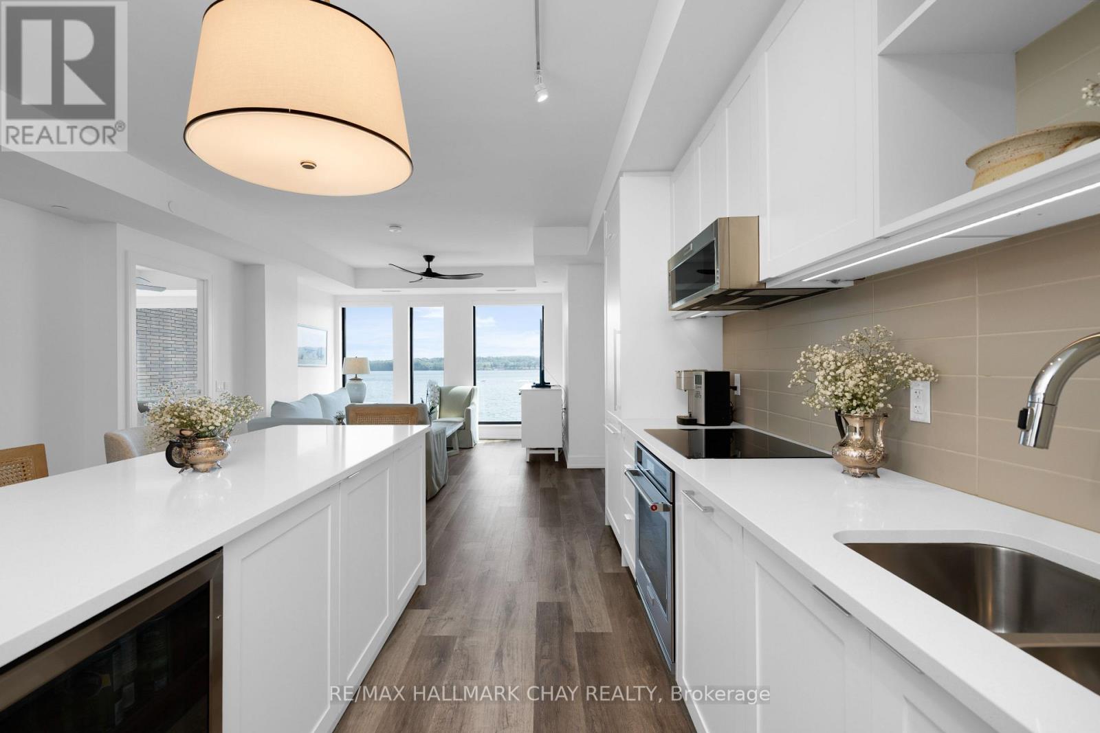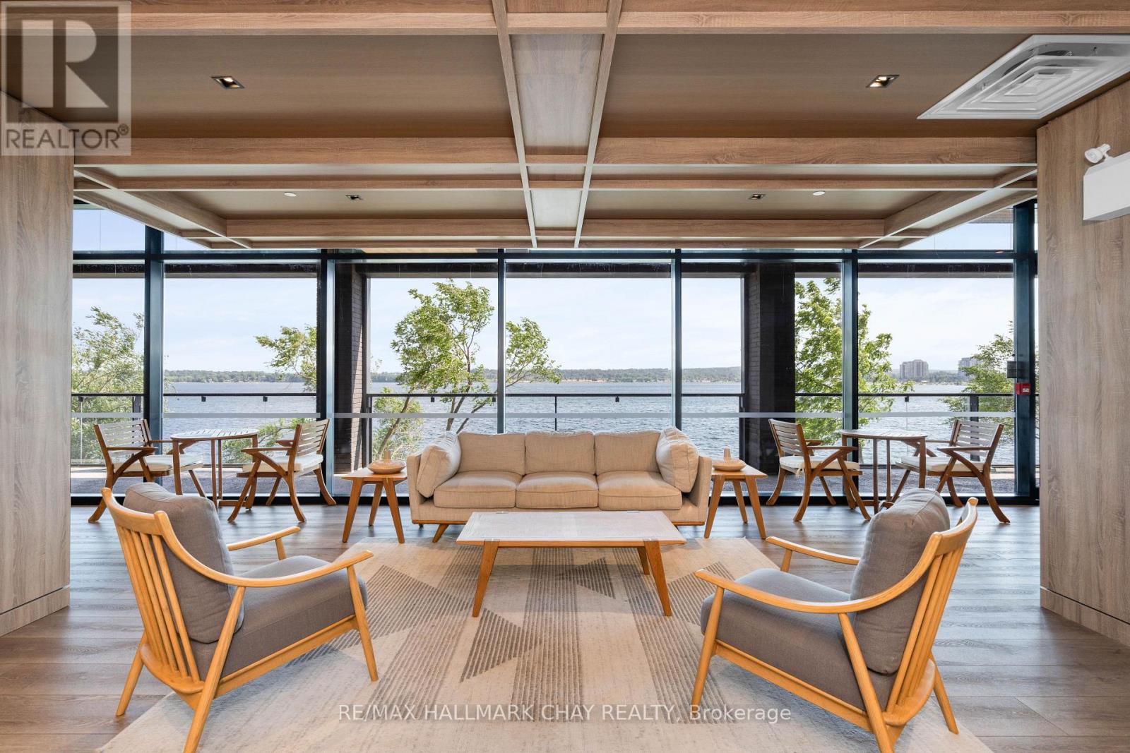 The PERFECT CONDO does exist! We get it, if you're leaving your home and downsizing to a condo you want EVERYTHING. The view, the size, the finishes, and the convenience that comes with condo lifestyle. This beautiful 'Sapphire' model suite has it all! THE VIEW - Located directly on the front of the building with spectacular unobstructed Southern views over picturesque Kempenfelt Bay. Take in sunrises and sunsets on your South facing balcony with Lumon glass enclosure system which allows you to enjoy the outdoor space 3 seasons of the year. THE SIZE - 1,510 sq.ft. of incredibly well curated living space, open concept floor plan flooded with natural light through floor to ceiling windows and 9' ceilings. The FLOOR PLAN has 2 large bedrooms each with their own ensuite and stunning lake views, an oversized den which makes for a great 3rd bedroom, office, or dining room, as well as a convenient powder room and large laundry with plenty of storage. THE FINISHES - crisp, neutral colour palette is highlighted by beautiful laminate floors and a stunning kitchen with white shaker cabinetry, quartz counters, and stainless steel Kitchen-aid appliances with beverage centre and integrated Blomberg fridge. Upgraded light fixtures make the space feel light and airy. THE CONVENIENCE - the cherry on top here is the two side-by-side premium parking spaces (WITH EV CHARGER) located on the same level as your suite, which means no elevators when bringing in groceries or moving items in and out - this truly is a game changer when it comes to convenience. AMENITIES - Lakhouse and its location are second to none. Fitness room, stunning party room, spa, steam room, sauna, roof top bbq / patio, and private dock on Lake Simcoe to name a few. The location allows you to walk to all of downtown Barrie's incredible restaurants, pubs, and boutique local shops all while being located directly on the shores of Lake Simcoe with access to beaches, docks, walking trails, and parks. Welcome Home (id:4555)