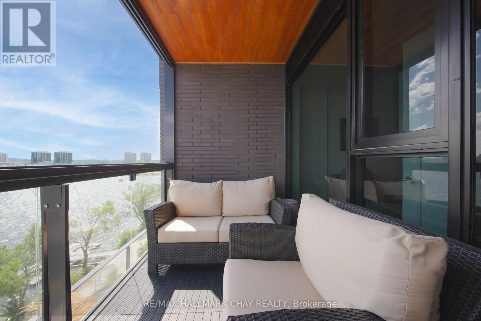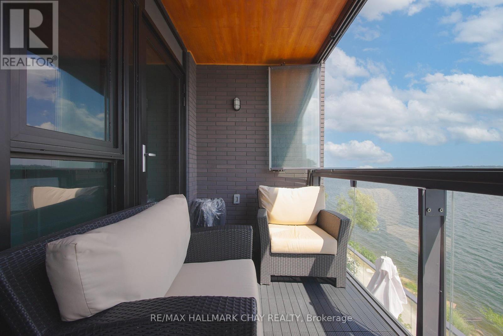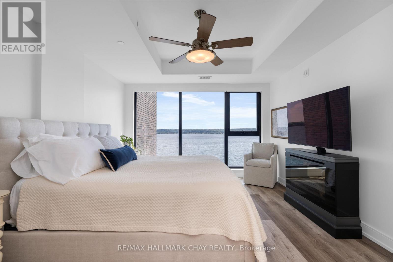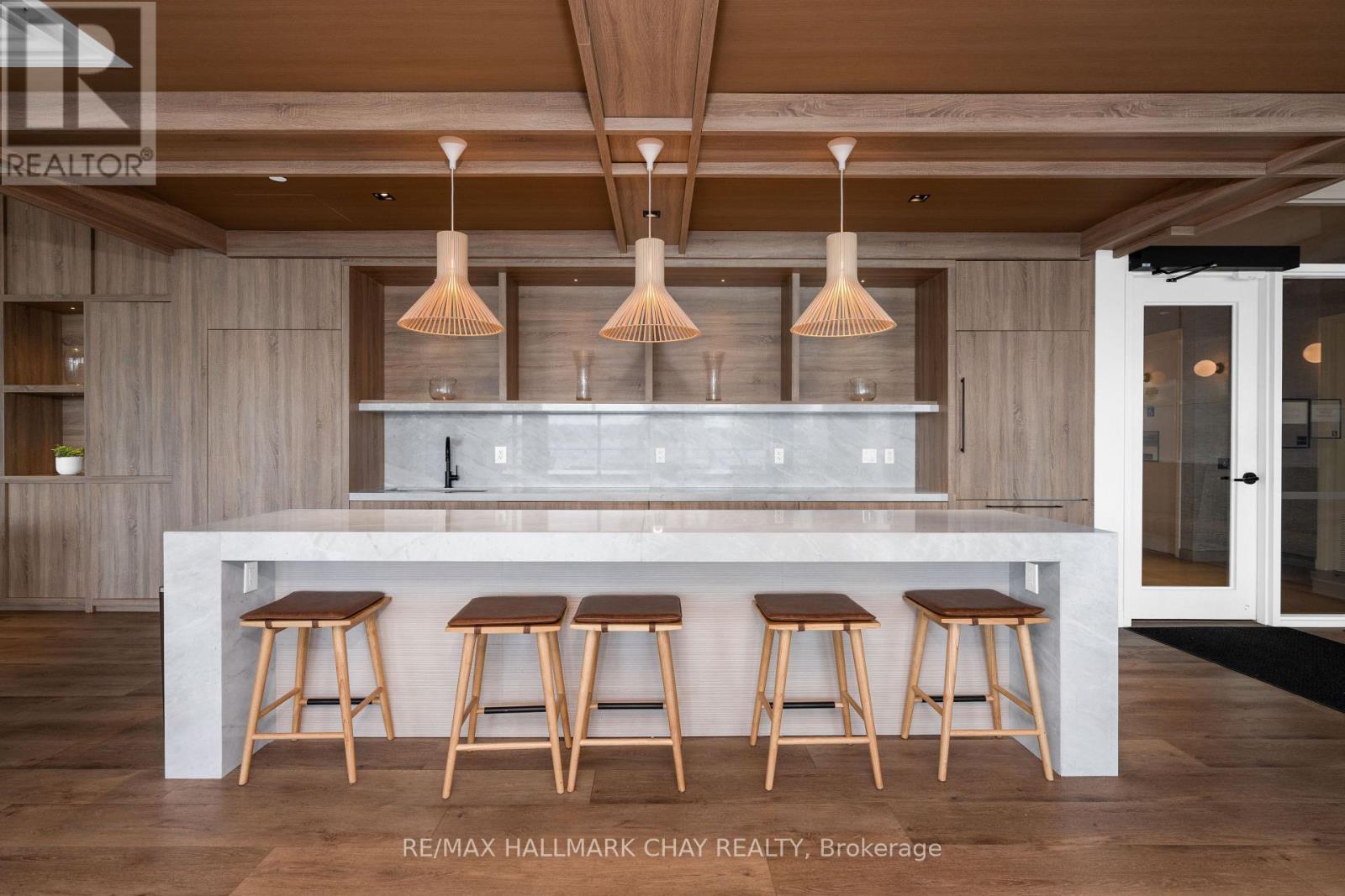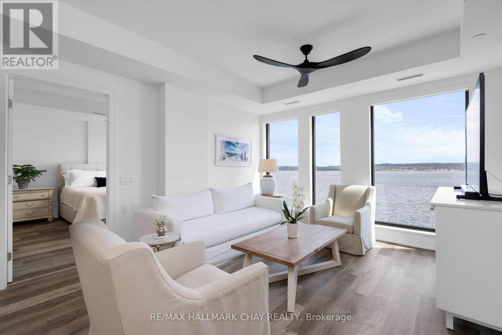 The PERFECT CONDO does exist! We get it, if you're leaving your home and downsizing to a condo you want EVERYTHING. The view, the size, the finishes, and the convenience that comes with condo lifestyle. This beautiful 'Sapphire' model suite has it all! THE VIEW - Located directly on the front of the building with spectacular unobstructed Southern views over picturesque Kempenfelt Bay. Take in sunrises and sunsets on your South facing balcony with Lumon glass enclosure system which allows you to enjoy the outdoor space 3 seasons of the year. THE SIZE - 1,510 sq.ft. of incredibly well curated living space, open concept floor plan flooded with natural light through floor to ceiling windows and 9' ceilings. The FLOOR PLAN has 2 large bedrooms each with their own ensuite and stunning lake views, an oversized den which makes for a great 3rd bedroom, office, or dining room, as well as a convenient powder room and large laundry with plenty of storage. THE FINISHES - crisp, neutral colour palette is highlighted by beautiful laminate floors and a stunning kitchen with white shaker cabinetry, quartz counters, and stainless steel Kitchen-aid appliances with beverage centre and integrated Blomberg fridge. Upgraded light fixtures make the space feel light and airy. THE CONVENIENCE - the cherry on top here is the two side-by-side premium parking spaces (WITH EV CHARGER) located on the same level as your suite, which means no elevators when bringing in groceries or moving items in and out - this truly is a game changer when it comes to convenience. AMENITIES - Lakhouse and its location are second to none. Fitness room, stunning party room, spa, steam room, sauna, roof top bbq / patio, and private dock on Lake Simcoe to name a few. The location allows you to walk to all of downtown Barrie's incredible restaurants, pubs, and boutique local shops all while being located directly on the shores of Lake Simcoe with access to beaches, docks, walking trails, and parks. Welcome Home (id:4555)