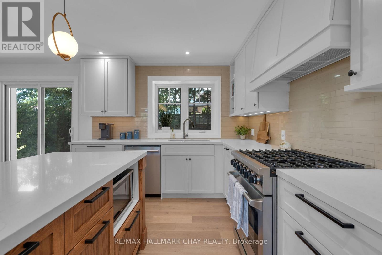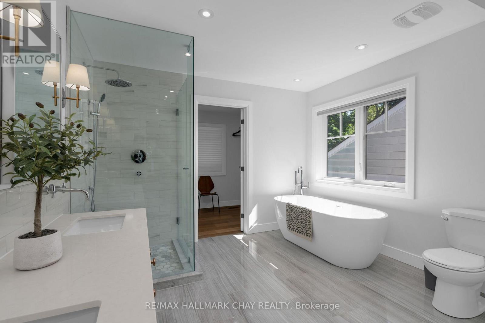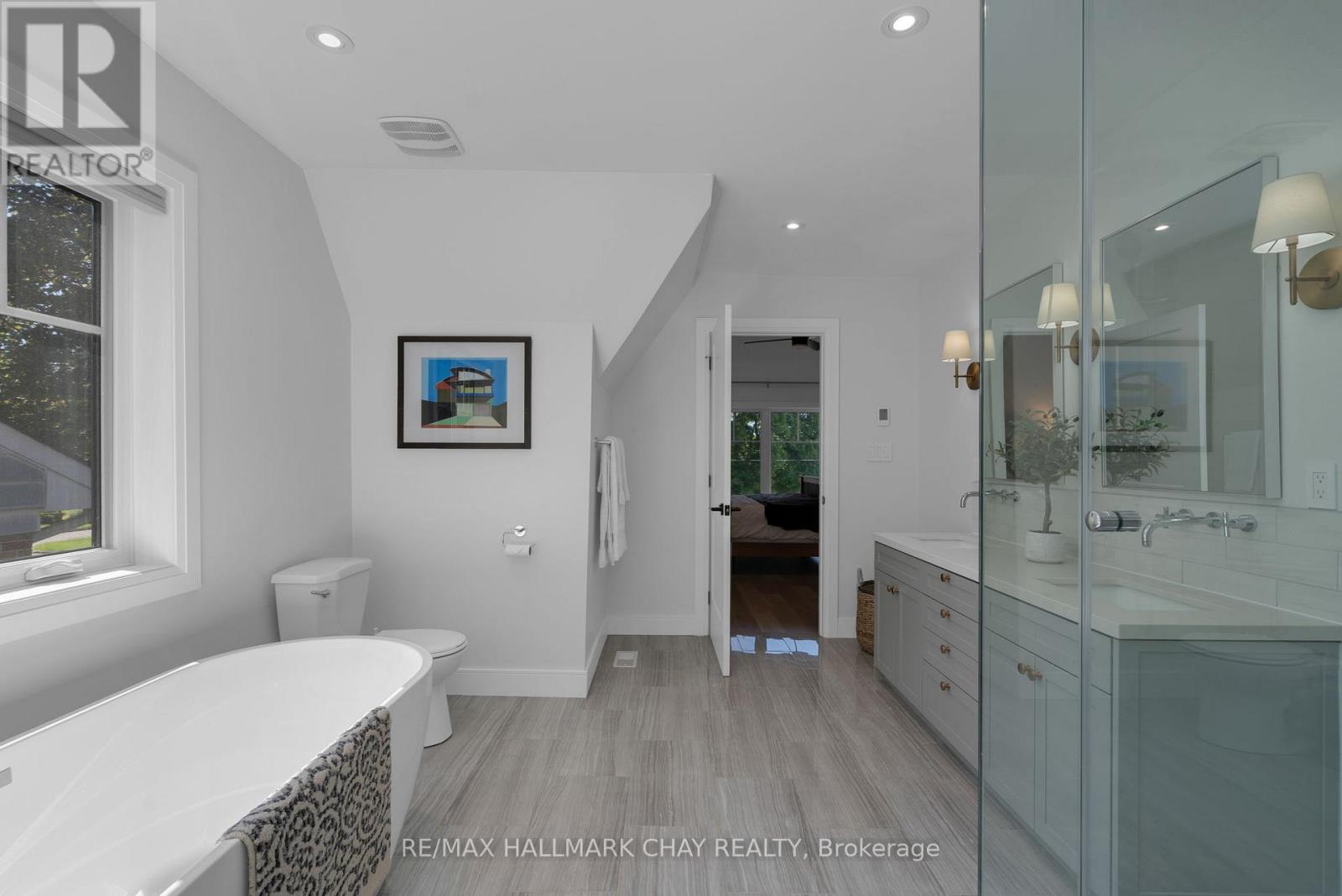 Tucked away in the prestigious Shanty Bay enclave of downtown Barrie, this exceptional custom-built residence offers a rare blend of luxury, privacy, and waterfront charm. Overlooking the shimmering waters of Kempenfelt Bay, this five-bedroom, five-bathroom home is designed to impress from the moment you arrive. A dramatic, oversized foyer welcomes you with refined finishes and heated floors, setting the tone for the comfort and craftsmanship found throughout the home.The heart of the house is a beautifully appointed chef's kitchen, complete with built-in appliances and thoughtfully designed for both everyday living and memorable gatherings. Not to mention the incredible oversized livingroom with gas fireplace and views of the water. For the wine enthusiast, a custom wine cellar provides the perfect space to curate and showcase your collection. Upstairs, three generously sized bedrooms each feature their own spa-like ensuite with heated floors and walk-in closets, creating private retreats for family and guests alike. Step outside to a serene, fully fenced backyard where mature trees create a peaceful, secluded setting-ideal for relaxing, entertaining, or simply enjoying the natural surroundings. Beyond the property, an enviable lifestyle awaits: stroll to Johnson Beach, explore nearby walking trails, or take advantage of the vibrant shops and restaurants just moments away. With quick access to Royal Victoria Hospital, Highway 400, and the waterfront, this historic neighbourhood seamlessly combines timeless character with modern convenience.This is more than a home-it's an invitation to experience refined living in one of Barrie's most sought-after locations. Book your private showing and discover firsthand what makes this property truly unforgettable. (id:4555)