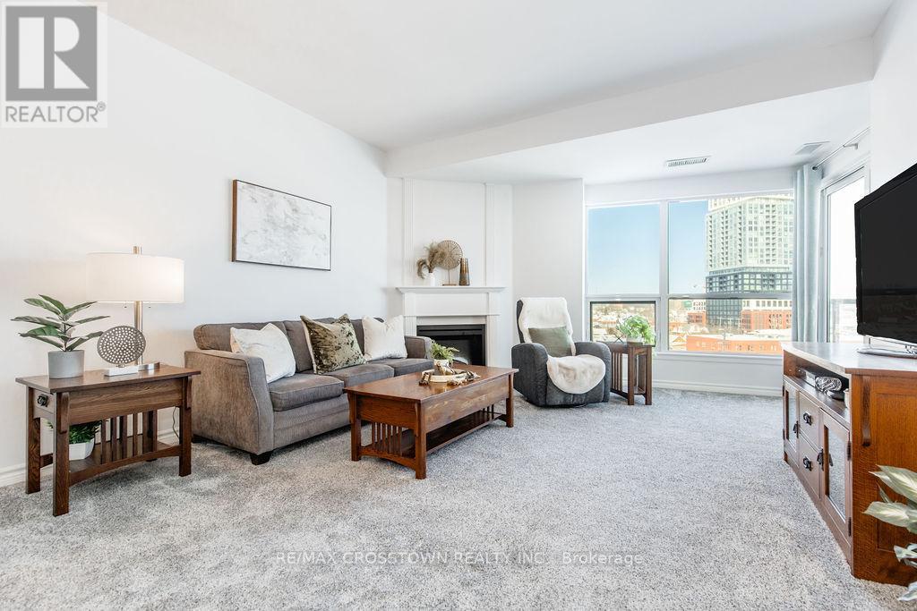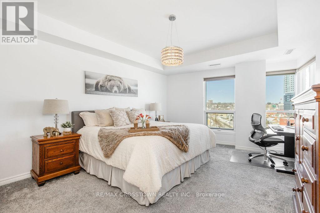 Welcome to one of Barrie's most sought-after waterfront residences, perfectly positioned across from Kempenfelt Bay and steps to the marina, Centennial Beach, scenic waterfront trails, parks, and year-round recreation. Enjoy the best of downtown living with shopping, dining, patios, and entertainment just a short stroll away, while commuters will appreciate easy access to Highway 400, the Allandale Waterfront GO Station, and public transit. This 2-bedroom, 2-bathroom suite with a large den offers a bright and functional layout designed for comfort and flexibility. Natural light fills the open-concept living, and kitchen space, flowing seamlessly to a private balcony where bay views create the perfect backdrop for morning coffee or evening relaxation. The spacious den provides an ideal home office, reading nook, or additional living space. The primary bedroom features generous closet space and a private ensuite, while the second bedroom and full bathroom offer comfort for guests or family. In-suite laundry adds everyday convenience. Freshly updated and move in ready, 2024 upgrades include new carpet, new paint throughout the unit, new light fixtures, new faucets, new doorknobs and hinges throughout, new cabinet knobs in kitchen and in bathrooms, new towel bars, and new kitchen backsplash. Residents enjoy a full suite of premium amenities, including an indoor pool, sauna, hot tub, fitness centre, party/games room, guest suites, visitor parking, and more. Underground parking and a storage locker complete this exceptional offering. A rare opportunity to enjoy waterfront scenery, downtown energy, and resort-style living in one unforgettable setting. (id:4555)