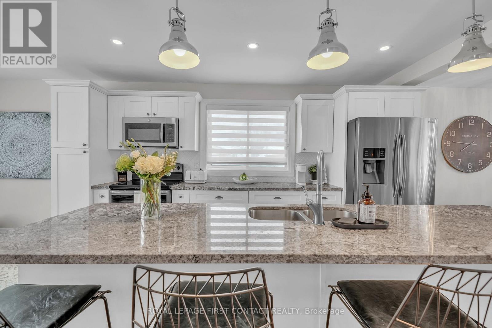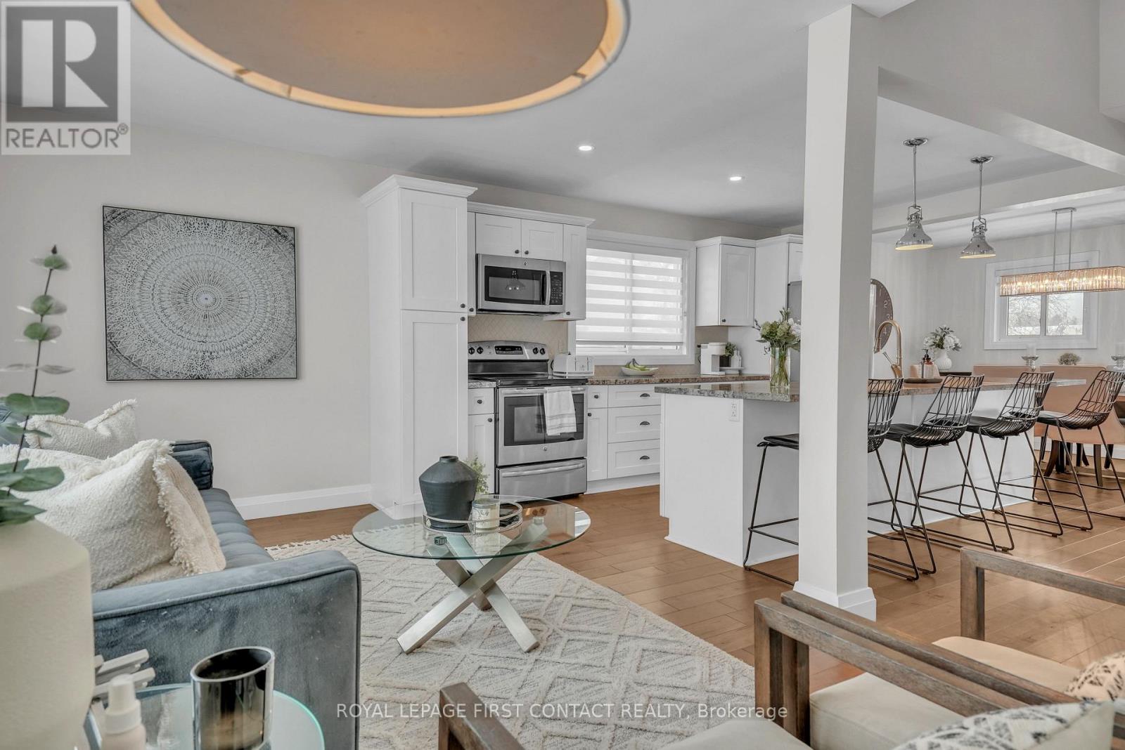 Welcome to 4 Grand Place, located in the highly sought after Allandale Heights neighbourhood in southeast Barrie, this beautifully renovated four level side split sits in a family friendly community known for mature tree lined streets, parks, excellent schools, and easy access to trails and recreational spaces. Fully updated from top to bottom, the home features hardwood flooring, zebra blinds, custom wrought iron railings, recessed lighting, and large windows that fill the interior with natural light. The main floor family room is highlighted by a stunning stone gas fireplace, creating a warm and inviting space for gatherings, as well as terrace doors leading to the backyard. The custom kitchen offers hardwood floors, a large island with casual seating, soft close cabinetry with pull out storage and pots and pans drawers, pendant lighting, and recessed lighting, flowing into the dining area with walk out access to the rear deck overlooking a private, fully fenced yard with mature trees, perfect for entertaining or relaxing.The upper level includes a spacious landing ideal for a home office, den, or cozy reading nook. The fully finished basement provides a large recreation room, and a stylish three piece bathroom, with the potential to create a fourth bedroom thanks to a bright above grade window and existing closet space. Additional highlights include abundant storage, functional layout, superior maintenance, inside entry to garage, existing wiring to install hot tub, quality materials and craftsmanship, and attention to detail throughout. Ideally located on a serene dead-end street with a court near shopping, public transit, recreation centres, trails, places of worship, Barrie's waterfront and beaches, and schools (cat walk through to Assikinack public school), this home offers comfort, style, and versatility in one of the city's most desirable and quiet neighbourhoods, combining modern living with a private outdoor retreat. Come and take a look today! (id:4555)