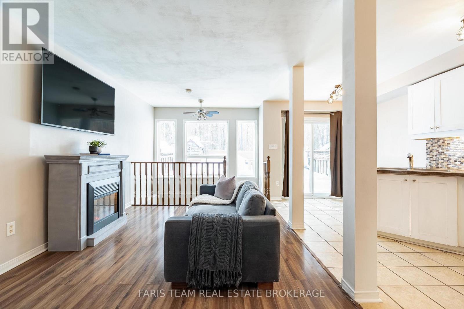 Top 5 Reasons You Will Love This Home: 1) Discover this freehold semi-detached townhome, where you can enjoy privacy with a generous fully fenced backyard featuring a deck, natural gas barbeque hook-up, and serene views of Ardagh Bluff Park with nothing but trees behind you, alongside a convenient side-gate access to the yard 2) Discover a well-planned interior featuring a main level powder room, convenient inside entry from the garage, three spacious bedrooms, and a fully finished recreation room 3) Added peace of mind with numerous updates, including a new roof, front door, back door, and front porch (2020), a back deck (2022), and an owned hot water tank (2025), ensuring comfort, efficiency, and long-term confidence in your home 4) Minutes to Highway 400, with a convenience store, restaurant, and gas station nearby, plus grocery stores, schools, and more just a short drive away 5) Descend to the warm and inviting finished basement, complete with a cozy gas fireplace, perfect for movie nights or relaxed gatherings, along with a convenient storage closet to keep everything neatly organized. 1,450 above grade sq.ft. plus a finished basement. (id:4555)