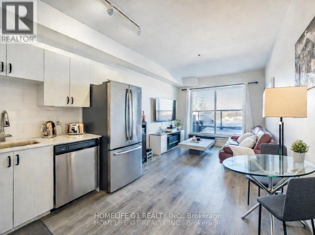 Step into beautiful contemporary living with this stylish 1+1 bedroom. Den is perfect for a small office or a small second room. Designed for comfort and functionality, the unit features in-suite laundry, a private large balcony, and a parking spot. Residents enjoy access to premium building amenities, including a fully equipped fitness center, party room, outdoor BBQ area, and electric vehicle charging stations. Freshly painted with neutral colors and elegant kitchen decor and sophisticated luxurious vinyl plank flooring. Very clean and spacious modern unit. Perfectly located just 4 minutes from Highway 400, this Condo offers seamless access for commuters while being close to shopping, dining, and everyday essentials. Whether you're a first-time buyer, downsizer, or investor, this is an opportunity not to be missed. (id:4555)