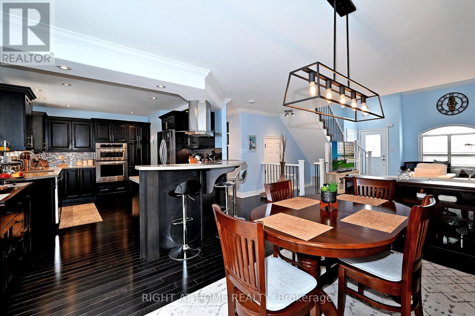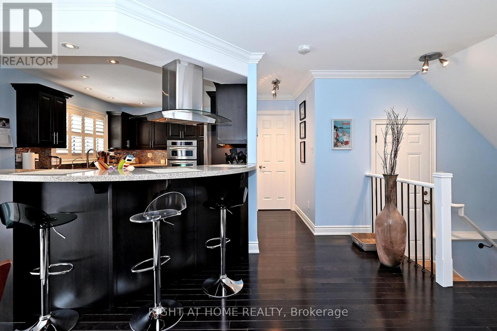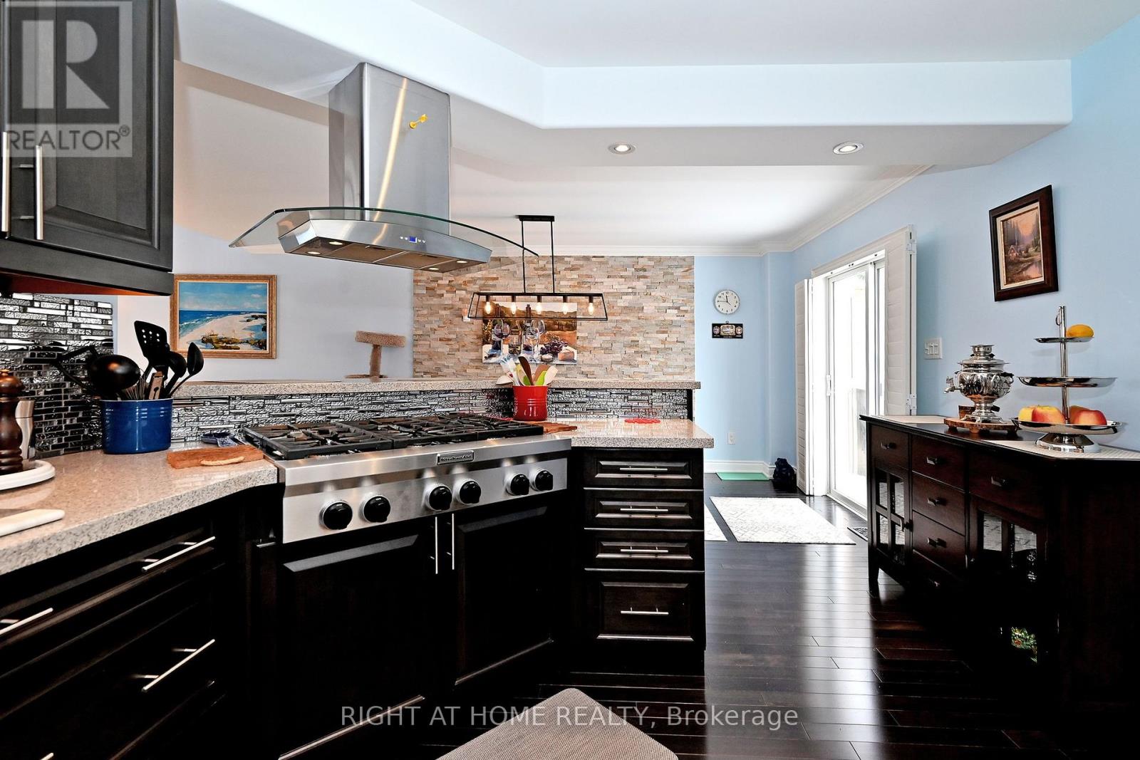 Gorgeous fully finished,freshly renovated townhouse with all high end finishes, stone countertops, 6 burner gas range, custom master closet, luxurious steam shower , California Shutters, hardwood . Over $70,000 spent in renovations/upgrades! 2000sqft of living space ,open concept ,Spacious beautiful Kitchen W/ B/I appliances, W/Out to Deck. Meticulously maintained master br & office/den converted to 2nd br . The Fully Finished Basement Brand New Laminate Floors,Full house fresh repainted A New 3-Piece Glass, Walk-In Shower & sauna. Live minutes from amenities, highway, shopping, GO station, lakeshore while enjoying the privacy and comfort of small community living. Possibly one of the nicest units in the complex! (id:4555)