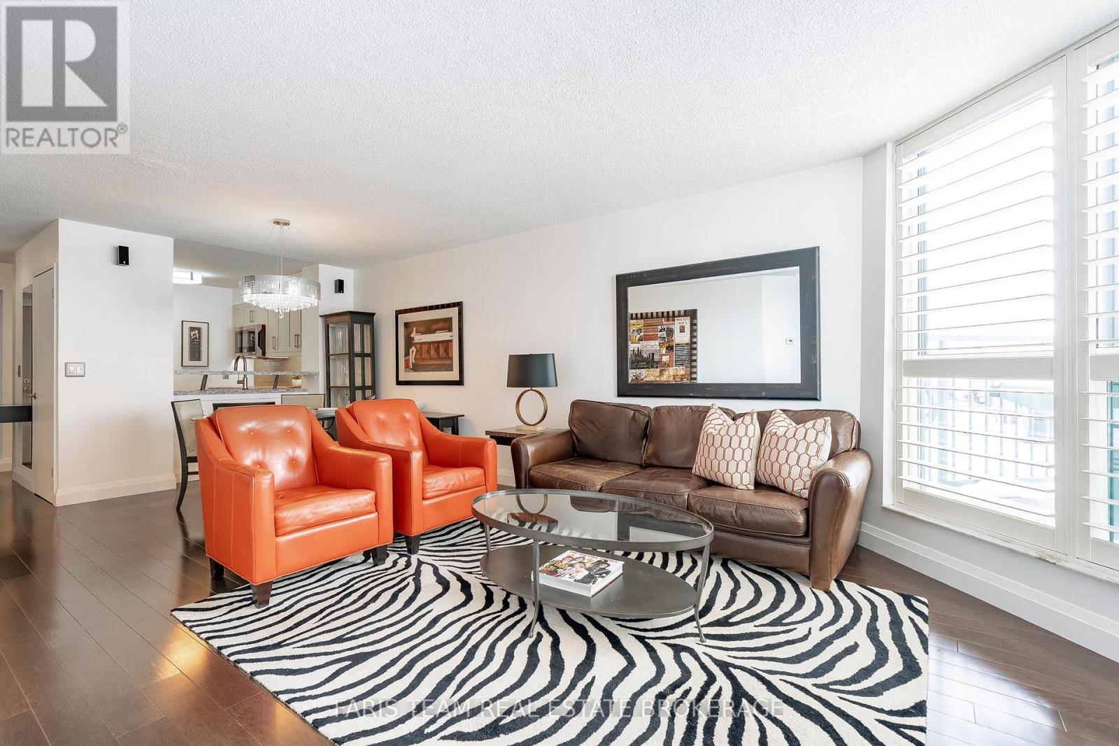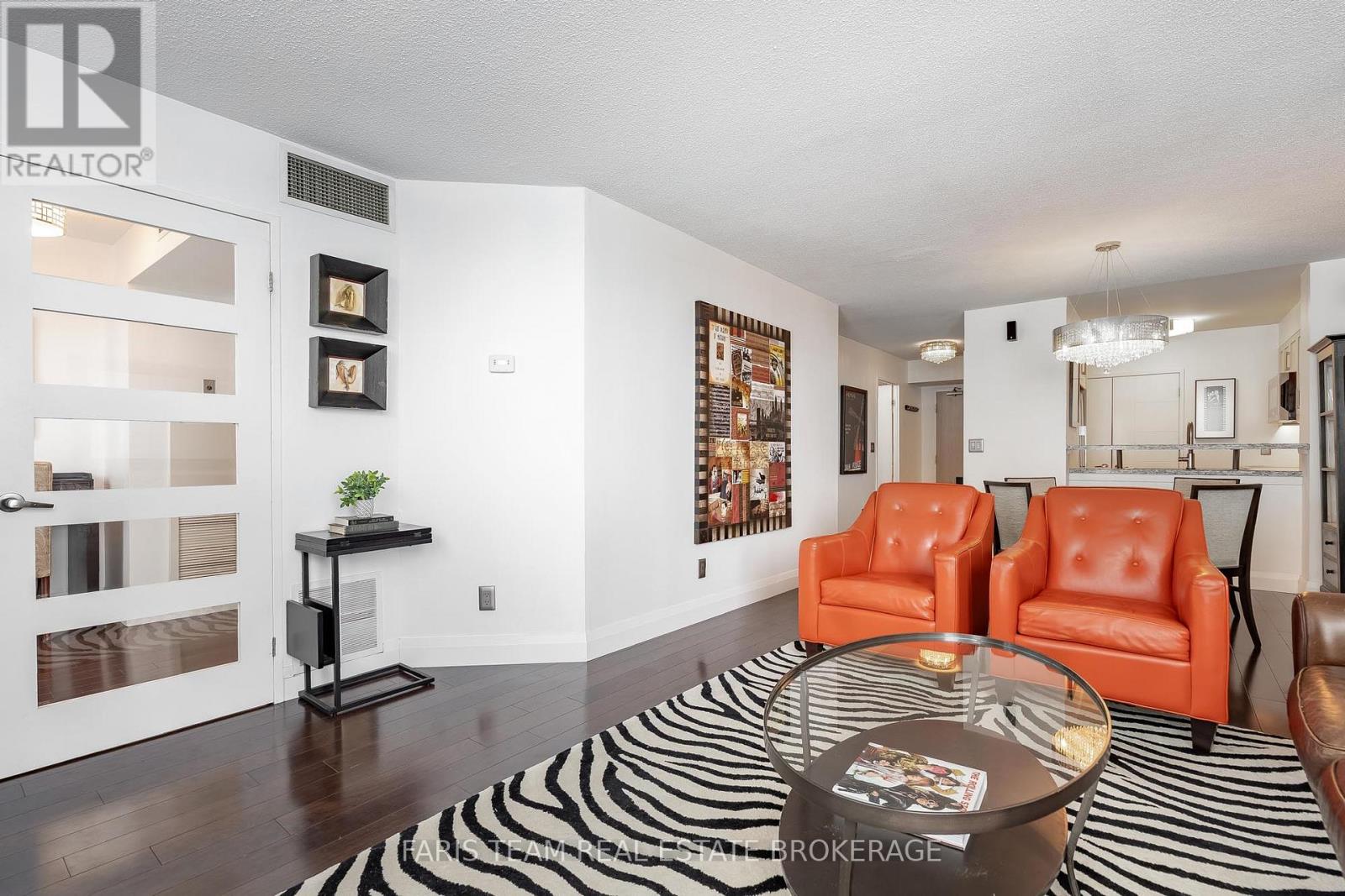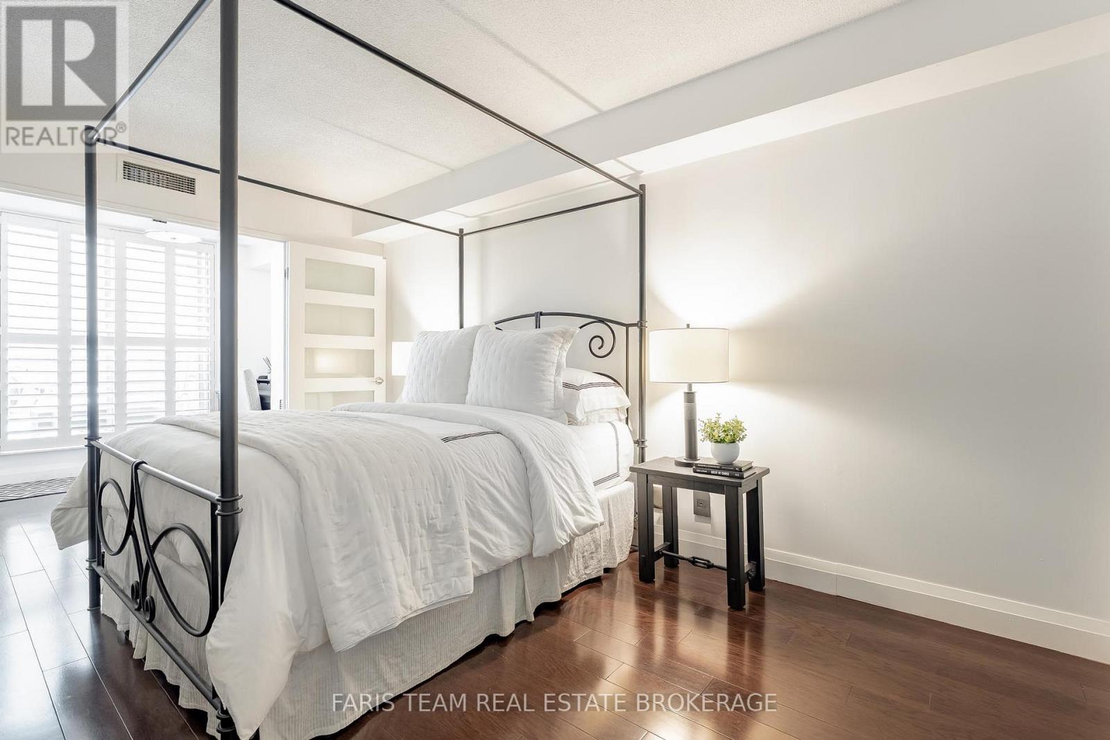 Top 5 Reasons You Will Love This Home: 1) One of the most coveted suites in the building, this residence is positioned on the preferred side of the East Tower and enjoys a permanently protected view, offering rare peace of mind with no future development planned directly in front of the unit 2) Extensively customized beyond builder finishes, the suite showcases engineered hardwood flooring throughout, tall baseboards, and bespoke interior doors, creating a polished, elevated atmosphere from the moment you step inside 3) The kitchen is designed to impress both home chefs and entertainers, featuring quartz countertops, premium custom cabinetry, a brand-new full-size refrigerator, and a professional-grade Fisher & Paykel stove valued at over $10,000, a standout upgrade rarely found in condo living 4) Everyday comfort is elevated with thoughtful upgrades, including a spa-inspired bathroom with a modern TOTO toilet, California shutters on every window, and a built-in sound system throughout, while the spacious bedroom and versatile den offer flexibility for a home office, guest space, or additional living area 5) Outdoor living is equally well considered, with a private balcony complete with a barbeque and patio furniture, ideal for relaxing or entertaining while taking in the view, along with one owned parking space and the option to rent a second, condo fees that include heat, hydro, and water, and access to premium amenities such as an indoor pool, hot tub, sauna, gym, and party room, all just steps from Barrie's waterfront, trails, shops, and restaurants. 843 sq.ft. (id:4555)