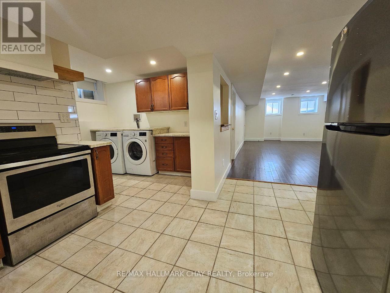 Legal 1-bedroom basement apartment available for annual lease in the desirable Holly neighbourhood in Barrie's south end. This well-maintained unit features a separate entrance, private in-suite laundry, and a spacious kitchen with ample cabinetry and stainless steel stove and refrigerator, dishwasher, and exhaust fan hood. Washer and dryer are included for your exclusive use. Large windows provide plenty of natural light throughout the space. One driveway parking space is included. Tenant to pay one-third of utilities in addition to the monthly rent. Ideally located just minutes to Highway 400 and close to all amenities, shopping centres, parks, and everyday conveniences. Only a 15-minute drive to the Barrie waterfront, offering beautiful lake views, walking trails, beaches, and year-round recreational activities along Kempenfelt Bay. (id:4555)