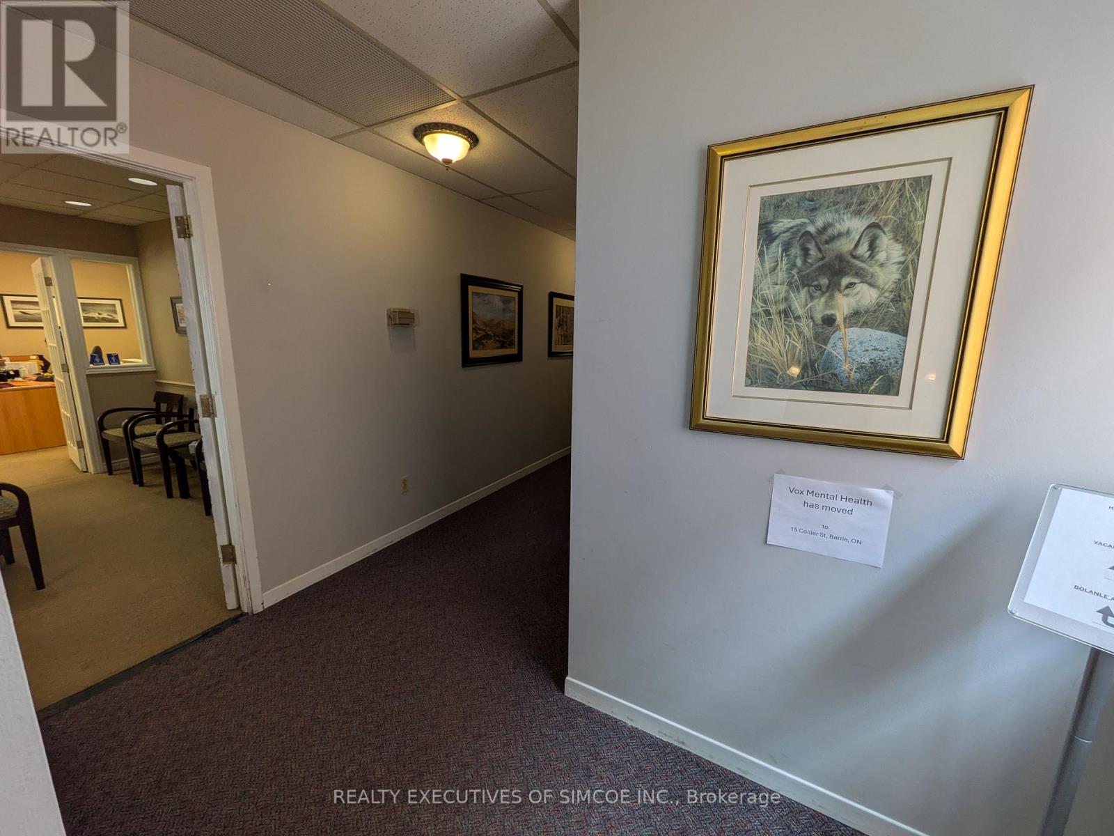 Prime Office space located in Central Core of Barrie, walk to the waterfront, shopping and restaurants. $653.92 per month + hst. Separate entrance office space with common area hallway, two washrooms, heating & AC included in MIT. Professional office space perfect for a Satellite office, Decentralized Workspace, save your employees a daily commute. Ideally legal, accounting, financial etc any small business. Enter Common door entrance at 28 Owen St to common hallway, to unit 203. Two separate offices and 1 large common room. Great for 1-2-3 person staff members or central meeting area. (366 sqft Rent $7.10 per sqft + MIT $14.34, $653.92 per month + hst.) City parking lots available, plus street parking. Street parking is free after 5:00 and on weekends. Parking garage available-lots of parking options. (id:4555)