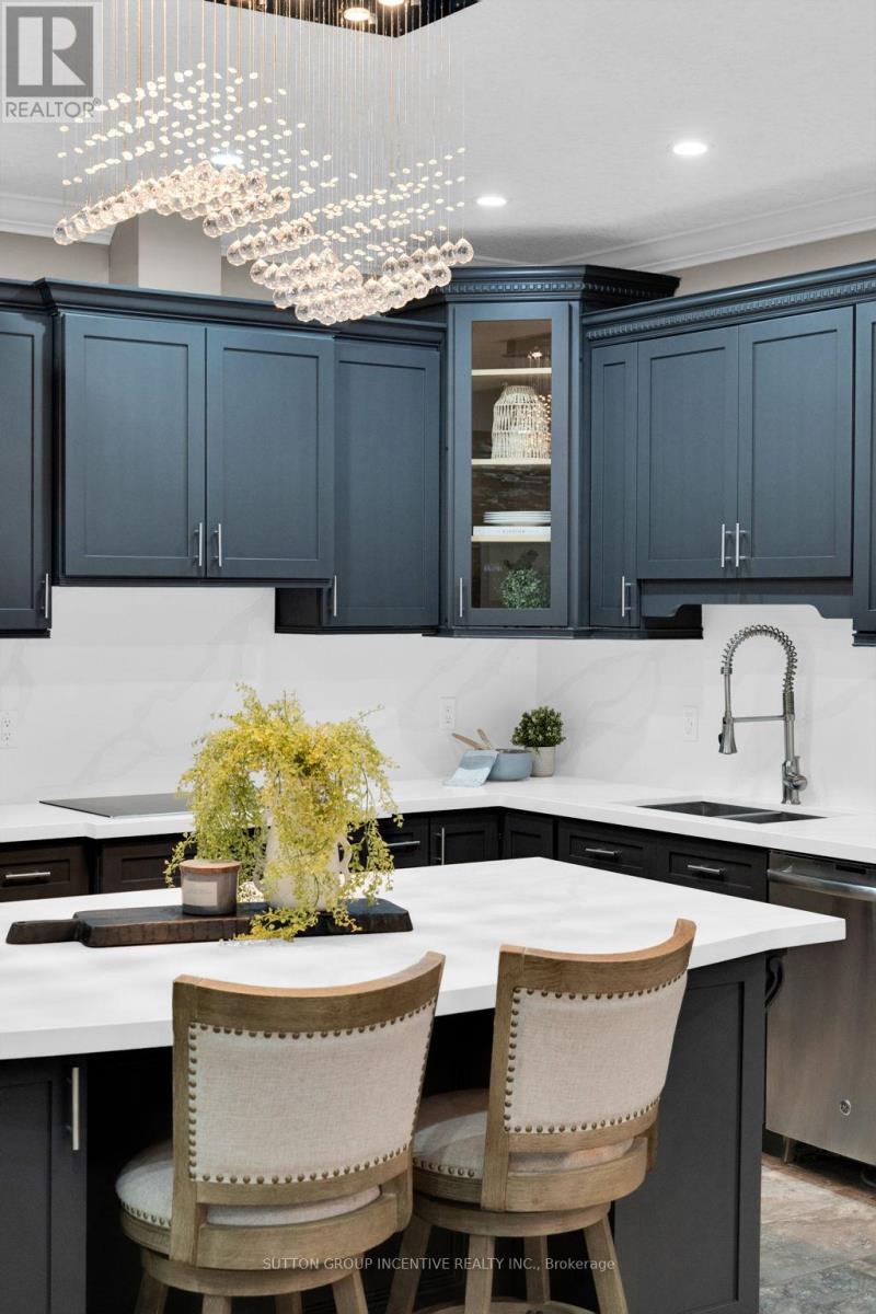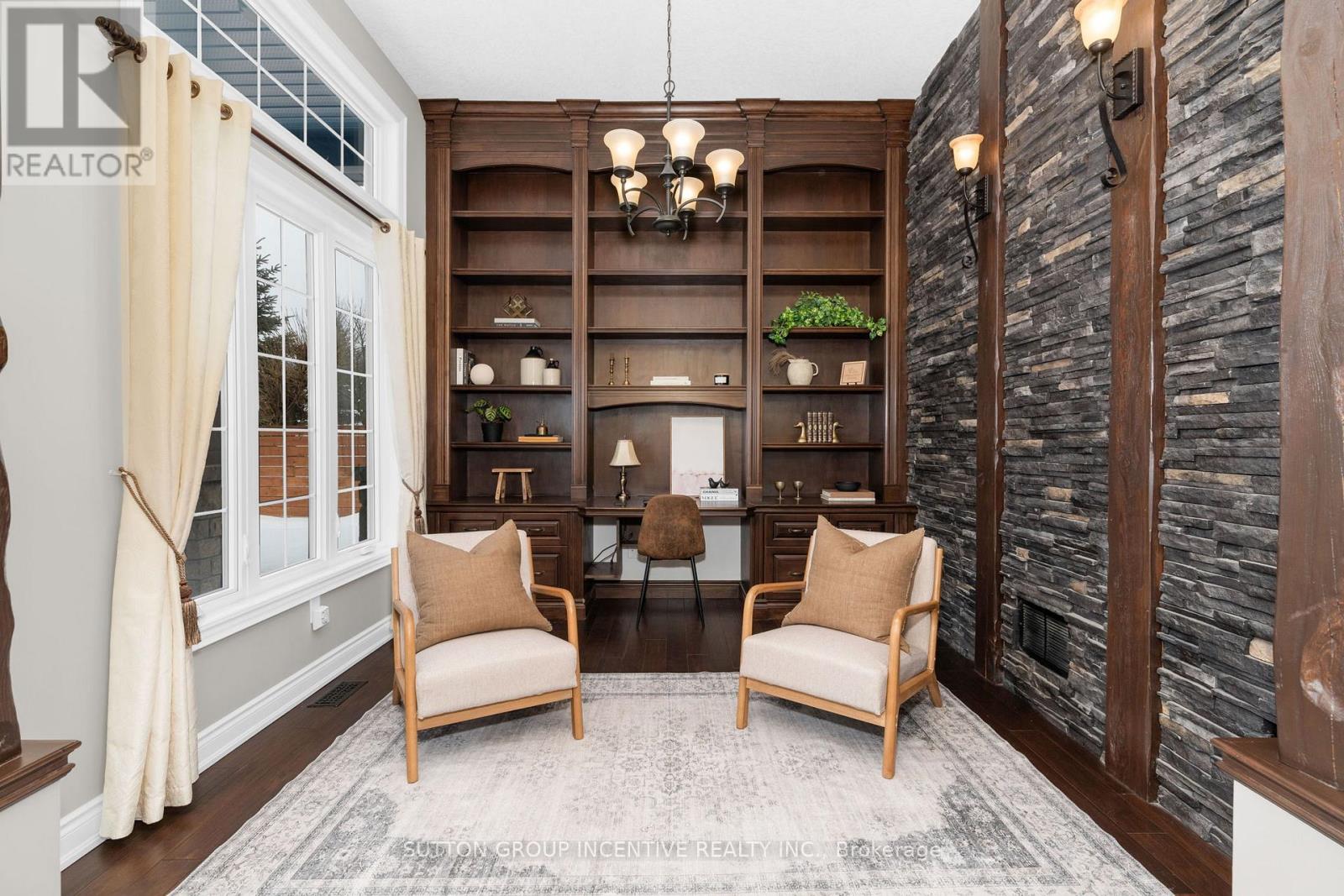 This stunning custom-built stone and stucco home offers exceptional curb appeal and style with over 100k in recent upgrades. Step inside to a grand office featuring custom cabinetry, stone accents, timber beams, and soaring ceilings - the perfect workspace to inspire productivity and creativity. An open-concept layout flows seamlessly from the kitchen through the living and dining areas, showcasing gorgeous new premium flooring (2024). The kitchen is a true showpiece with refreshed cabinetry equipped with pull down accessible shelving, quartz countertops which extend into the backsplash (2025), under-cabinet lighting, built in wall appliances, induction style stovetop and a striking coffered ceiling that adds a touch of sophistication. Step outside to the private backyard - complete with pergolas, a hot tub, fully fenced yard (2024), and a charming new cedar plank shed (2024). Inside, unwind in the oversized primary bedroom with a spacious walk-in closet and a luxurious spa-like ensuite. Two additional large bedrooms and a beautifully finished 4-piece bathroom offer plenty of space for family or guests.The lower level impresses with an expansive open-concept family room, a stylish bar, custom wine cellar, and new premium flooring throughout. A fourth bedroom, additional bathroom, and an infrared sauna complete this incredible space - ideal for entertaining or the perfect space for extended families looking for their own private area. The fully finished, heated garage with sleek epoxy flooring is the perfect spot to store your summer wheels in style! (id:4555)