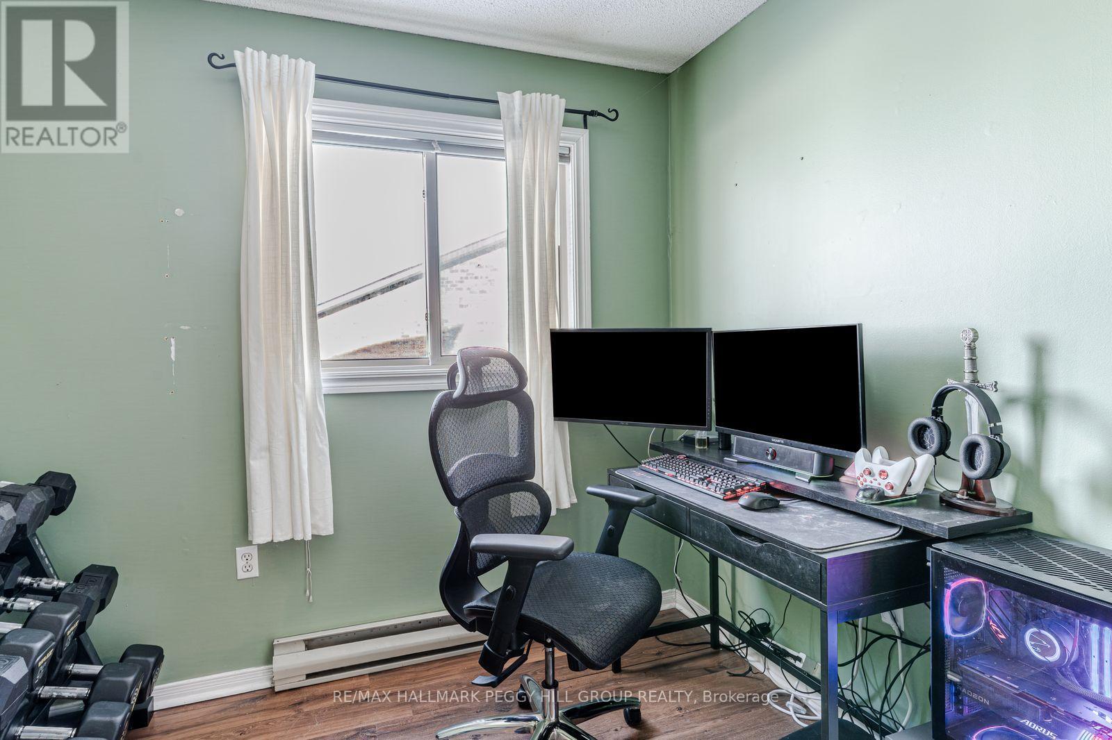 2 STOREY CONDO IN SOUGHT AFTER ARDAGH WITH A GAS FIREPLACE, BALCONY, & AMENITIES YOU'LL ACTUALLY USE! Located in Barrie's Ardagh neighbourhood, this 2-storey condo apartment is a smart first step into homeownership for buyers who want something practical, comfortable, and easy to live in. The bright main living space feels inviting with great natural light, a gas fireplace framed by a brick surround, laminate flooring, and a sliding door walkout. White cabinetry, easy-care tile flooring, a double stainless steel sink, and some stainless steel appliances keep the kitchen bright and practical, with two bedrooms and a 4-piece bath rounding out a well-laid-out space. The primary bedroom features a double closet and its own walkout to the balcony, a great bonus for fresh air in warmer months. In-suite laundry with extra storage keeps daily life organized, while a dedicated surface parking space right beside the unit, along with ample visitor parking and the option to rent an additional space if needed. Spend warm days by the outdoor pool, take advantage of the tennis court, sauna, exercise room, and playground, and enjoy the peace of mind that comes with monthly fees that include common elements, building insurance, water, and parking. With quick Highway 400 access via Mapleview Drive, plus nearby schools and minutes to Park Place shopping and dining, this is a solid opportunity to get into the market and take a confident step toward ownership. (id:4555)