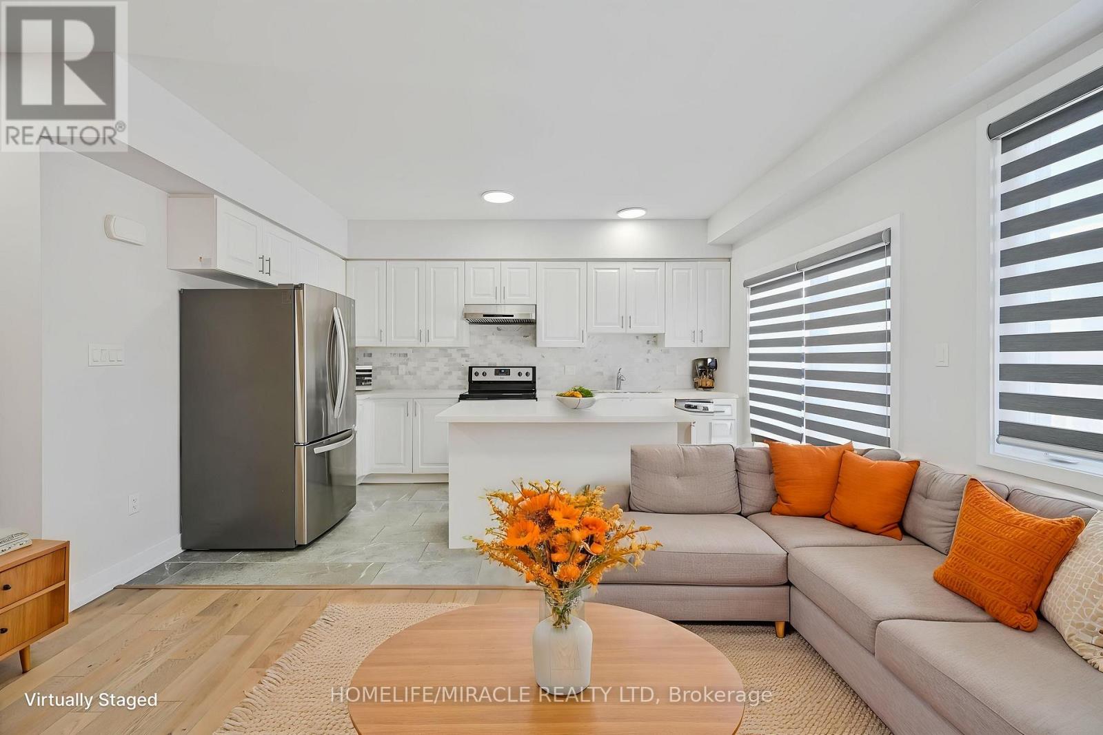 Beautifully maintained Stunning 2022-built townhouse located in the highly desirable south-east Barrie community. This bright and modern 2-storey home offers 3 bedrooms and 3 bathrooms, thoughtfully designed with stylish neutral décor and functional living spaces throughout. The main floor features 9-foot ceilings, large windows, and an open, airy layout that fills the home with natural light. The contemporary white kitchen is equipped with elegant cabinetry, quartz countertops, backsplash, and four stainless-steel appliances, creating the perfect space for everyday living and entertaining. An upgraded oak staircase adds a refined touch and connects the home's living spaces seamlessly. The upper level provides a private and comfortable retreat, highlighted by a spacious primary bedroom that easily accommodates a king-size bed along with space for a reading nook or home office area, and includes a 3-piece ensuite bathroom. Two additional bedrooms and a full bathroom complete the level, along with the convenience of second-floor laundry. Ideally situated close to excellent schools, parks, playgrounds, shopping, services, entertainment, and year-round recreation. Public transit and GO Transit are just steps away, with quick access to major commuter routes to the GTA and close proximity to the Barrie waterfront. Bright, modern, and truly move-in ready - a fantastic opportunity in one of Barrie's most desirable locations. (id:4555)