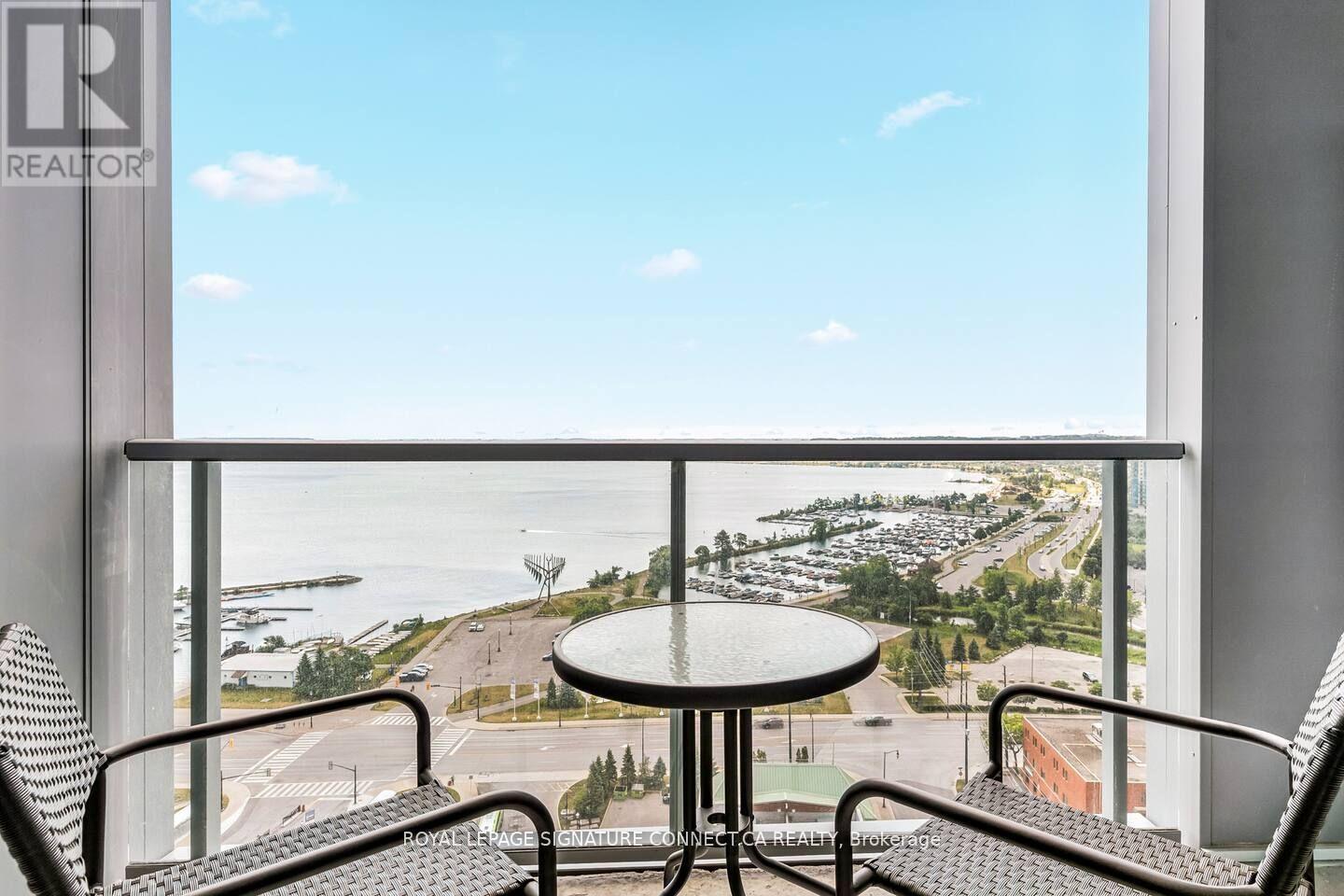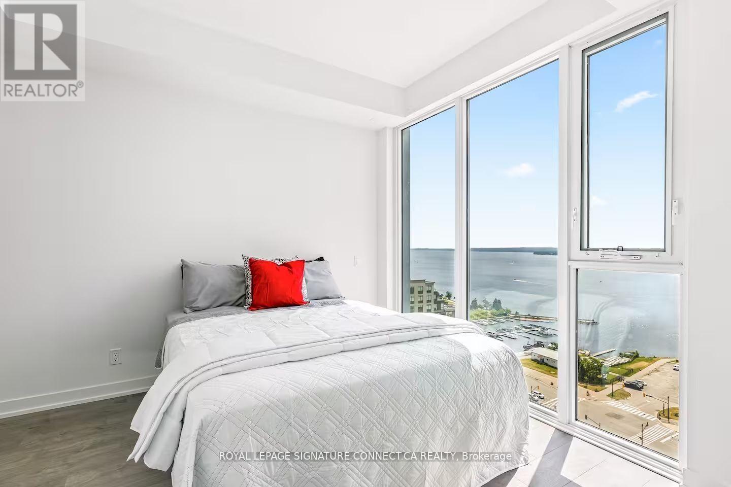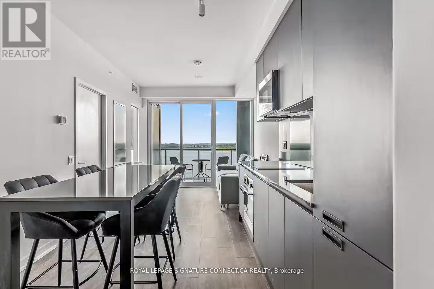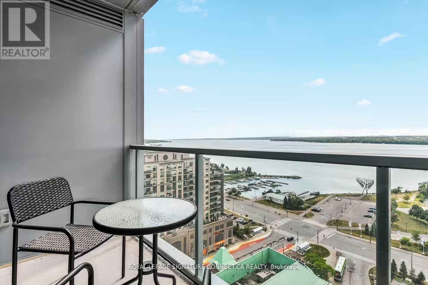 Welcome to downtown Barrie living at its finest. This stylish 1+1 bedroom, 2-bath suite comes fully furnished and move-in ready! Includes a bright open-concept layout with tasteful furnishings, a sleek full-size kitchen with stainless steel appliances, and a walk-out to a private balcony. The spacious primary bedroom features a queen bed and ensuite bath, while the versatile den provides a comfortable guest space or home office with a second full bath nearby. Designed for both comfort and convenience, the suite includes in-unit laundry, Smart TV, high-speed Wi-Fi, 1 locker and 1 underground parking space. Perfectly located just minutes from Barrie's waterfront, trails, restaurants, and boutique shops-enjoy a turnkey lifestyle where urban convenience meets relaxed lakeside living. (id:4555)