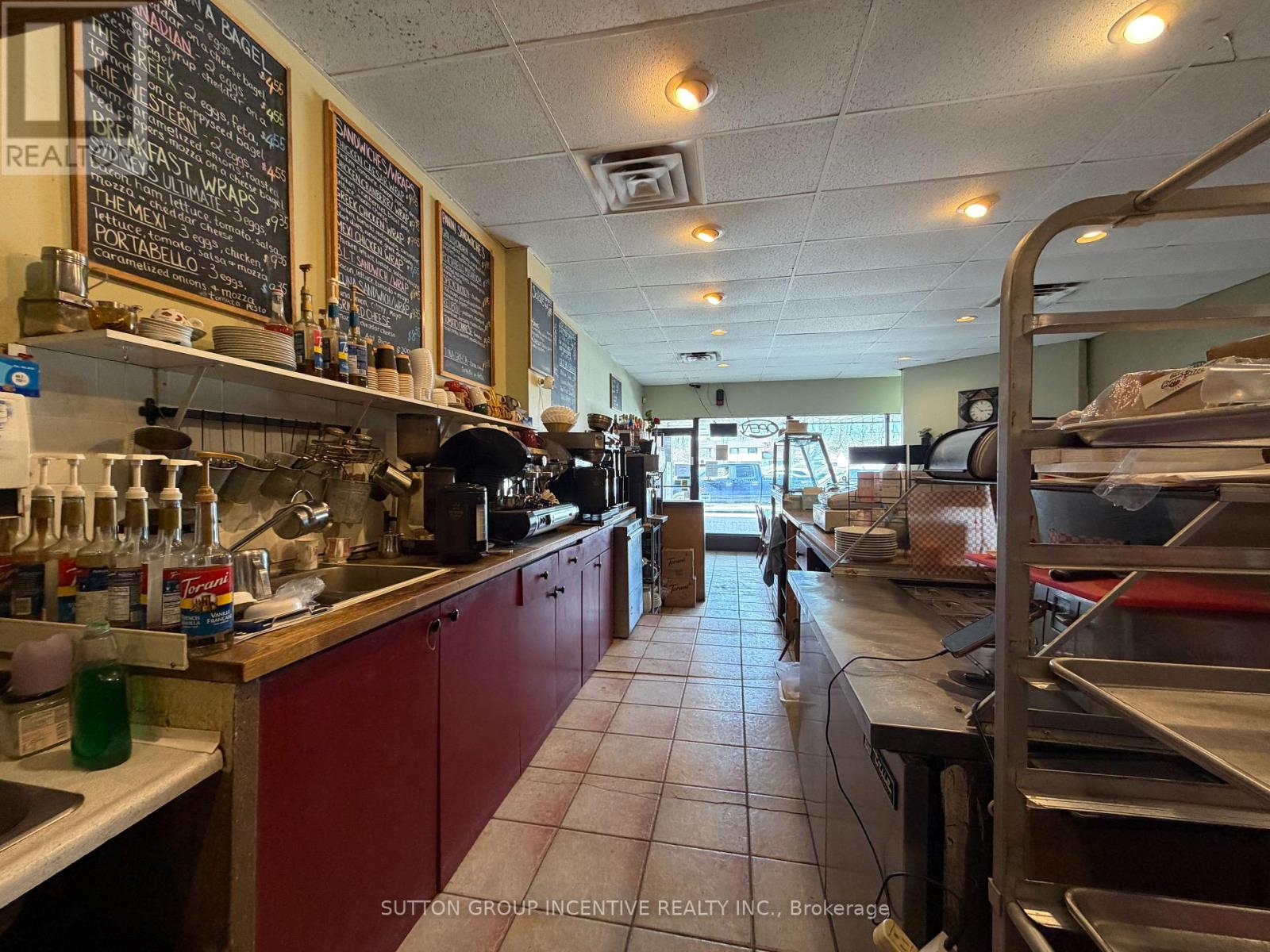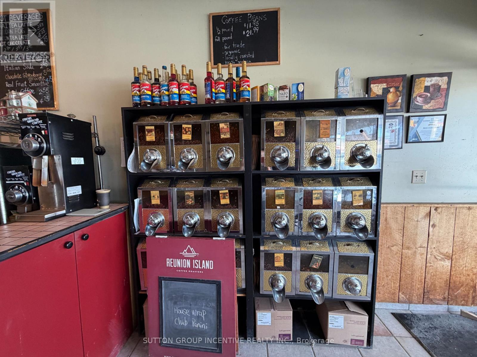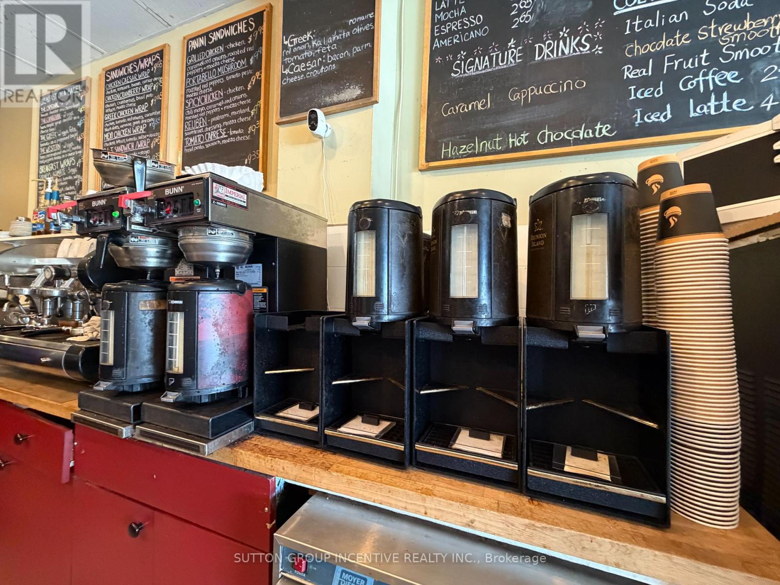 Well-Established Coffee Bistro for Sale - Prime North Barrie Location. Excellent opportunity to own a well-established coffee bistro operating for over 30 years in Barrie's busy north end. The current owner has successfully operated the business for 13 years.Located in a high-traffic plaza at 221 Cundles Road East, this café benefits from a loyal and steady customer base built over decades.The location offers exceptional exposure and is surrounded by many key traffic generators including a High School, grocery store, office buildings, hospital, and Georgian College, and Malls creating consistent daily traffic from students, professionals, and local residents. This affordable business is ideal for entrepreneurs or investors looking to operate a café or transform the space into another concept such as: Bakery or dessert café Bubble tea shop Sandwich / take-out restaurant Specialty coffee shop European frozen foods / specialty grocery Catering kitchen or food preparation business With nearby hospital, college, schools, and offices, the location also offers excellent potential for catering services and food delivery businesses.Highlights: 1. Established business with Loyal repeat clients in the Busy North Barrie commercial plaza. 2. location Steps from High School, offices and grocery store Close to Hospital, Malls ,HWY400 and Georgian College. 3. Strong daily traffic from students and professionals Great potential for catering and take-out business Owner willing to train the new buyer. 4. A great opportunity to be your own boss with a low startup cost while taking advantage of a well-known location with strong community presence and long-term customers. 5. Great opportunity to continue the current café business or convert to another food concept. (id:4555)