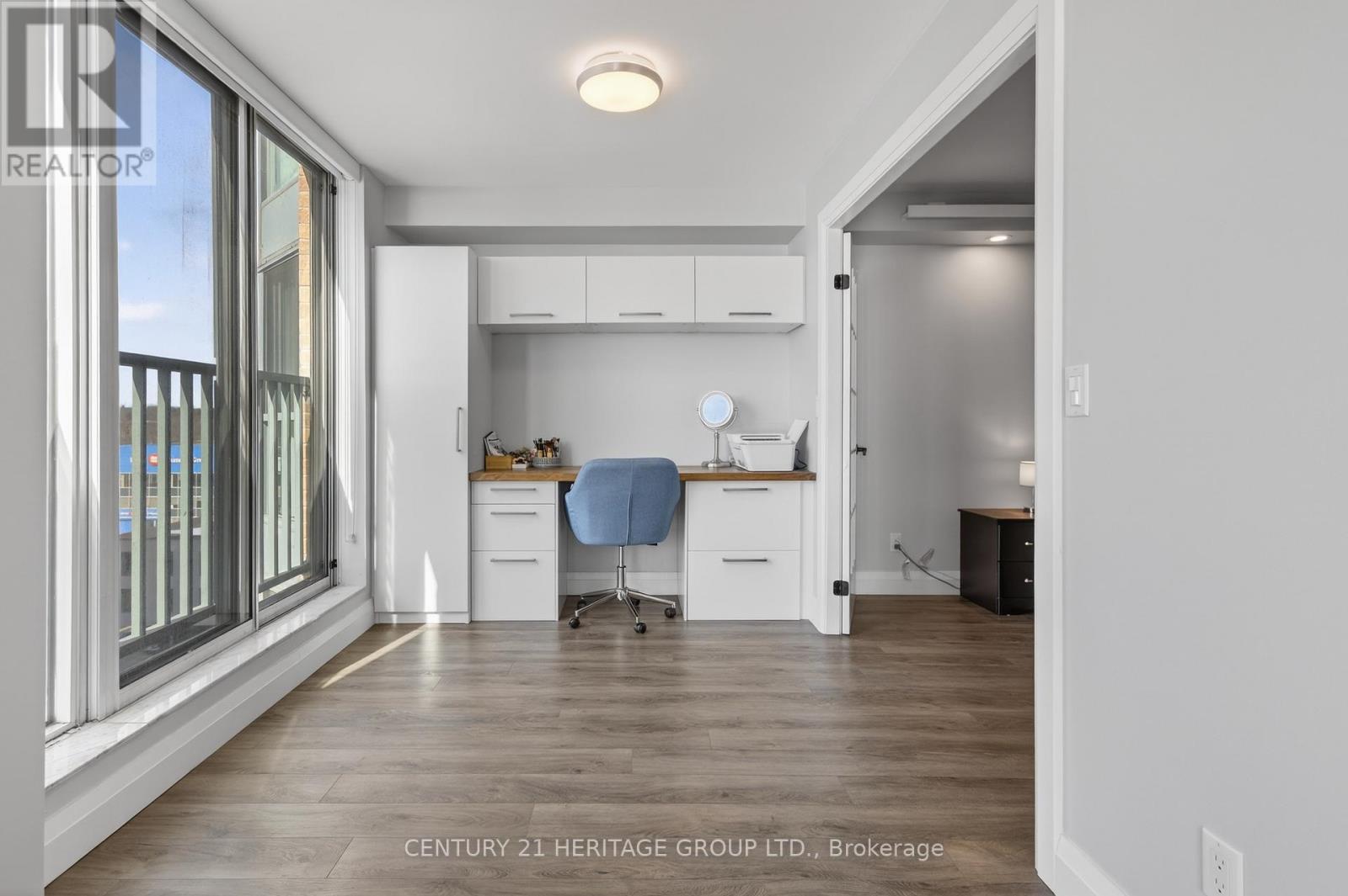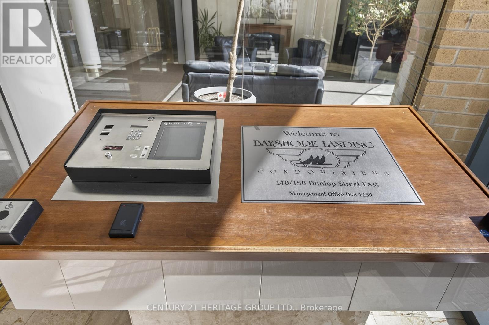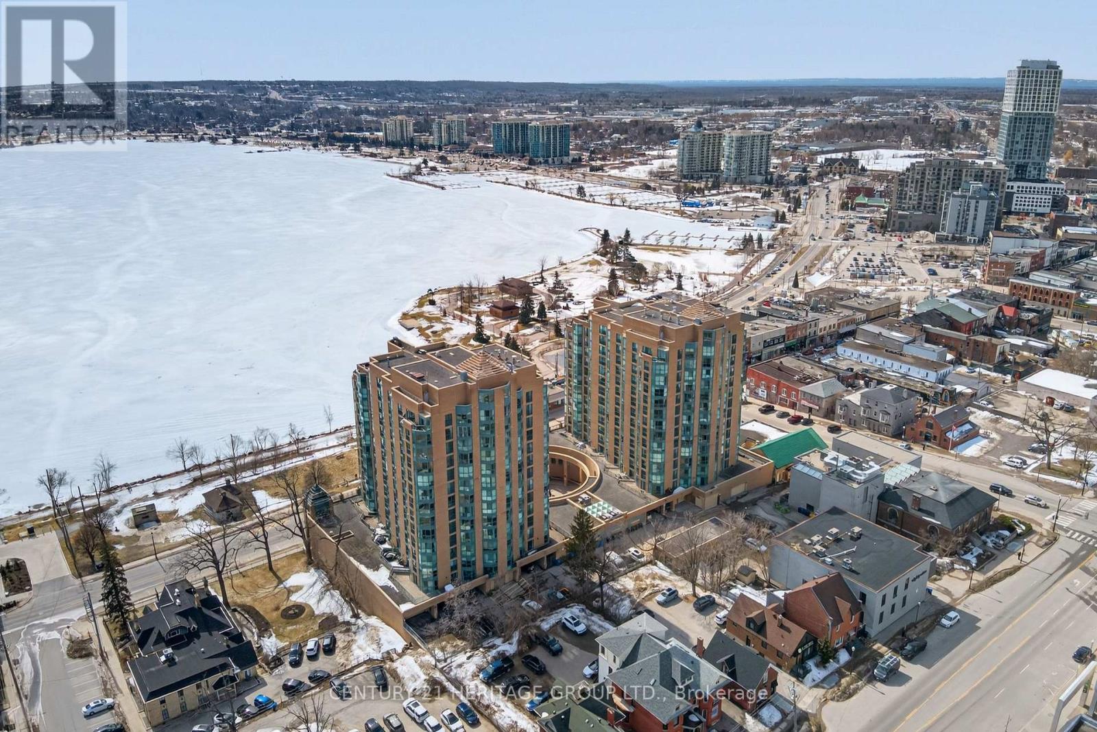Welcome to Bayshore Landing - Barrie's Lakeside Lifestyle Awaits! Experience the best of lakeview condo living in this beautifully updated 1+1 bedroom, 1-bathroom suite overlooking the shimmering waters of Kempenfelt Bay. With 855 sq ft of bright, open-concept living space, this home feels spacious and inviting, featuring large windows, no carpet throughout, and thoughtfully designed built-in storage and closet systems. The modern kitchen flows seamlessly into the living and dining areas-perfect for entertaining or enjoying quiet evenings by the view. The versatile den offers an ideal space for a home office, guest area, or cozy reading nook. Bayshore Landing provides resort-like amenities including a saltwater indoor pool, fully equipped gym, party room, underground parking, car wash area, visitor parking, storage locker, and bike storage. This clean, well-maintained building offers comfort, convenience, and community right in the heart of Barrie's vibrant downtown-just steps to waterfront trails, cafés, and shopping. Move-in ready and meticulously maintained, this condo is the perfect blend of style, function, and location. (id:4555)