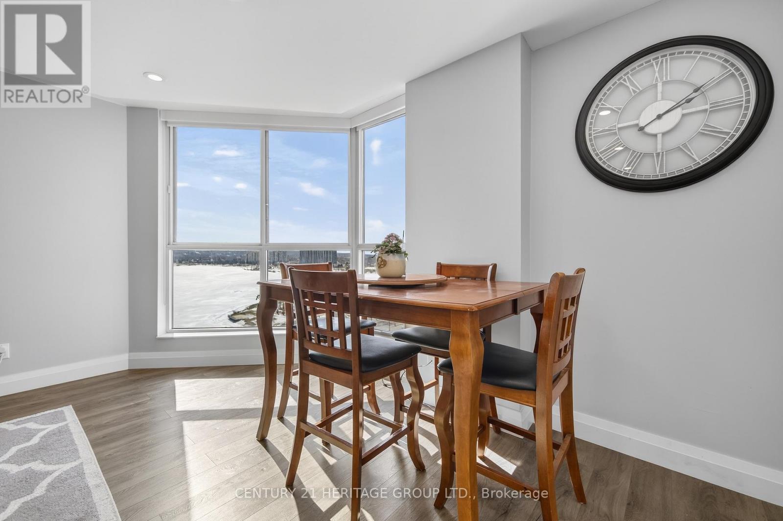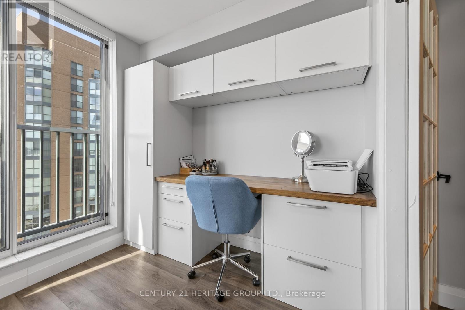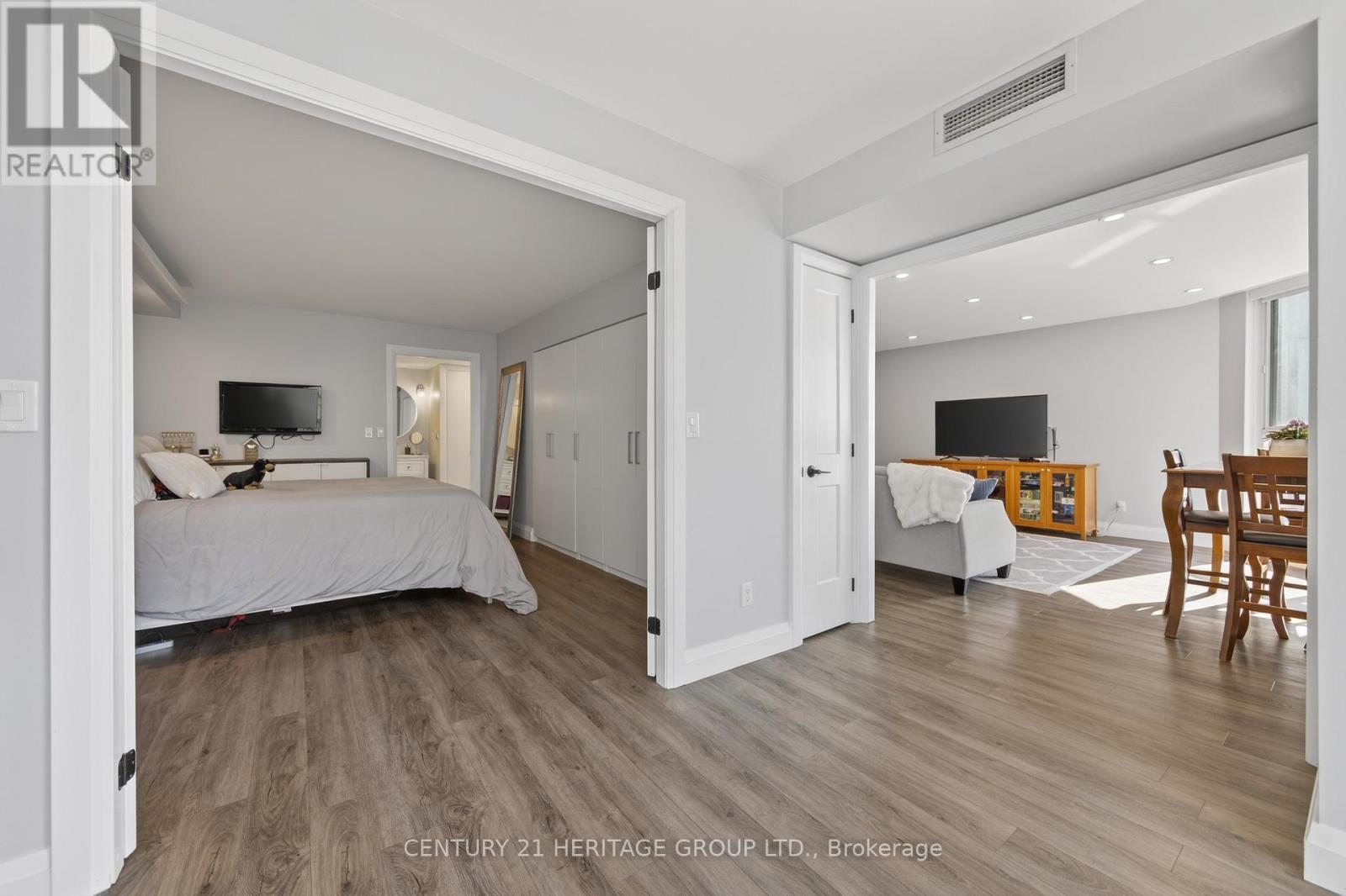 Welcome to Bayshore Landing - Barrie's Lakeside Lifestyle Awaits! Experience the best of lakeview condo living in this beautifully updated 1+1 bedroom, 1-bathroom suite overlooking the shimmering waters of Kempenfelt Bay. With 855 sq ft of bright, open-concept living space, this home feels spacious and inviting, featuring large windows, no carpet throughout, and thoughtfully designed built-in storage and closet systems. The modern kitchen flows seamlessly into the living and dining areas-perfect for entertaining or enjoying quiet evenings by the view. The versatile den offers an ideal space for a home office, guest area, or cozy reading nook. Bayshore Landing provides resort-like amenities including a saltwater indoor pool, fully equipped gym, party room, underground parking, car wash area, visitor parking, storage locker, and bike storage. This clean, well-maintained building offers comfort, convenience, and community right in the heart of Barrie's vibrant downtown-just steps to waterfront trails, cafés, and shopping. Move-in ready and meticulously maintained, this condo is the perfect blend of style, function, and location. (id:4555)