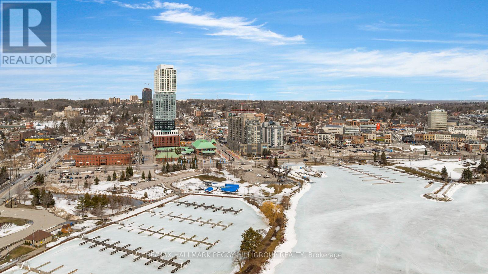 BRAND-NEW 2-BEDROOM-PLUS-DEN CONDO WITH PARKING, IN-SUITE LAUNDRY, & KEMPENFELT BAY VIEWS! Perched above downtown Barrie with sweeping views over Kempenfelt Bay and the city skyline, this brand-new, never-occupied condo for lease delivers a striking backdrop from the moment you walk in. Floor-to-ceiling windows fill the open-concept living space with natural light, and the private balcony extends the living area outward with a clear vantage point over the bay and city lights. The modern kitchen has built-in stainless steel appliances, sleek counters, a matching backsplash, flat-panel cabinetry, and a movable island. A spacious layout with 2 bedrooms, a den, and 2 full bathrooms gives you room to spread out, while the primary features a double closet and a modern 3-piece ensuite, complemented by a beautifully finished 4-piece main bathroom. In-suite laundry and one parking space add ease to daily living, while the location puts Barrie's waterfront, marina, Heritage Park, trails, restaurants, cafes, shopping, entertainment, the library, and transit all within walking distance. Residents also enjoy access to impressive amenities, including an infinity pool, fitness centre, outdoor BBQ and fire-pit area, boardroom and business centre, and indoor and outdoor dining rooms, creating a lease opportunity that puts you right in the middle of Barrie's downtown lifestyle! (id:4555)