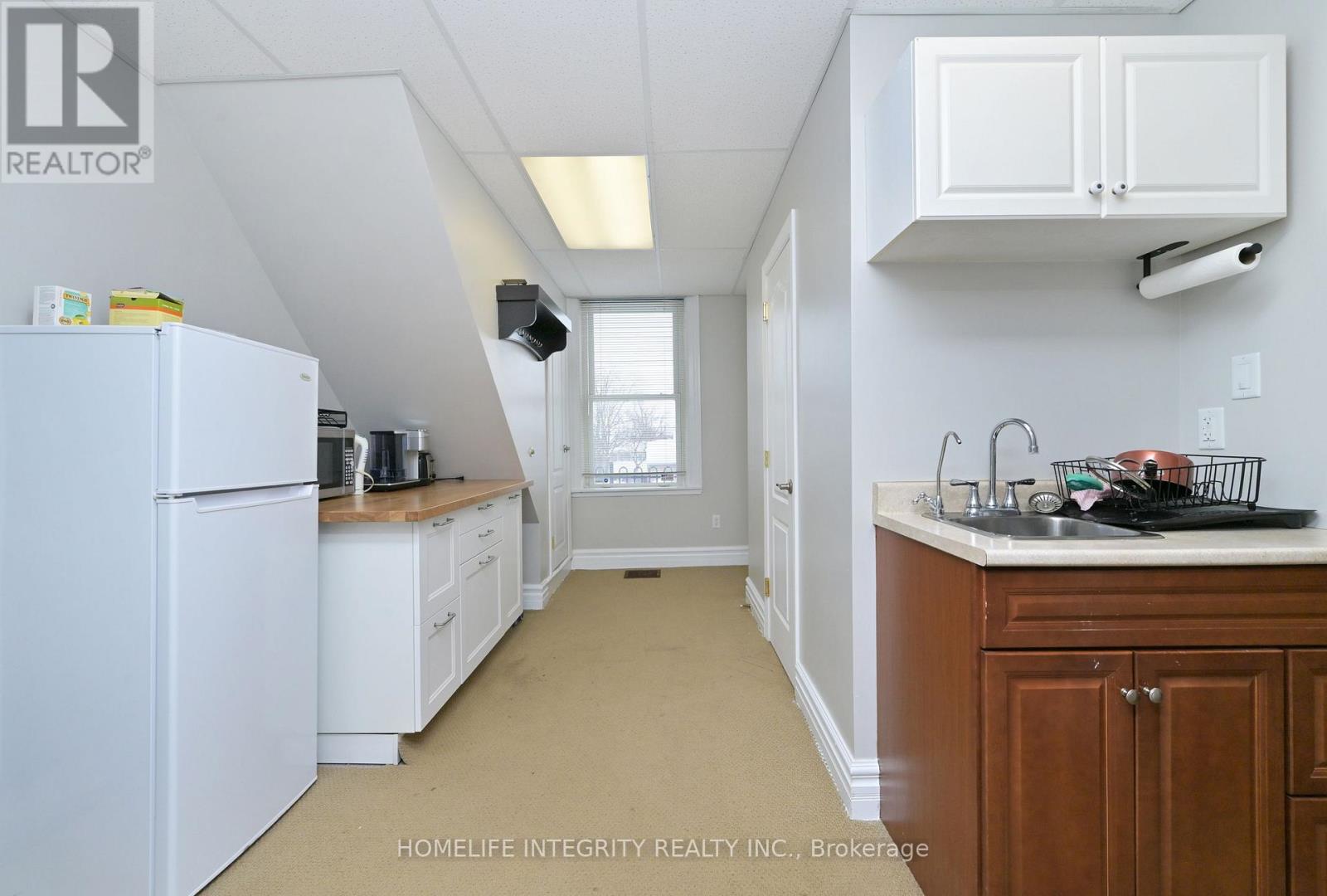 Priced right ! Professional Office Building on the west side of downtown Barrie Core. Close proximity to other professional businesses, on the preferred Collier corridor and just minute's walk away from City Hall, the Barrie Courthouse and the major banks . This well maintained offices totaling 2240 sq ft shows very well with a spacious reception area, two large boardrooms, 7 good sized offices, bathrooms on both floors and a staff kitchen. Upper and main areas could easily serve two separate entities . Also a large attic area can be used for storage or potentially finished space too. Parking for 7 plus cars. Vacant and move in ready for professionals looking for a premier location in the heart of the business district but equally a quiet and secure place to work. (id:4555)