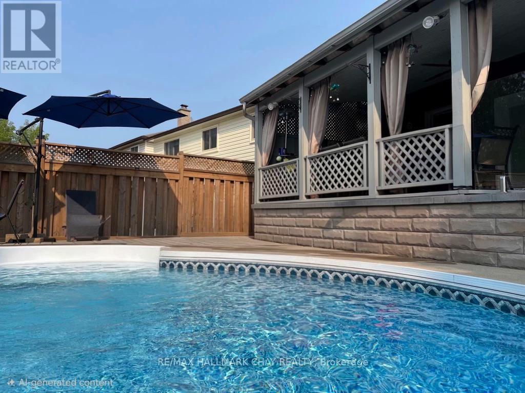RESORT-STYLE LIVING in Barrie! This beautiful 3 bedroom, 2 full bathroom family home offers the perfect blend of comfort and outdoor luxury, featuring a private backyard oasis with a heated in-ground pool, uni-stone patio, gas bbq line, and a secluded covered deck-ideal for entertaining or relaxing all summer long. The home welcomes you with an enclosed front entry, interlock walkway, and a 4-car driveway (no sidewalk). Inside, the spacious living room is inviting with a stylish feature wall with built-ins, and a walkout to the backyard. The updated eat-in kitchen shines with quartz countertops, pot lights, and stainless steel appliances including a gas range. A formal dining room sets the stage for hosting holiday meals. Main floor laundry adds comfort and efficiency to daily living. Upstairs, you'll find three generously sized bedrooms and a well-appointed main bath, while the lower level offers a versatile family/rec room or potential office, gym, or guest space, along with an additional full bathroom. KEY UPDATES include the kitchen, shingles, pool heater, garage door, driveway, interlock walkways, retaining wall, glass panels, garden sheds, and some fencing and gates. Set on a quiet, tree-lined, family-friendly street, this home is within walking distance to the Allandale Recreation Centre, close to the GO Station, and just minutes from parks, shopping, commuter routes, and the vibrant waterfront-making it the perfect place to call home. Your staycation lifestyle starts here! (id:4555)
