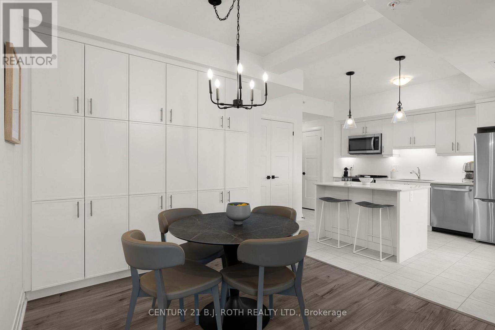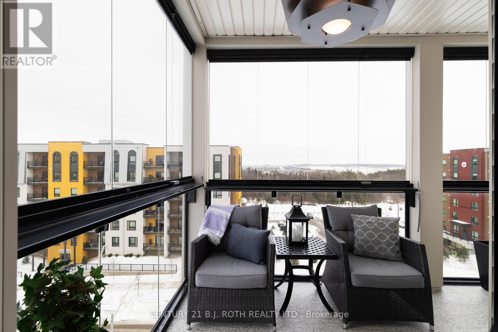 AVAILABLE APRIL 1ST. Introducing Suite 511 at 15 Kneeshaw Drive, a bright corner 1-Bedroom + Den, 1-Bathroom condo with underground parking, equipped with EV charging, located in the highly sought-after Elements Condominiums. Nestled in southeast Barrie, this beautiful suite offers the perfect balance of urban convenience and peaceful living, with easy access to shopping, dining, schools, and just a short walk to the GO Station. Enjoy quick connections throughout the city and an easy drive to year-round outdoor recreation. As a corner suite, Suite 511 is filled with natural light and features 9' smooth ceilings with pot lights and designer fixtures, creating an open, airy feel throughout. Premium high-end laminate flooring flows seamlessly across the space, enhancing the modern aesthetic. The kitchen is thoughtfully designed with quartz countertops, upgraded cabinetry with undermount lighting, and stainless steel appliances, blending style with everyday functionality. Additional custom cabinetry in the dining and living areas provides extended storage, while the enclosed glass balcony offers a versatile space for relaxing or entertaining year-round, with panels that open and close for seasonal enjoyment. Residents of Elements Condominiums enjoy resort-style amenities including waterfall and firepit lounge areas, a cardio room, EV charging stations, an outdoor jogging track with fitness stations, and a children's playground. Living here truly feels like a luxury 5-star hotel experience, offering comfort, convenience, and lifestyle all in one. Don't miss your opportunity to call Suite 511 home. (id:4555)