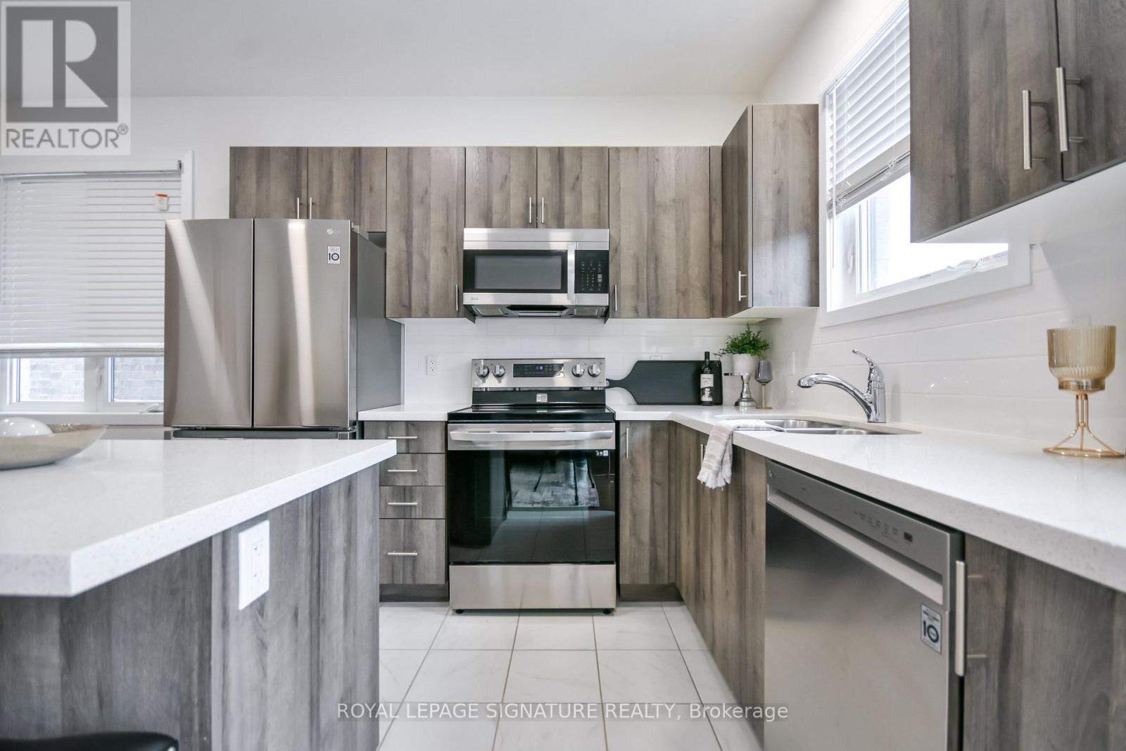 MODERN LUXURY END-UNIT TOWNHOME, UNBEATABLE LOCATION! Built in 2022, this meticulously maintained 3-bedroom, 3-bathroom freehold town shows like new and offers just shy of 1,300 sq. ft. of living space, plus a full, unfinished basement with rough-in for 3 pc washroom ready for your finishing touches. Bright and functional layout featuring spacious bedrooms, including a grand primary retreat with private 4 PC ensuite and convenient top-floor laundry. Main floor features gorgeous hardwood throughout, a powder room and an open concept living room, breakfast area and kitchen, all flooded with light. The upgraded kitchen includes premium stainless steel appliances, modern lighting, quartz countertops, and a functional island with an added electrical outlet. This premium end-unit offers extra privacy and a functional fully fenced backyard with rare side access. Only a 5-minute walk to the Barrie South GO Station, great for commuters. Minutes to Friday Harbour Resort, downtown Barrie's vibrant downtown waterfront on Lake Simcoe, schools, shopping plazas and multiple golf courses. Easy access to highway 400. Move-in ready home in a prime, commuter-friendly location - an incredible opportunity you won't want to miss! (id:4555)