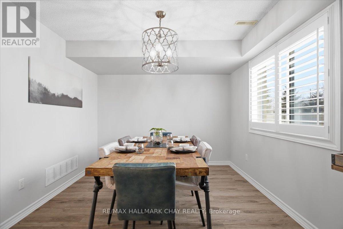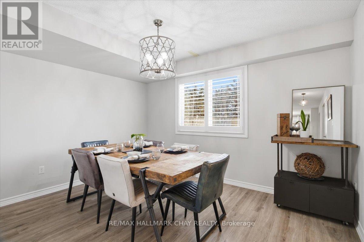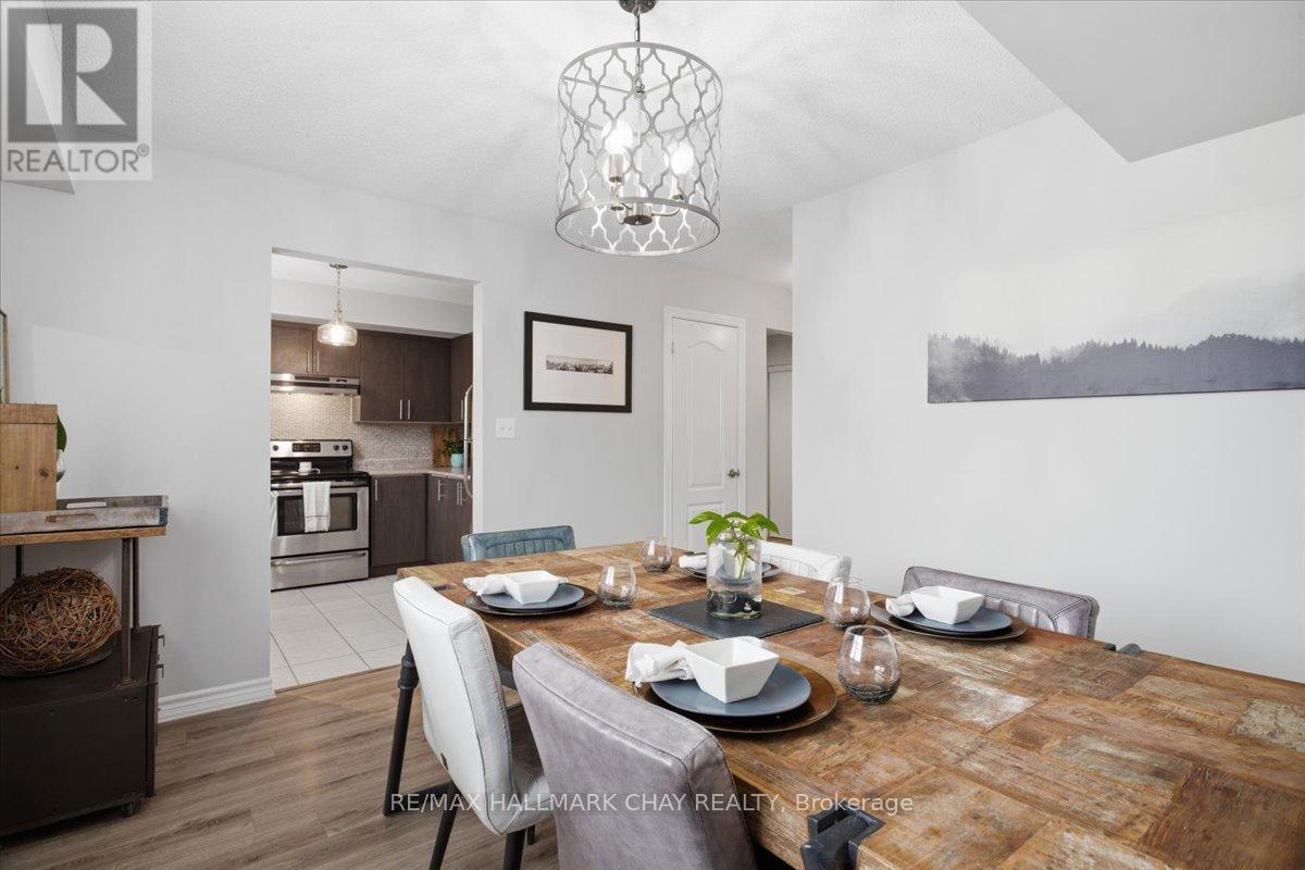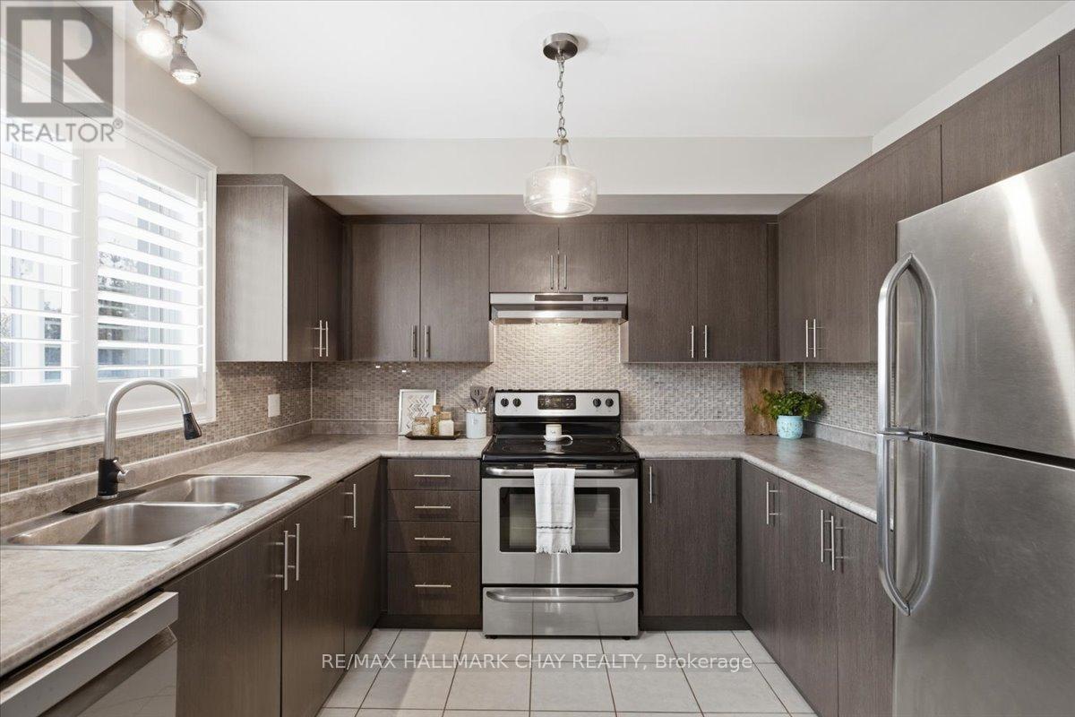 Beautifully finished, move-in ready condo townhouse in Barrie's sought-after Manhattan community on Ferndale Drive S. Offering over 1900 sqft of living space, this rare 3-bedroom, 3-bath layout feels more like a townhouse than a typical condo. Bright and spacious main level features a large open-concept living and dining area with elegant flooring, modern lighting, and oversized windows that fill the space with natural light. The well-appointed kitchen includes stainless steel appliances, tile flooring, and a stylish backsplash, with a walkout to a private balcony. Upstairs, the generous primary suite offers a walk-in closet and private ensuite, while two additional bedrooms provide excellent space for family, guests, or a home office. Convenient upper-level laundry adds to the functionality of the home. Beautifully staged and meticulously maintained, this home shows exceptionally well and is truly move-in ready. One of the larger and more functional layouts in the community. Includes one parking space. Ideally located in Barrie's desirable south end, close to parks, trails, schools, shopping, and commuter routes. (id:4555)
