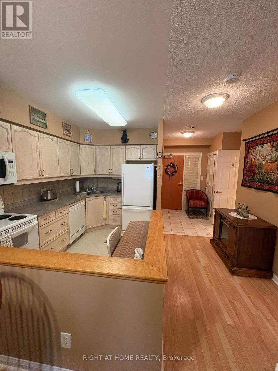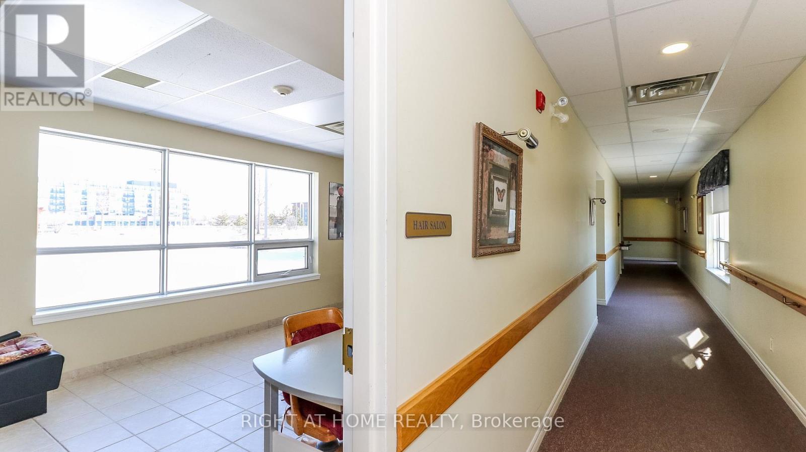The Terraces of Heritage Square is an Adult over 60+ building. These buildings have lots to offer, Party rooms, library, computer room and a second level roof top gardens. Ground floor lockers and parking. |These buildings were built with wider hallways with hand rails and all wheel chair accessible to assist in those later years of life. It is independent living with all the amenities you will need. Walking distance to the library, restaurants and shopping. Barrie transit stops right out front of the building for easy transportation. This lovely Oro has North West Exposure from your Solarium. The in suite laundry room has extra storage area. Laminate flooring in the living/dining room. Semi Ensuite Bathroom room with a walk in shower. Open concept kitchen overlooking the living room. Open House tour every Tuesday at 2pm Please meet in the Lobby of 94 Dean Ave. (id:4555)