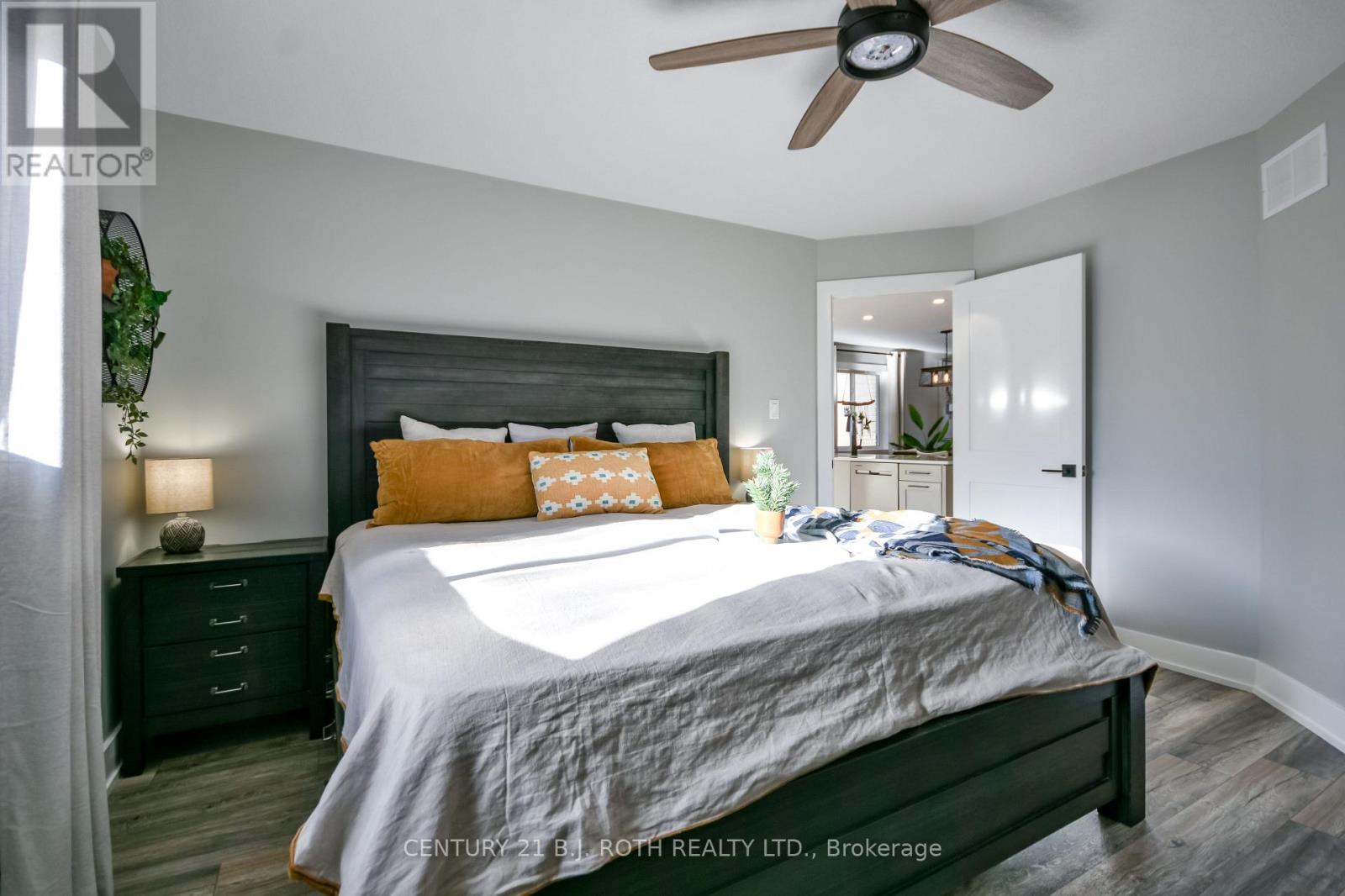 Completely reimagined and move-in ready, this all-brick bungalow in desirable South Barrie delivers style, function, and versatility. Thoughtfully updated with upscale finishes throughout, the heart of the home is a show-stopping chef's kitchen featuring waterfall granite counters, ceiling-height soft-close cabinetry, an induction cooktop, modern fixtures, pot lighting, and sleek California knockdown ceilings. Select windows updated in 2026 enhance the bright, open-concept layout-perfect for everyday living and entertaining alike. Step outside to a professionally landscaped backyard retreat with interlock stone, pergola, and hot tub. The main floor offers a spacious primary suite complete with walk-in closet and private ensuite, along with two additional bedrooms and solid-core shaker-style doors throughout. A separate garage entrance leads to a bright, well-appointed lower-level suite with impressive ceiling height, silent floor system, full kitchen, full bath, laundry, and two bedrooms-perfect for in-laws or added income potential. The fully insulated and heated double garage features custom built-ins and mezzanine storage for added convenience. Major updates include a brand-new high-efficiency furnace and upgraded 200-amp electrical service. Meticulously maintained with evident pride of ownership, this is a rare opportunity to own a turnkey home. No staging tricks here-just a home that truly shows beautifully. (id:4555)