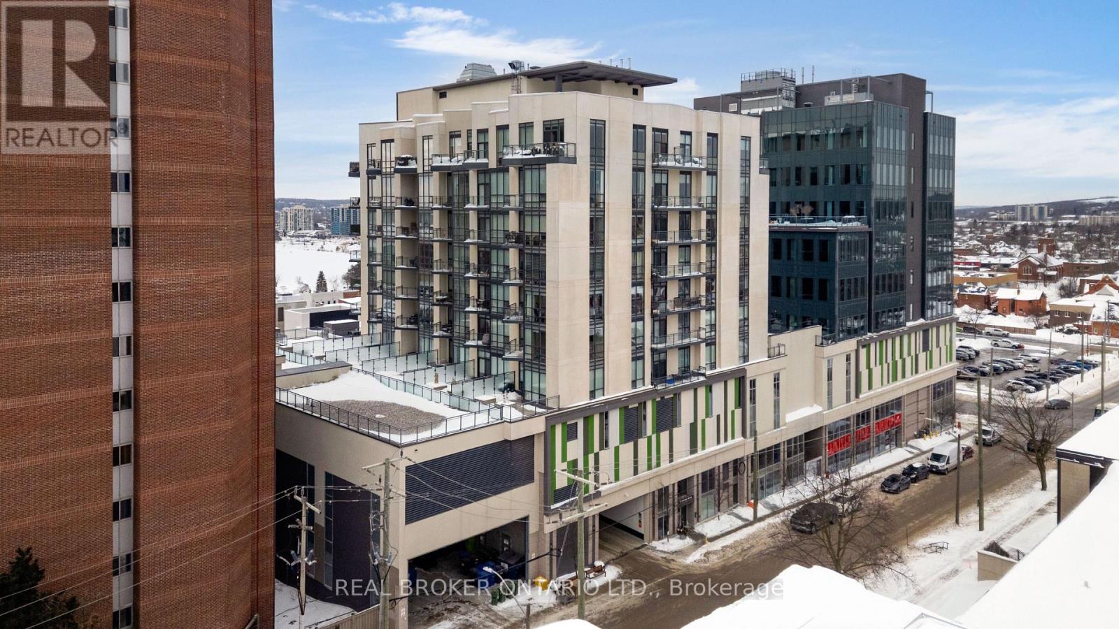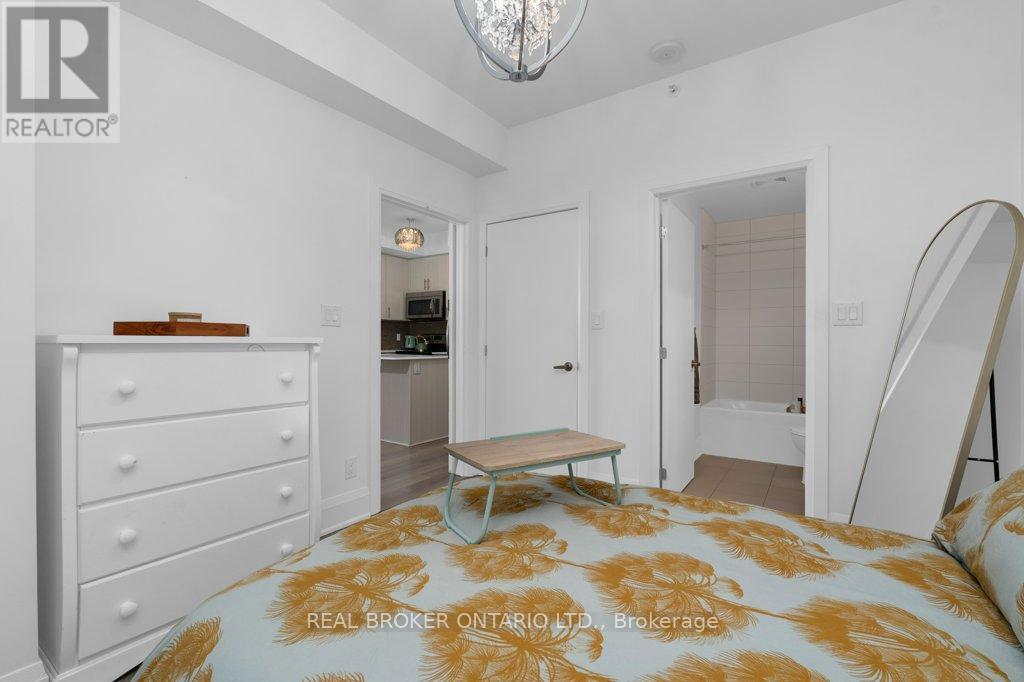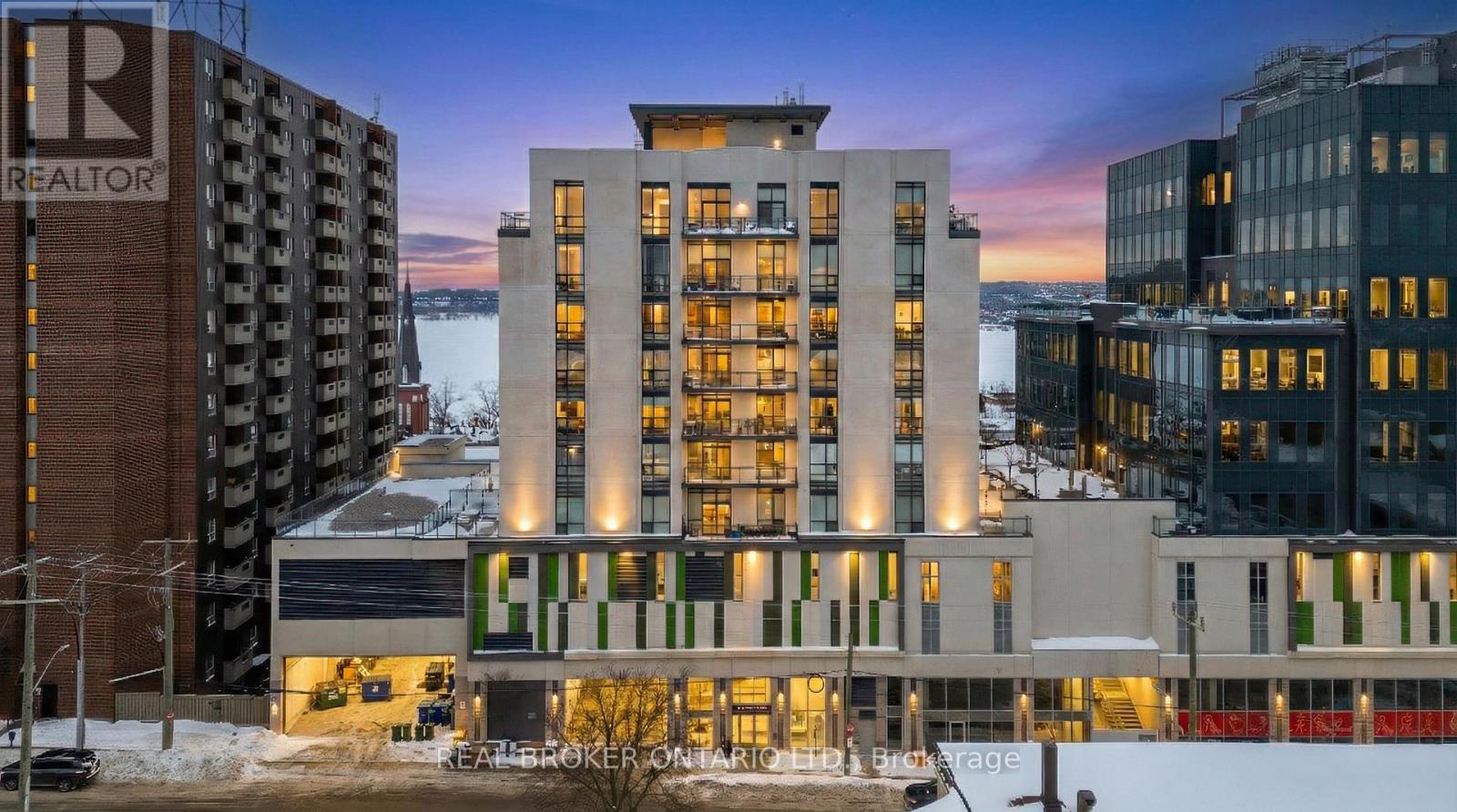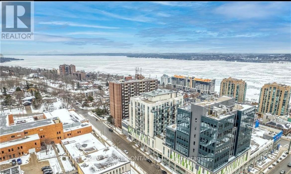 Condo living never looked so good! Tucked privately away this unit boasts tons of natural light from almost every angle with an abundance more windows than most of the buildings models. With over 800 square feet, 9 foot ceilings and original owner this pride of ownership condo bursts with luxury. The second you walk in you will notice the upgraded washer and dryer, laminate flooring and easy flow floor plan. Crisp quartz countertops, tasteful tiled backsplash, open shelving and stainless steel appliances adorn the open concept kitchen with extra deep counter perfect for stools with gossip with friends and an espresso martini. The large living/dining space has floor to ceiling windows and leads to the water facing oversized patio with outdoor decking tiles. Inside the primary bedroom via the barn door there is plenty of room for your furniture, a private 4 piece bathroom with stone countertop and bonus storage above the toilet and massive walk-in closet suitable for any shopaholics needs. Tastefully situated away from the primary bedroom your guest bedroom or office also flush with floor to ceiling windows has a double closet with organizer and is next to a 3-piece bathroom also with stone countertop. With updated lighting throughout and plenty of closet space you won't even need the locker that is included. Building offers tasteful large welcome seating area as well as work out and party room and massive terrace perfect to lounge around with your favourite book for a change of scenery from your own balcony. Ice skate under the stars at city hall, check out the talented artists at the MacLaren Art Centre, grab a puzzle from the local library, head down to the waterfront for a salsa lesson at Meridian Place, grab some fresh vegetables at the farmers market, walk to the Five Points Theatre, grab a bite to eat, or hit up a roof top patio or night club. Convenience at it's finest. Welcome home! (id:4555)