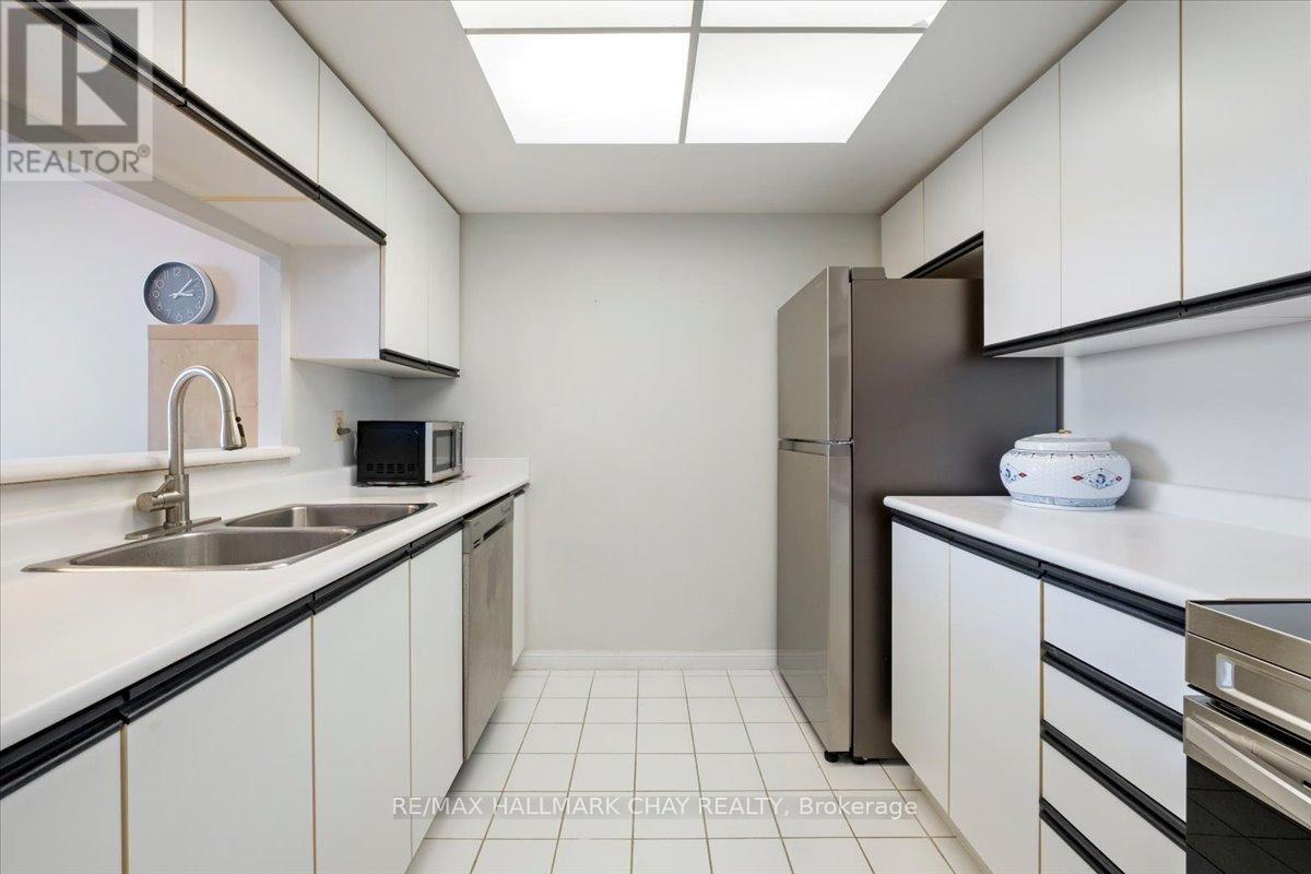 Welcome to this beautiful top-floor unit offering spectacular west-facing city views and unforgettable sunsets. Bathed in natural light throughout the day, this bright and inviting space features 9-foot ceilings that enhance the open, airy feel. The spacious kitchen is equipped with stainless steel appliances and flows seamlessly into an extra-wide living room-perfect for accommodating full-size furniture and comfortable everyday living. A full 4-piece bathroom with an upgraded vanity adds a modern touch, while in-suite laundry, neutral paint tones, and quality flooring throughout provide both convenience and style. This well-maintained unit includes one indoor parking space, along with visitor parking for guests. Set within a quiet, concrete building known for its low utility costs and pride of ownership, this home is truly move-in ready. Residents of Marina Bay enjoy an impressive array of amenities, including an indoor saltwater pool, sauna, hot tub, fitness room, party room, and games room. Ideally located just steps to waterfront trails, parks, and local attractions, this pet-friendly community offers a vibrant yet welcoming lifestyle-perfect for first-time buyers, downsizers, or investors alike. (id:4555)