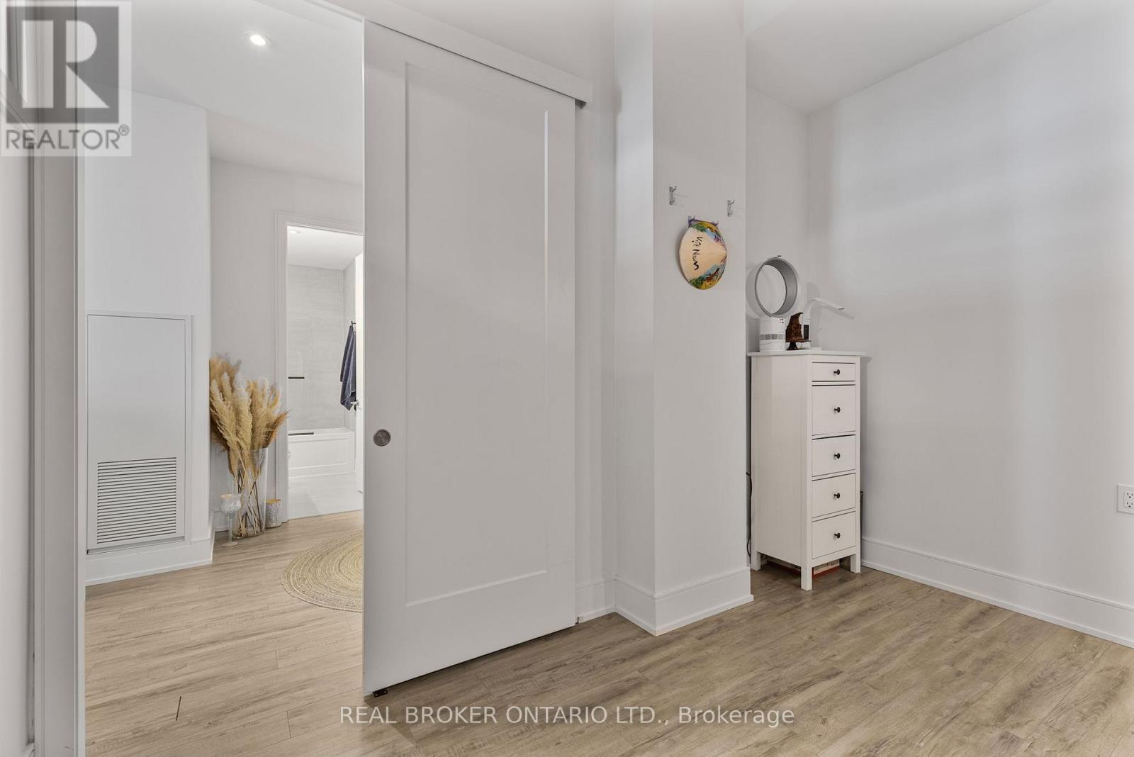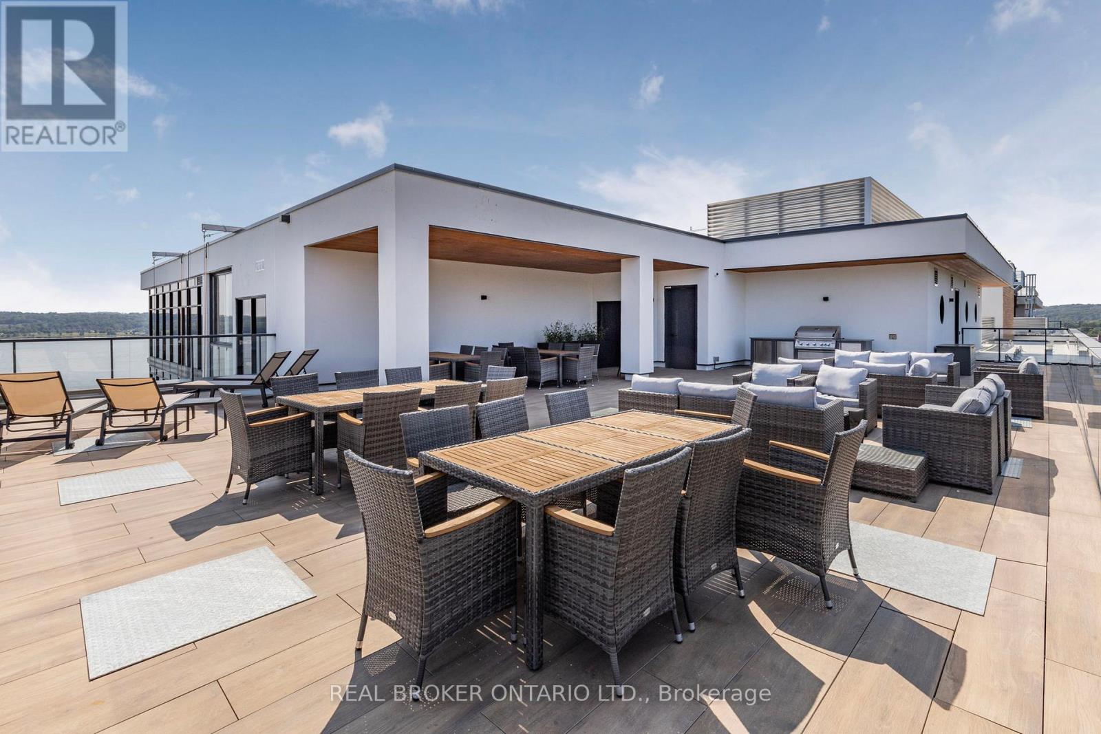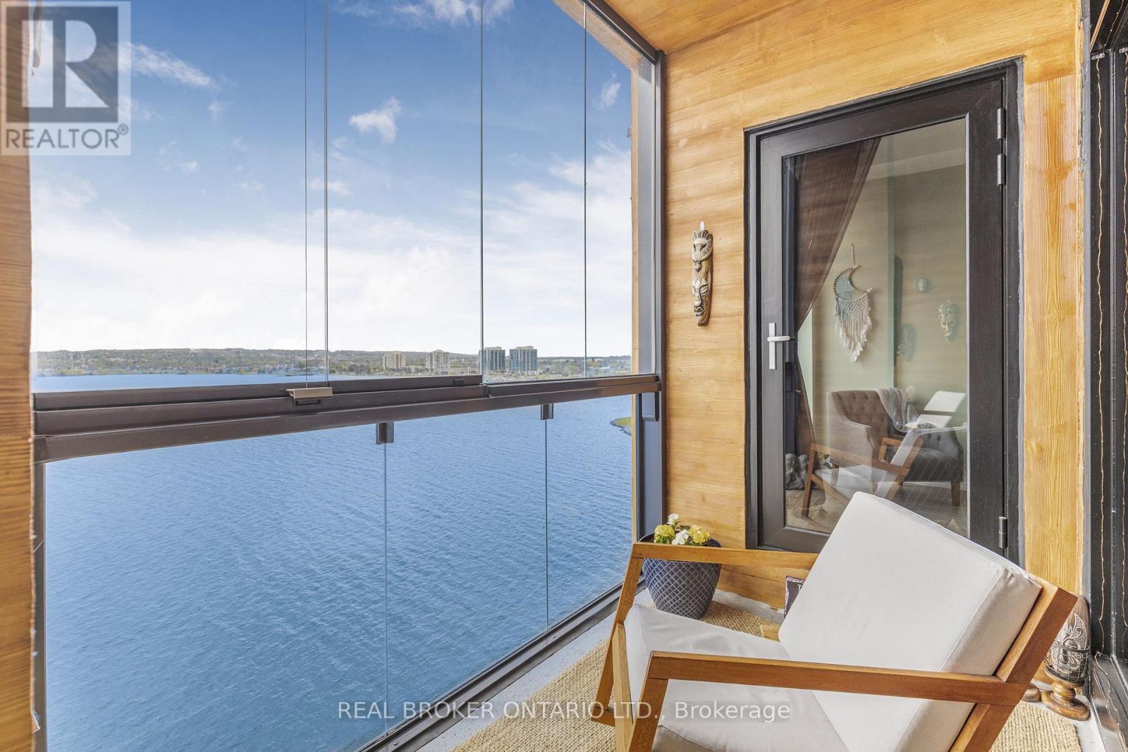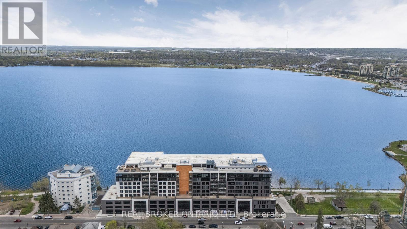 Welcome to Penthouse 3 at Lakhouse, Barrie's premier lakefront luxury condominium on the shores of Lake Simcoe. This exceptional penthouse offers a rare blend of modern design, upgraded finishes, and breathtaking views for a truly elevated lifestyle. Step inside to discover soaring ceilings and a thoughtfully customized interior of almost 1300 square feet. The stunning kitchen has all upgraded appliances and an extended breakfast bar with a built in beverage fridge making it perfect for entertaining. The living room features a custom built shiplap wall with a six foot electric fireplace, and a built in bench for extra seating and storage. Oversized windows flood the entire space with natural light. The primary bedroom is a true retreat with a spacious double vanity ensuite and a custom closet that reaches almost to the ceiling with extra deep hanging spaces, shelves and drawers on both sides. Enjoy stunning, unobstructed views of Kempenfelt Bay year round on the large private balcony with a unique railing-to-roof glass enclosure that opens fully. Use the spacious den for a second bedroom, a guest room or a flexible work space. En-suite laundry has been upgraded to include full sized machines. Building amenities include: two rooftop terraces with BBQs, kitchens, fire features, and panoramic lake views. A beautifully appointed party room, with a bar, meeting space, caterers kitchen and and indoor lounge areas with terrace access. A full-service fitness studio with locker rooms, whirlpool, sauna, and steam room. Pet spa, guest suites, indoor storage for paddle boards, kayaks and bikes, and two floating docks for easy lake access. On-site bakery café and pharmacy for added convenience. 24-hour concierge and security for peace of mind. Storage locker located on the same level as the unit. Includes two indoor parking spaces. This is a rare opportunity to own a signature penthouse suite in one of Barrie's most desirable luxury residences. (id:4555)