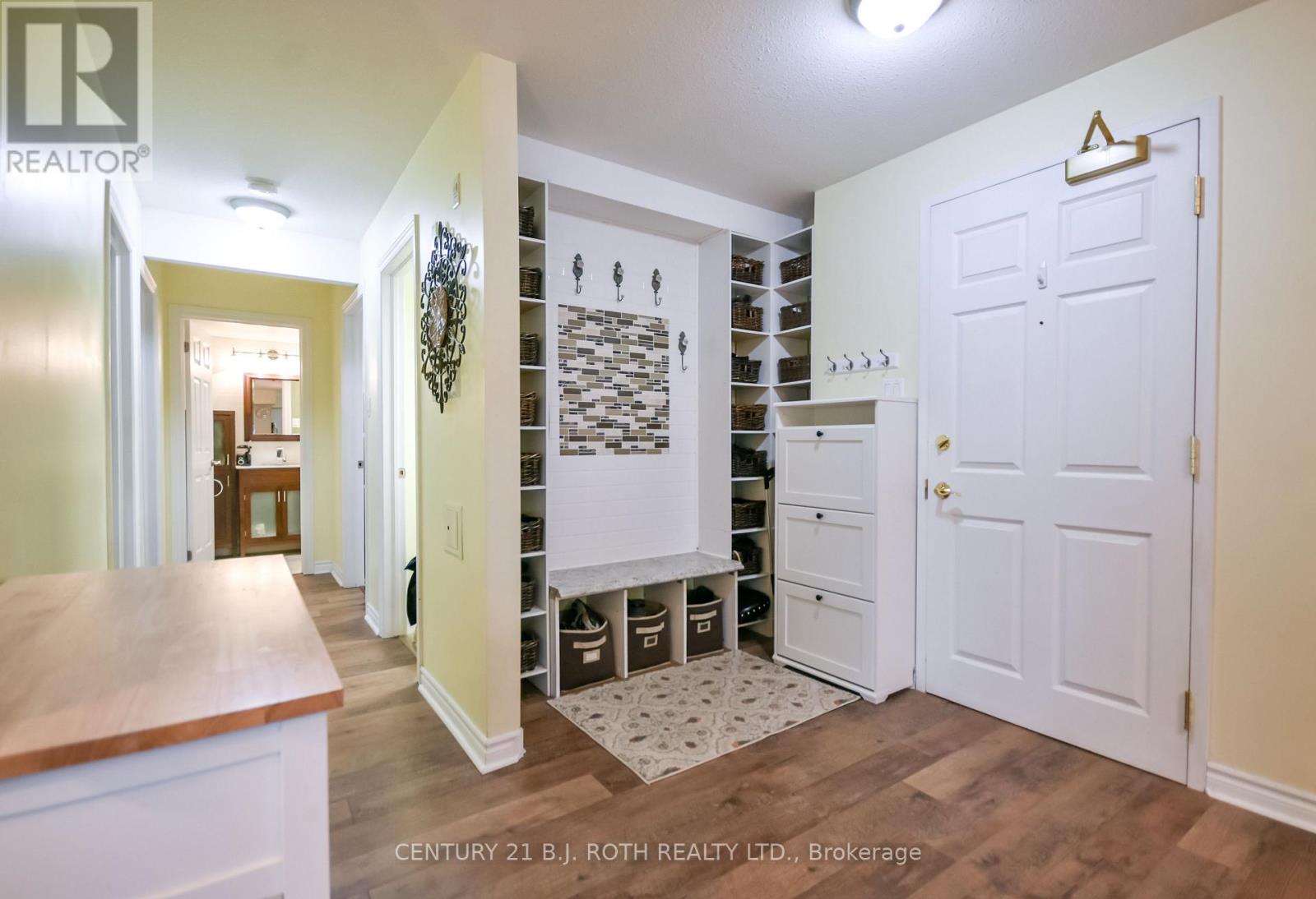 Exclusive Jacobs Terrace! Bright, spacious, and rarely offered-this sun-filled 1,000 sq ft ground-floor corner unit lets you skip the hallways and step right outside your front door. Enjoy your own covered patio, perfect for summer BBQs, in this desirable 2-bedroom, 2-bath suite. Ideally located within walking distance to Barrie's waterfront, beaches, downtown, and the GO Station, this home blends convenience with comfort. The large kitchen features ample cabinetry with pull-out drawers and plenty of counter space, flowing seamlessly into the open-concept living and dining area-perfect for entertaining. Both bedrooms are generously sized (king-bed friendly), and the unit is loaded with upgrades including California shutters, upgraded fixtures, knockdown ceilings, and carpet-free living throughout. Additional highlights include a 5'x5' personal locker, owned parking spot (#22), and the option for a second parking space for just $25/month. Set in a quiet, boutique building with only 24 units-this rare ground-floor corner unit is a true standout. (id:4555)