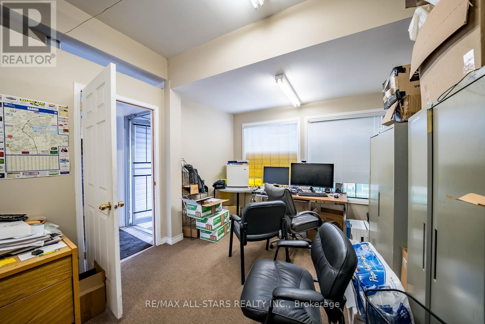 Rare find in downtown Barrie, just min to the lake, offering exceptional potential and versatility. This turn-key, multi-use building features approximately 2,918 sq ft total, including 1,302 sq ft of commercial office space on the main level, a spacious bachelor unit, and two 1-bedroom apartments on the second floor (approx.1,616 sqft residential). Ideal for investors or end-users, the property includes an existing side-building signage rental contract for additional income. Situated on a generous 49 x 161 ft lot with ample parking-9 commercial and 3 residential spaces. Additional features include laundry facilities and extra storage in the basement, along with numerous recent updates. Showings of residential units upon accepted offer. Possible VTB available. Don't miss this incredible opportunity in a prime location! (id:4555)