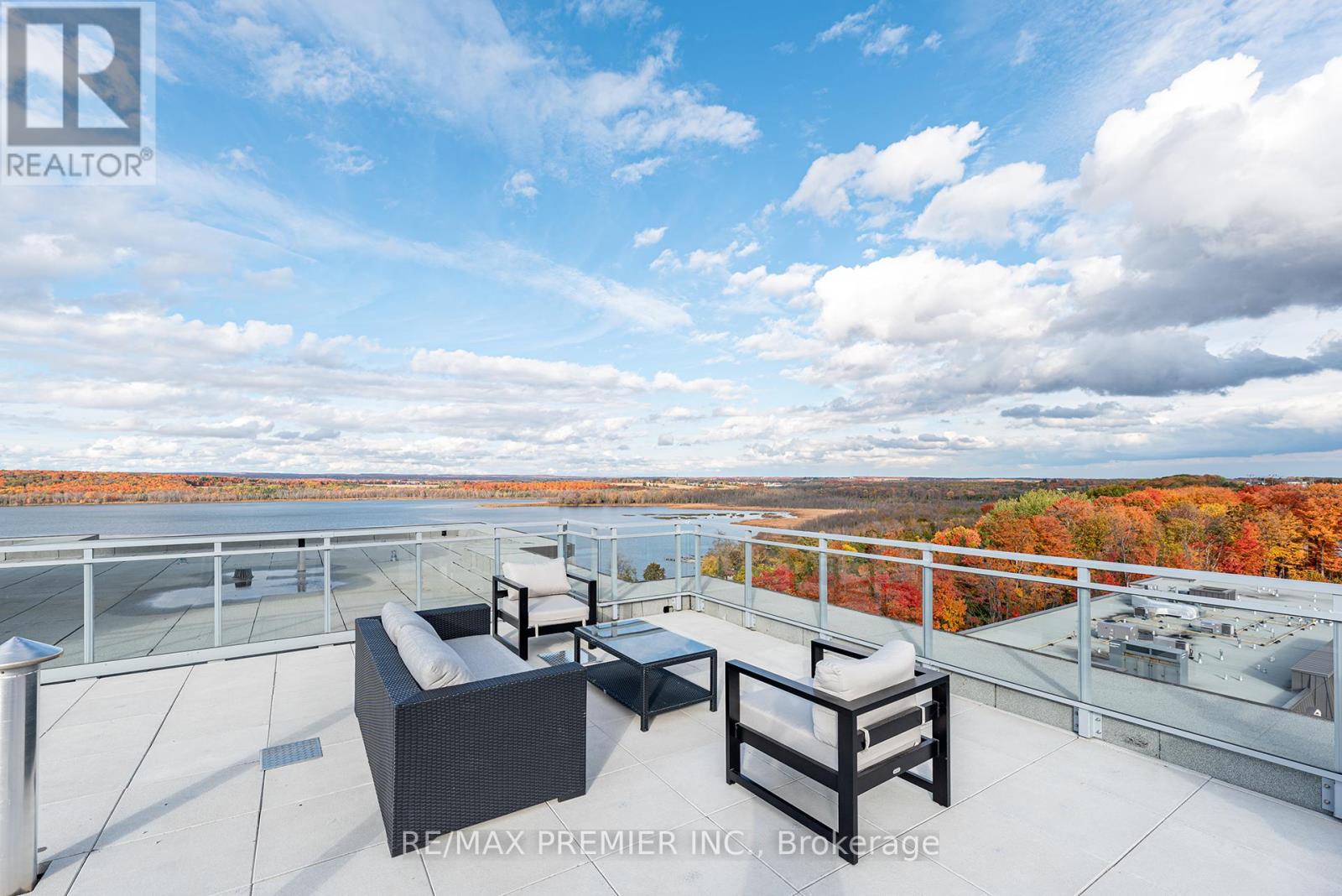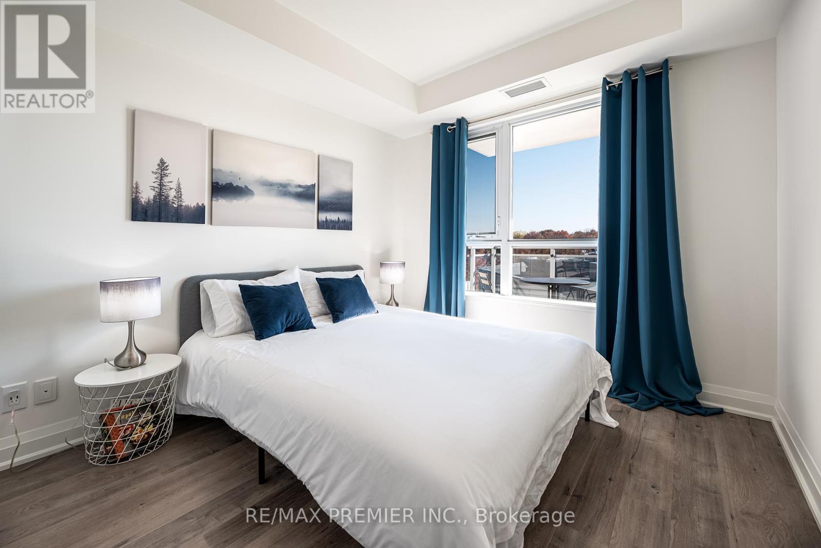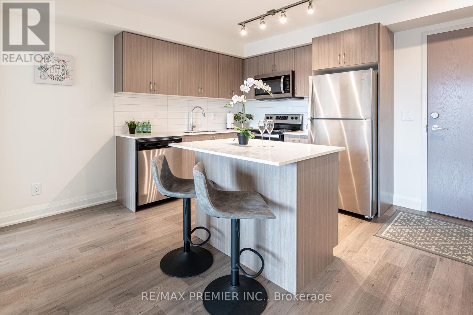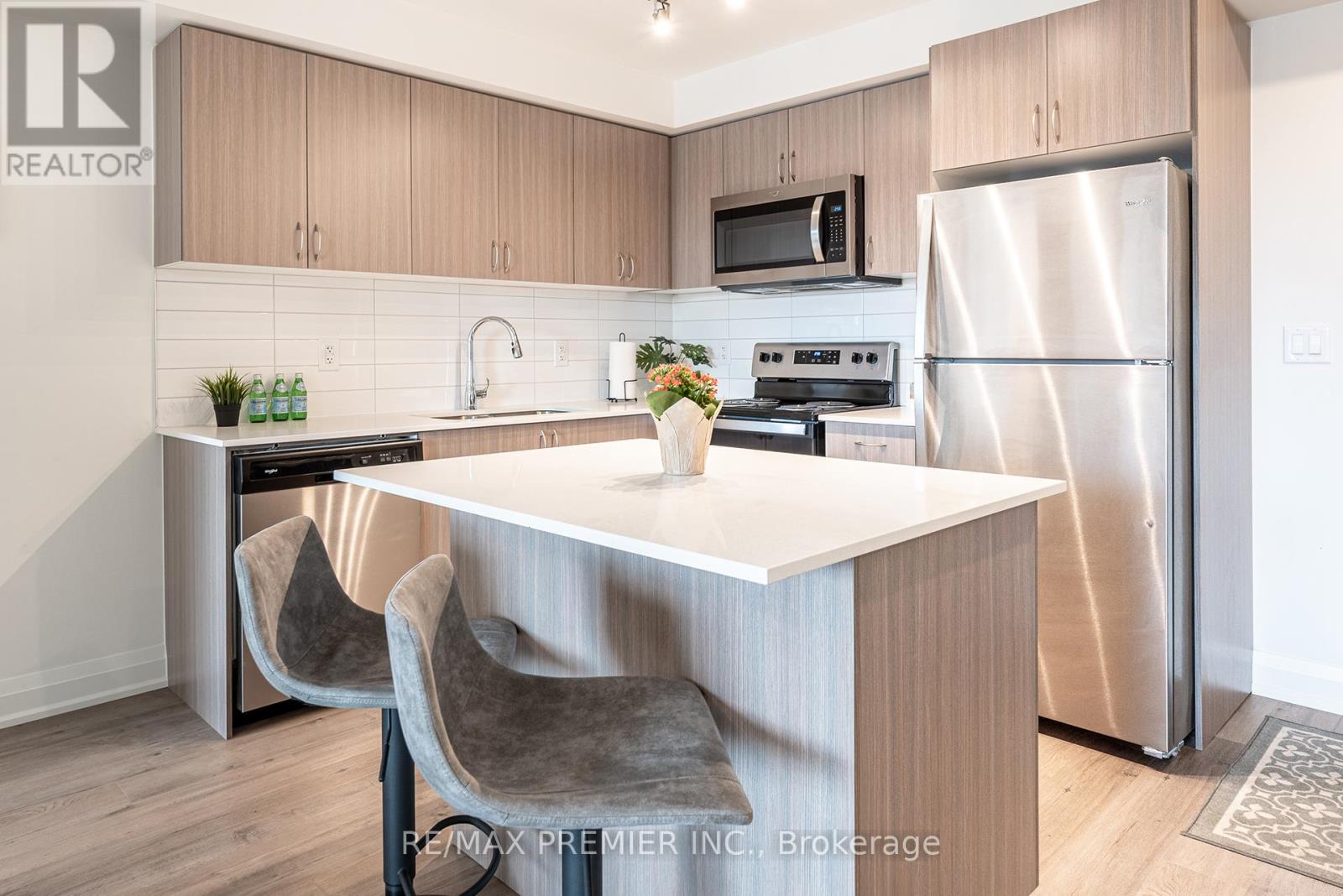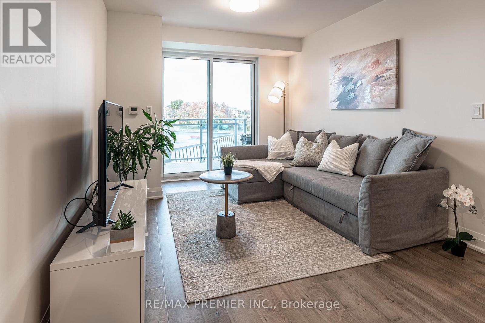 Welcome to this bright and spacious 2-bedroom condo at 58 Lakeside Terrace in Barrie. This well-designed 830 sf unit features a functional split-bedroom layout, providing excellent separation and privacy, ideal for comfortable everyday living. The open-concept living and dining area offers ample space to relax or entertain, while large windows fill the unit with natural light, creating a warm and inviting atmosphere. The modern kitchen with breakfast-bar island seamlessly connects to the main living space, enhancing flow and functionality. Step out onto your private balcony and take in beautiful views of Little Lake, the perfect setting to unwind. Both bedrooms are generously sized, making this home suitable for couples, small families, or those needing a home-office. Complete with 1 locker and 1 underground parking spot conveniently situated close to the elevator. Located in a growing community close to transit, shopping, parks, and Barrie's waterfront, this is a fantastic opportunity to own a stylish and comfortable condo. (id:4555)