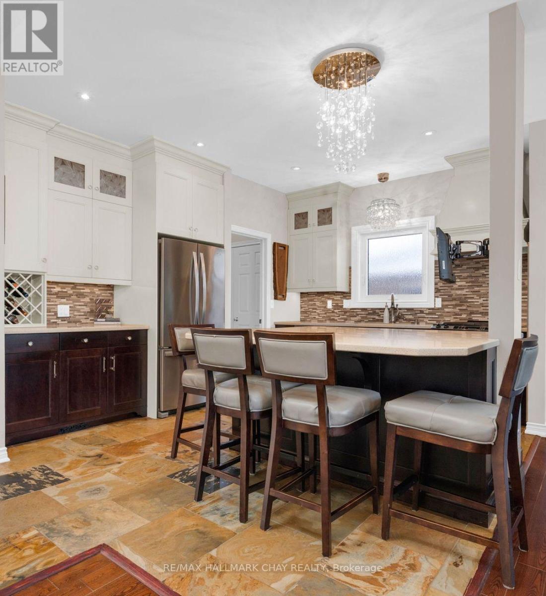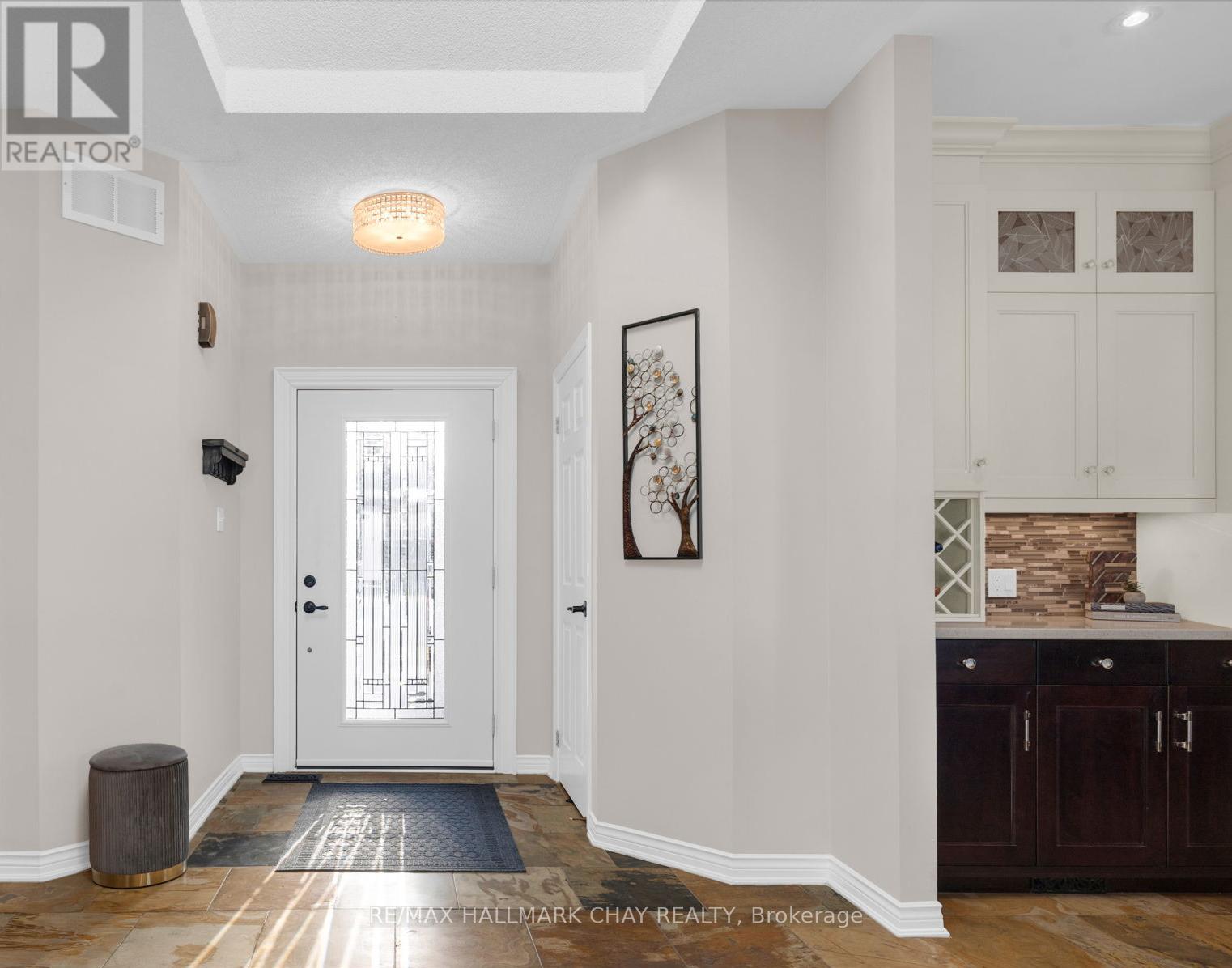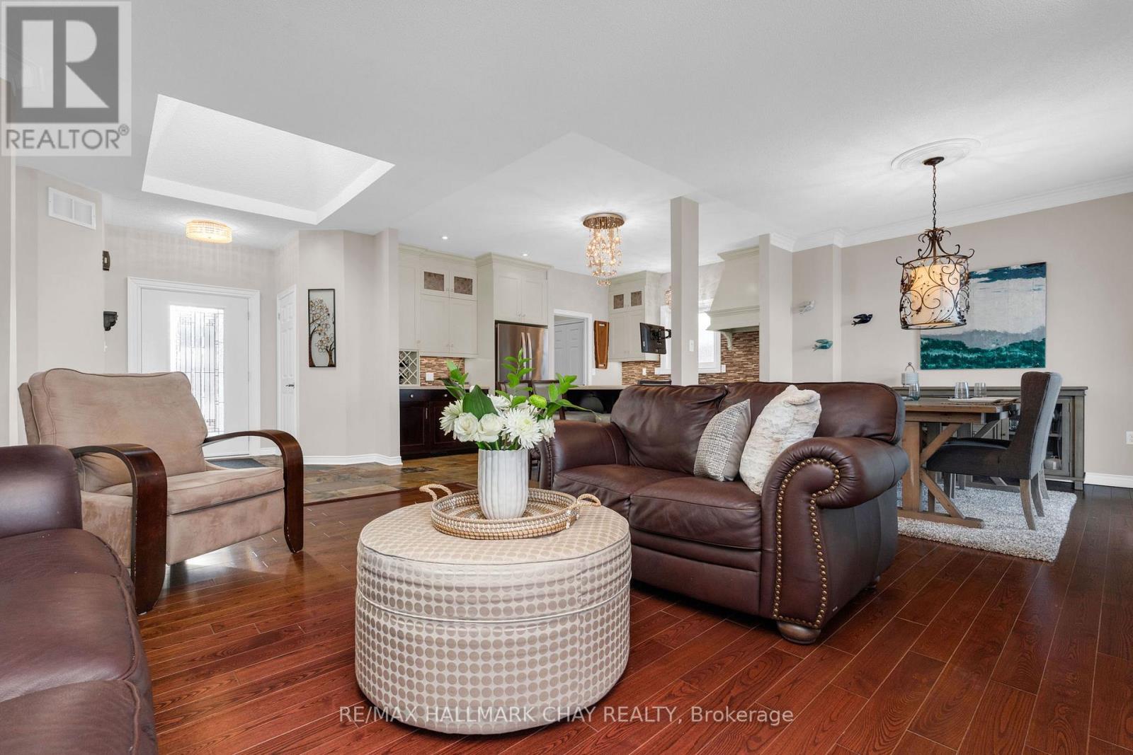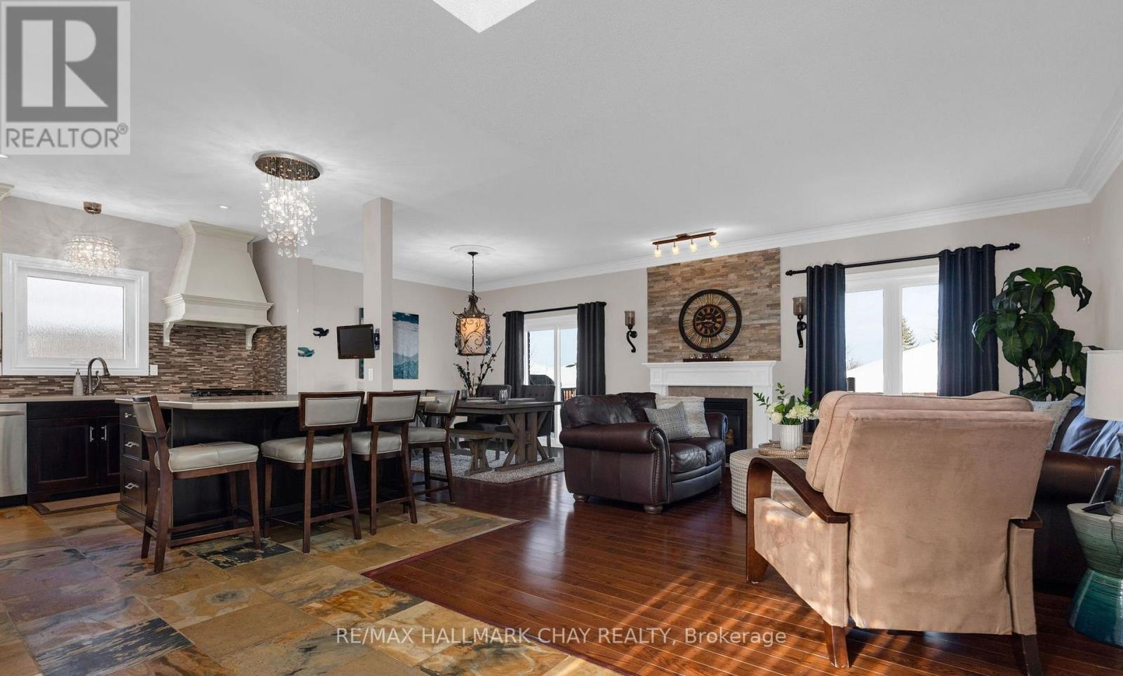 PRESENTING 37 Brookfield Crescent - a one of kind customized all brick detached bungalow in Barrie's sought-after family-centric Kingswood neighbourhood. This ~2,700 sq.ft. immaculately maintained open concept home has been updated with tasteful, modern design elements - professionally finished top to bottom for maximum functional living space. From the moment you enter this home, along the custom stonework pathway to the front door entrance with glass insert detail, you are welcomed by natural light flowing from foyer's custom, oversized skylight. The open floor plan of the main level is ideal for spending valued time with family, and perfect for hosting and entertaining. Spectacular custom kitchen with oversized granite island for prepping/serving. Formal dining room where memories are made around the table at festive meals. Seamless flow takes you into the living room with feature wall gas-burning fireplace, 9' ceilings, crown moulding - with walk out to the raised back deck and lower patio seating areas in the fully fenced rear yard. Private living space of this home includes primary suite with w/i closet, exceptional ensuite with glass-walled shower. Main 4pc bath, second bedroom (nursery, home office, study zone, etc) complete this private living zone. Full, finished lower level (~1300 sq.ft.) includes a multi-purpose rec room with feature wall fireplace, an additional 2 bedrooms, another full bath. Double garage with single garage door, as well as parking for four vehicles in the private paved driveway. Original owners customized the builder's plan to create this gem, situated in a quiet neighbourhood that offers a great community vibe. Walking distance to Algonquin Ridge Elementary School and Lake Simcoe's waterfront. Incredible hiking trails, plenty of dedicated green space to enjoy in all seasons. Close to all key amenities - shopping, services - and commuter routes - public transit, GO Train/Bus service, highways. Welcome to this truly move-in ready gem! (id:4555)