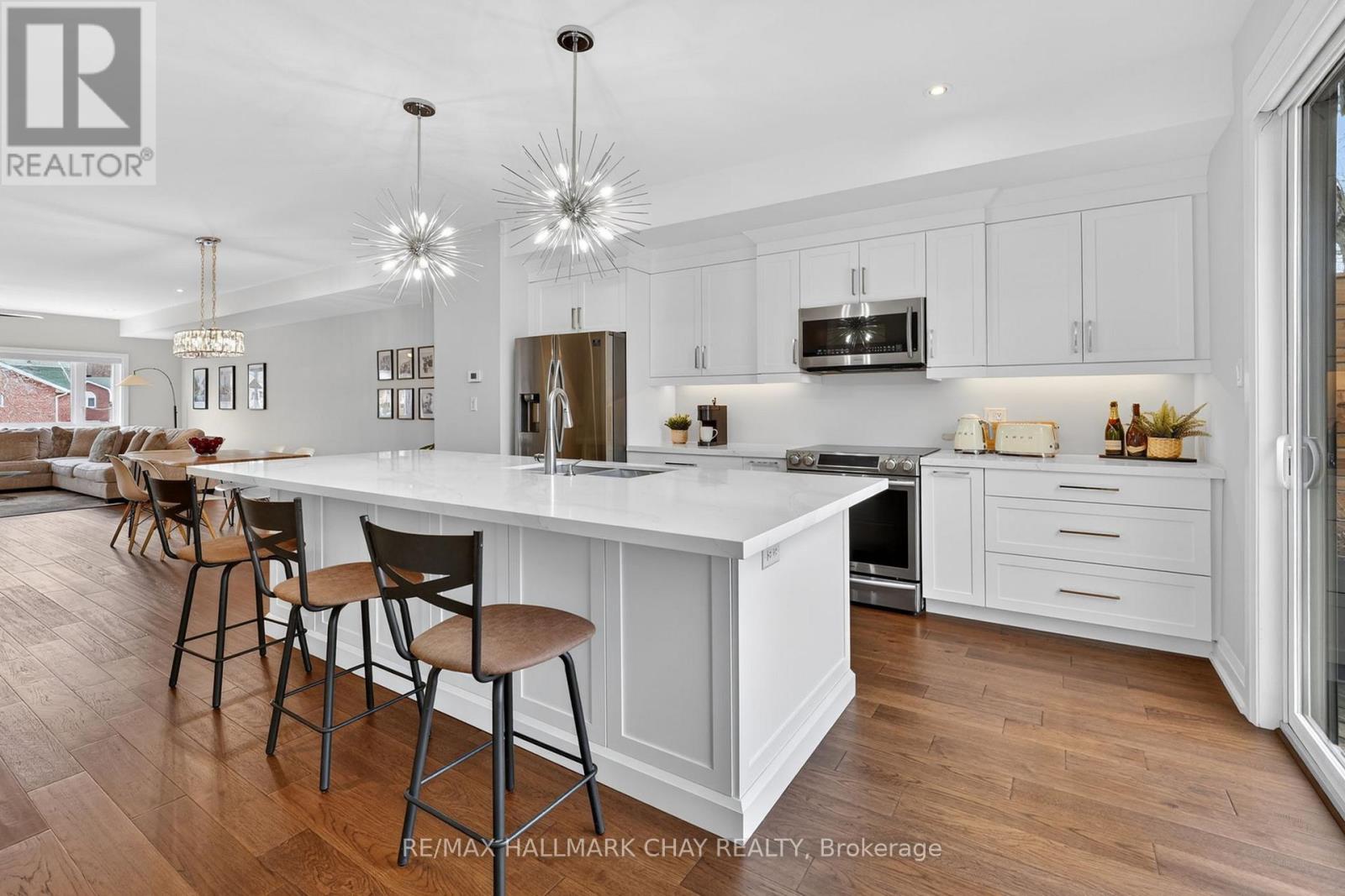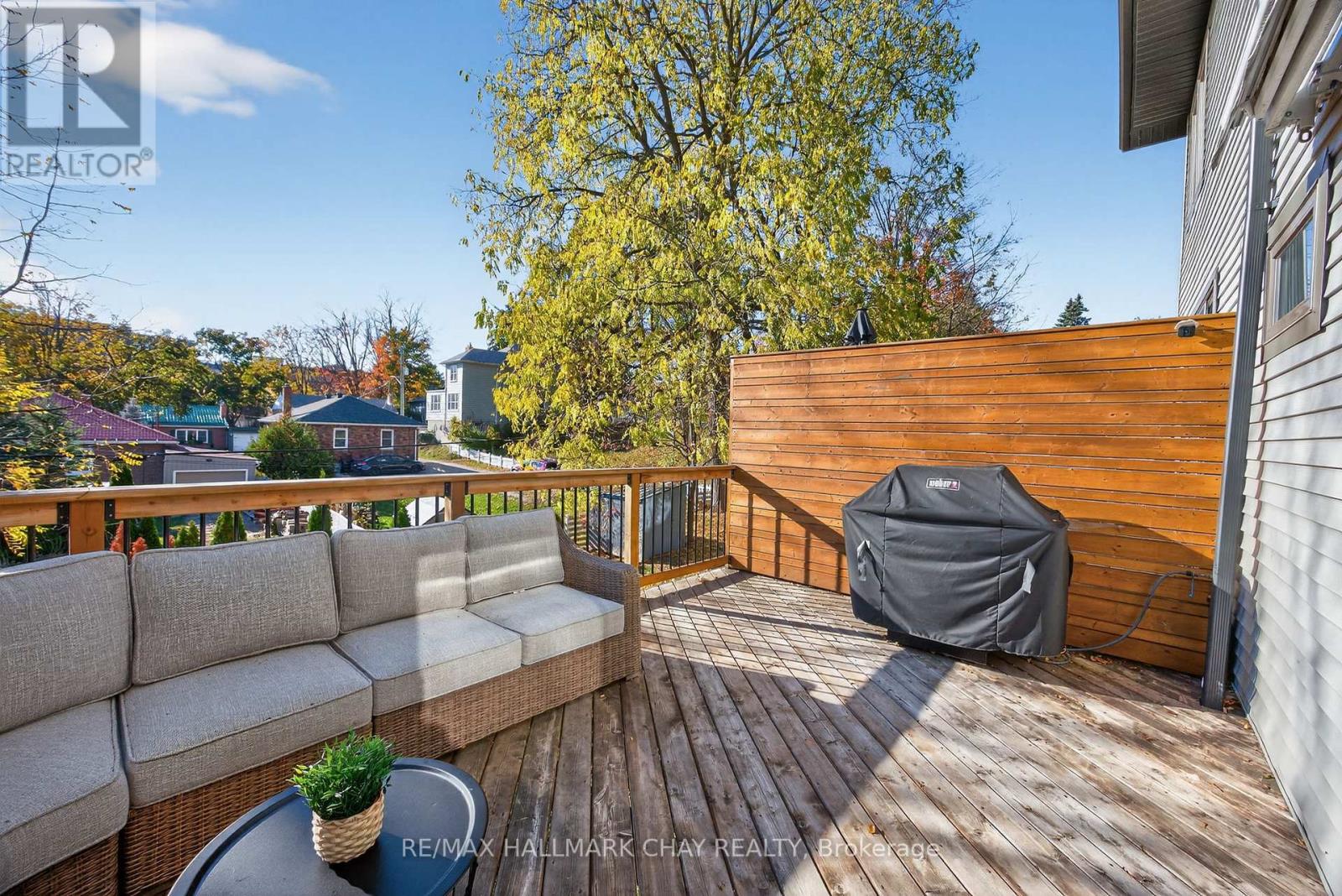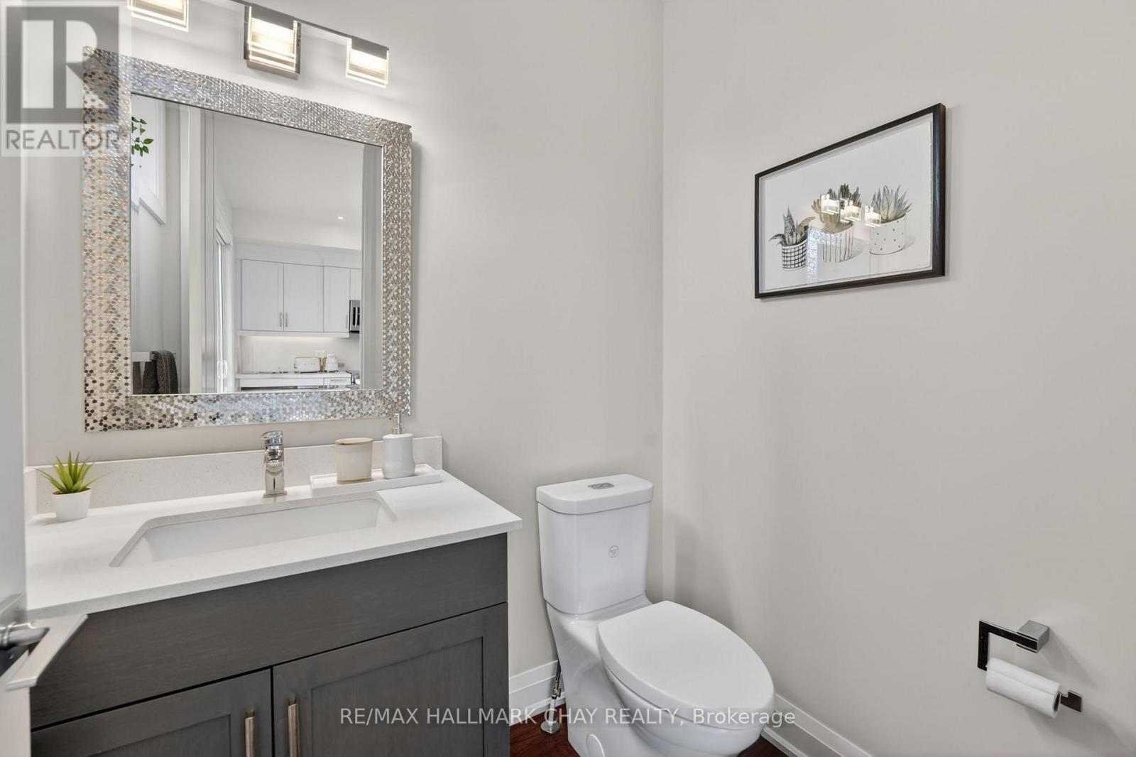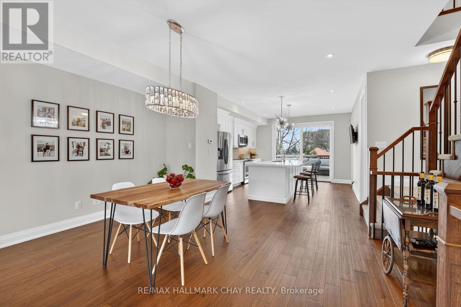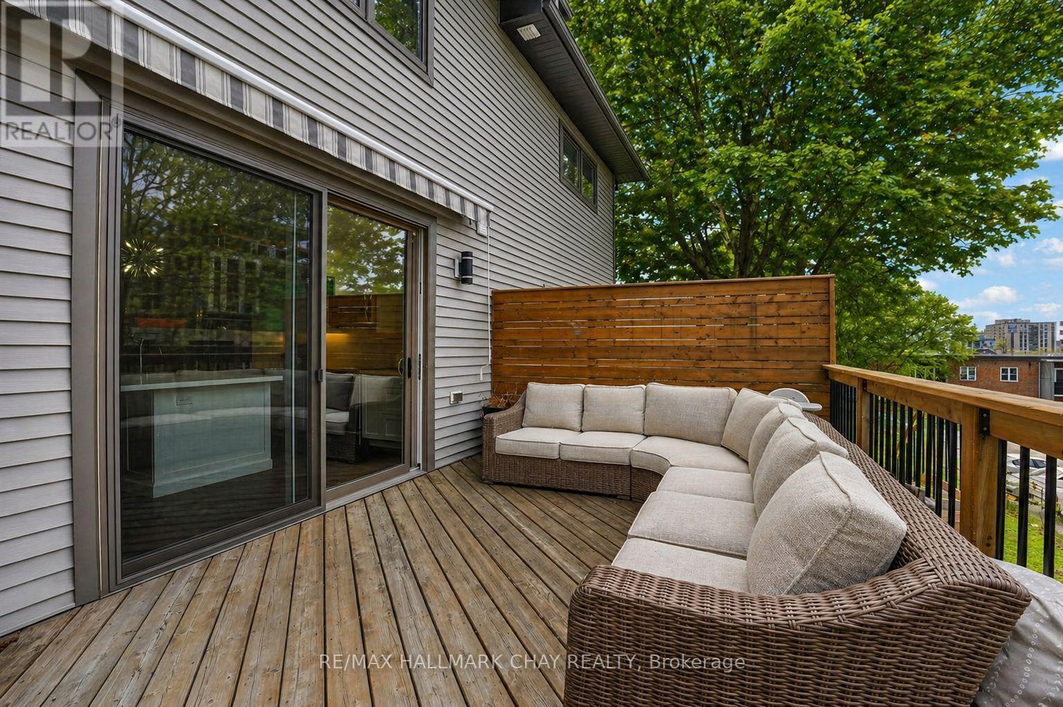 Distinguished Freehold Townhome From Acclaimed Builder Daycor. Built in 2019, This Executive Residence Showcases Approximately 2,400+ Sq. Ft. Above Grade With Countless Premium Upgrades. Just A Short Walk To Barrie's Vibrant Downtown & Waterfront. Thoughtfully Designed Across Three Finished Levels, This Home Blends Modern Sophistication With Exceptional Functionality. The Open-Concept Main Level Is Defined By 9-Ft Ceilings, Rich Hardwood Flooring, Oversized Windows, Pot Lights, & Designer Lighting Throughout. At The Heart Of The Home, The Chef-Inspired Kitchen Features White Shaker Cabinetry w/Soft-Close Doors & Drawers, Quartz Countertops, A Stunning 10-Ft Custom Quartz Island, Walk-In Pantry, Double Sink & Premium Stainless Steel Appliance Package. Seamlessly Connected Living & Dining Spaces Make Entertaining Effortless, While Oversized 8-Ft Sliding Doors Lead To A Spacious Deck Overlooking The Treed Rear Yard. Upstairs, The Home Continues To Impress With Three Generously Sized Bedrooms, Including A Serene Primary Retreat, Alongside Well-Appointed Bathrooms On Every Level, Each Finished With Quartz Countertops & Upgraded Fixtures. Hardwood Flooring Continues Throughout, Complemented By Upgraded Broadloom & Underpad On Staircases For Added Comfort. The Finished Walkout Lower Level Offers A Bright & Inviting Extension Of Living Space, Complete With A Floor-To-Ceiling Napoleon Gas Fireplace With Tile Surround, A Custom Wet Bar w/Quartz Counters, Bar Fridge & An 8-Ft Sliding Door Walkout To A Second Large Deck With Motorized Blinds. A Stylish 3-Piece Bathroom w/Glass Shower, Inside Garage Entry & Abundant Storage Including Multiple Closets Enhance This Level's Versatility. Additional Features Include 9-Ft Ceilings On Main & Second Levels, Upgraded 6.5-Inch Trim, Automatic Blinds, Ceiling Fans & Custom Finishes Throughout. Dual Walkout Decks, Designer-Level Upgrades, And An Unbeatable Location Near Waterfront. Truly A Rare Home Where Luxury Meets Lifestyle. (id:4555)