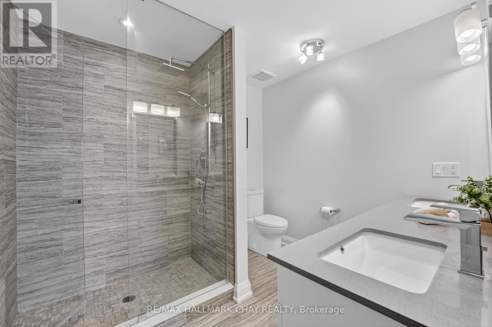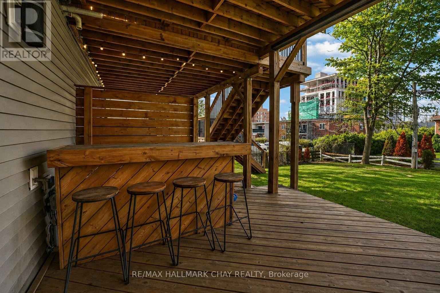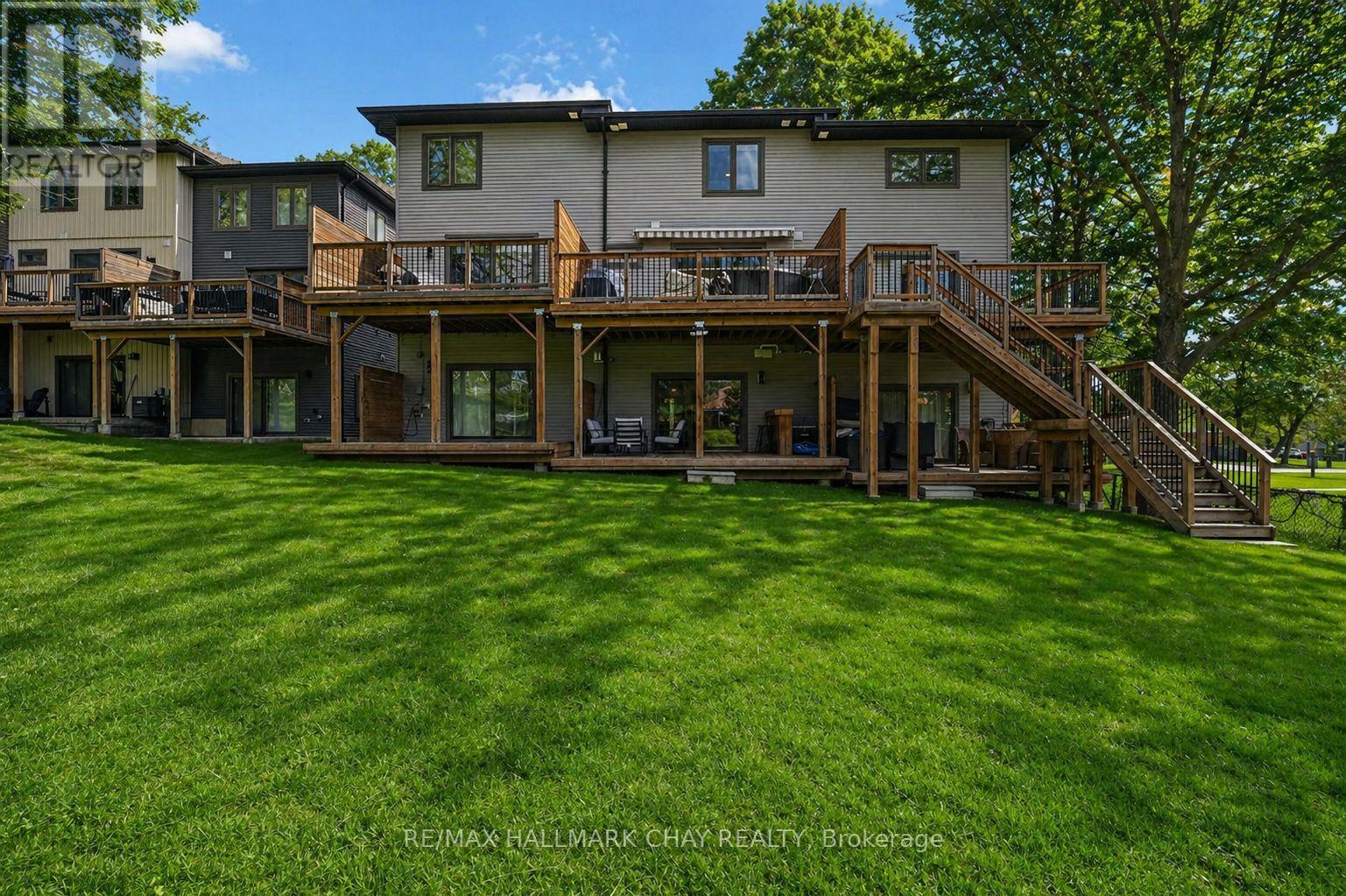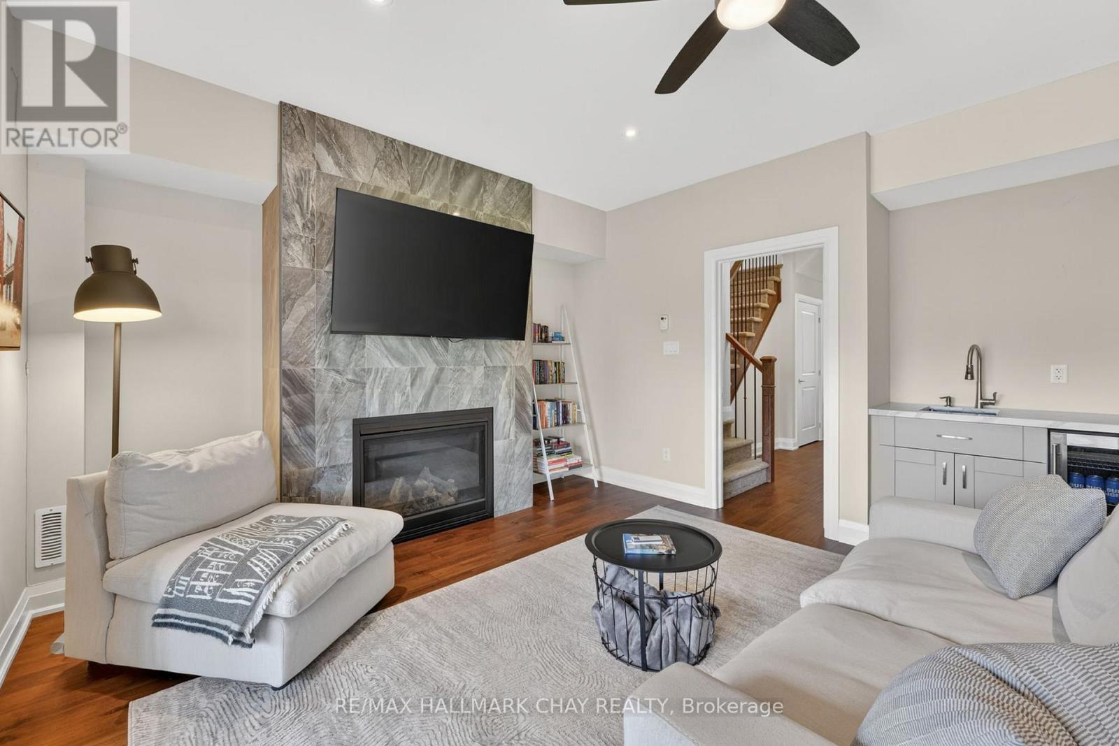 Distinguished Freehold Townhome From Acclaimed Builder Daycor. Built in 2019, This Executive Residence Showcases Approximately 2,400+ Sq. Ft. Above Grade With Countless Premium Upgrades. Just A Short Walk To Barrie's Vibrant Downtown & Waterfront. Thoughtfully Designed Across Three Finished Levels, This Home Blends Modern Sophistication With Exceptional Functionality. The Open-Concept Main Level Is Defined By 9-Ft Ceilings, Rich Hardwood Flooring, Oversized Windows, Pot Lights, & Designer Lighting Throughout. At The Heart Of The Home, The Chef-Inspired Kitchen Features White Shaker Cabinetry w/Soft-Close Doors & Drawers, Quartz Countertops, A Stunning 10-Ft Custom Quartz Island, Walk-In Pantry, Double Sink & Premium Stainless Steel Appliance Package. Seamlessly Connected Living & Dining Spaces Make Entertaining Effortless, While Oversized 8-Ft Sliding Doors Lead To A Spacious Deck Overlooking The Treed Rear Yard. Upstairs, The Home Continues To Impress With Three Generously Sized Bedrooms, Including A Serene Primary Retreat, Alongside Well-Appointed Bathrooms On Every Level, Each Finished With Quartz Countertops & Upgraded Fixtures. Hardwood Flooring Continues Throughout, Complemented By Upgraded Broadloom & Underpad On Staircases For Added Comfort. The Finished Walkout Lower Level Offers A Bright & Inviting Extension Of Living Space, Complete With A Floor-To-Ceiling Napoleon Gas Fireplace With Tile Surround, A Custom Wet Bar w/Quartz Counters, Bar Fridge & An 8-Ft Sliding Door Walkout To A Second Large Deck With Motorized Blinds. A Stylish 3-Piece Bathroom w/Glass Shower, Inside Garage Entry & Abundant Storage Including Multiple Closets Enhance This Level's Versatility. Additional Features Include 9-Ft Ceilings On Main & Second Levels, Upgraded 6.5-Inch Trim, Automatic Blinds, Ceiling Fans & Custom Finishes Throughout. Dual Walkout Decks, Designer-Level Upgrades, And An Unbeatable Location Near Waterfront. Truly A Rare Home Where Luxury Meets Lifestyle. (id:4555)