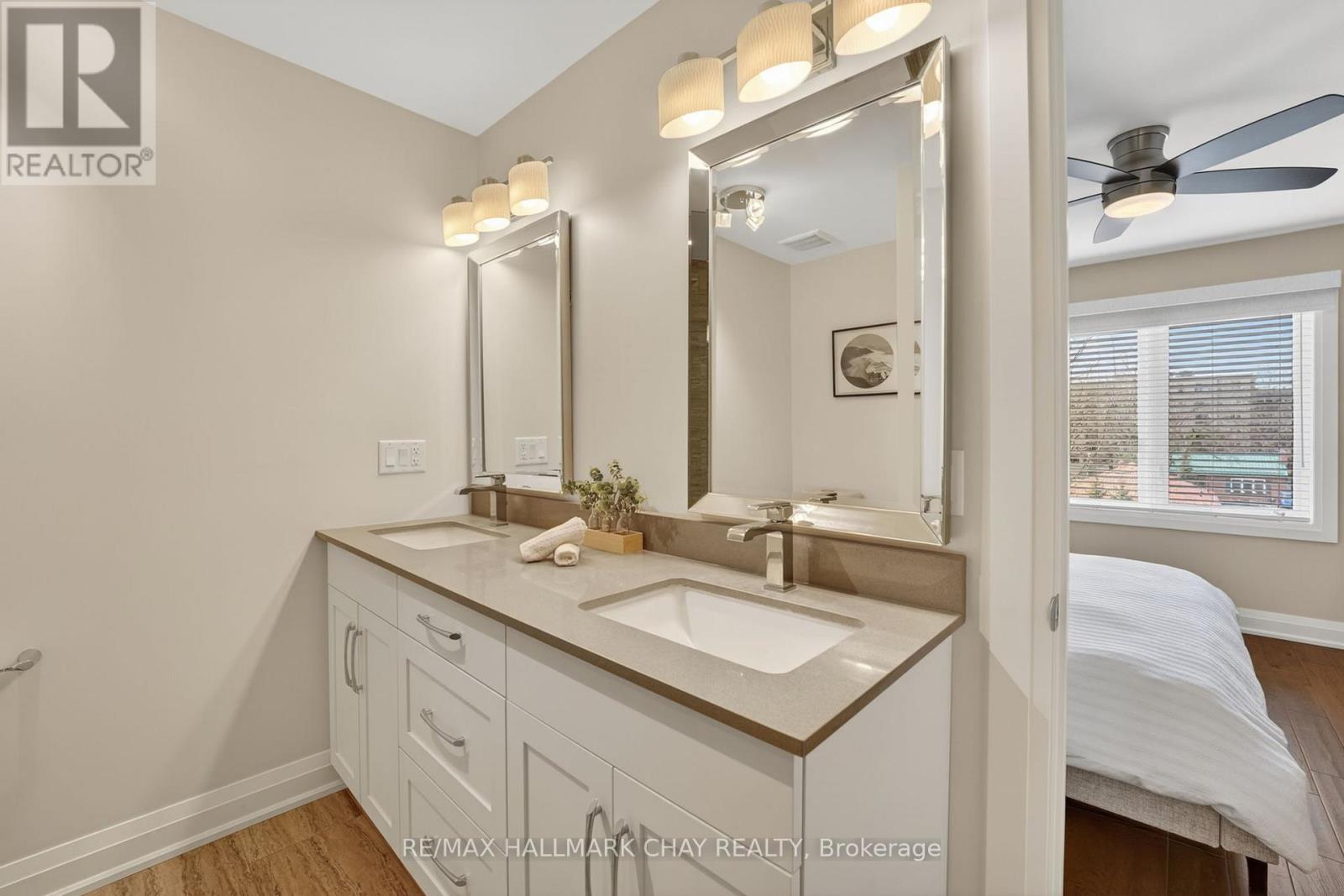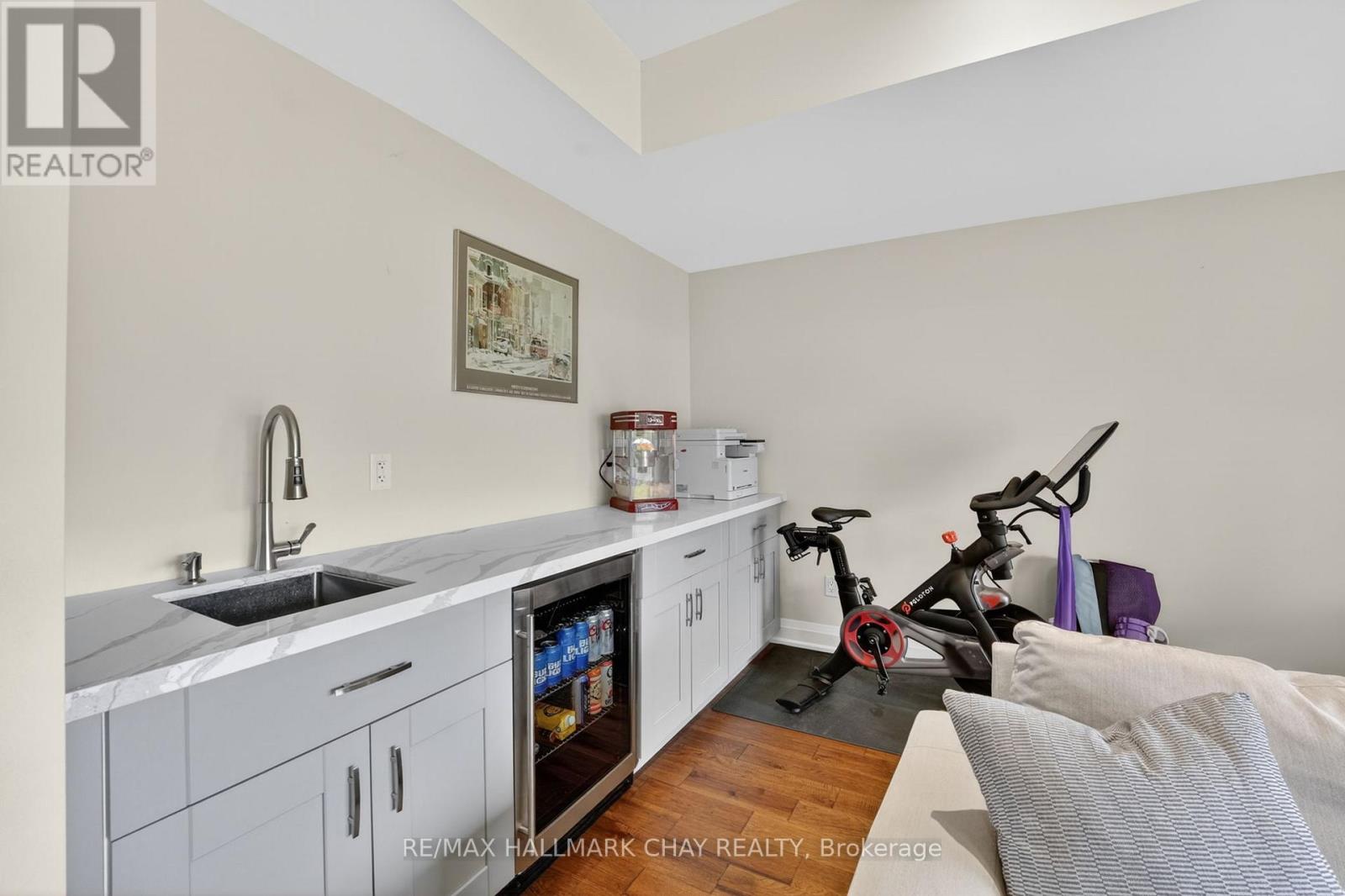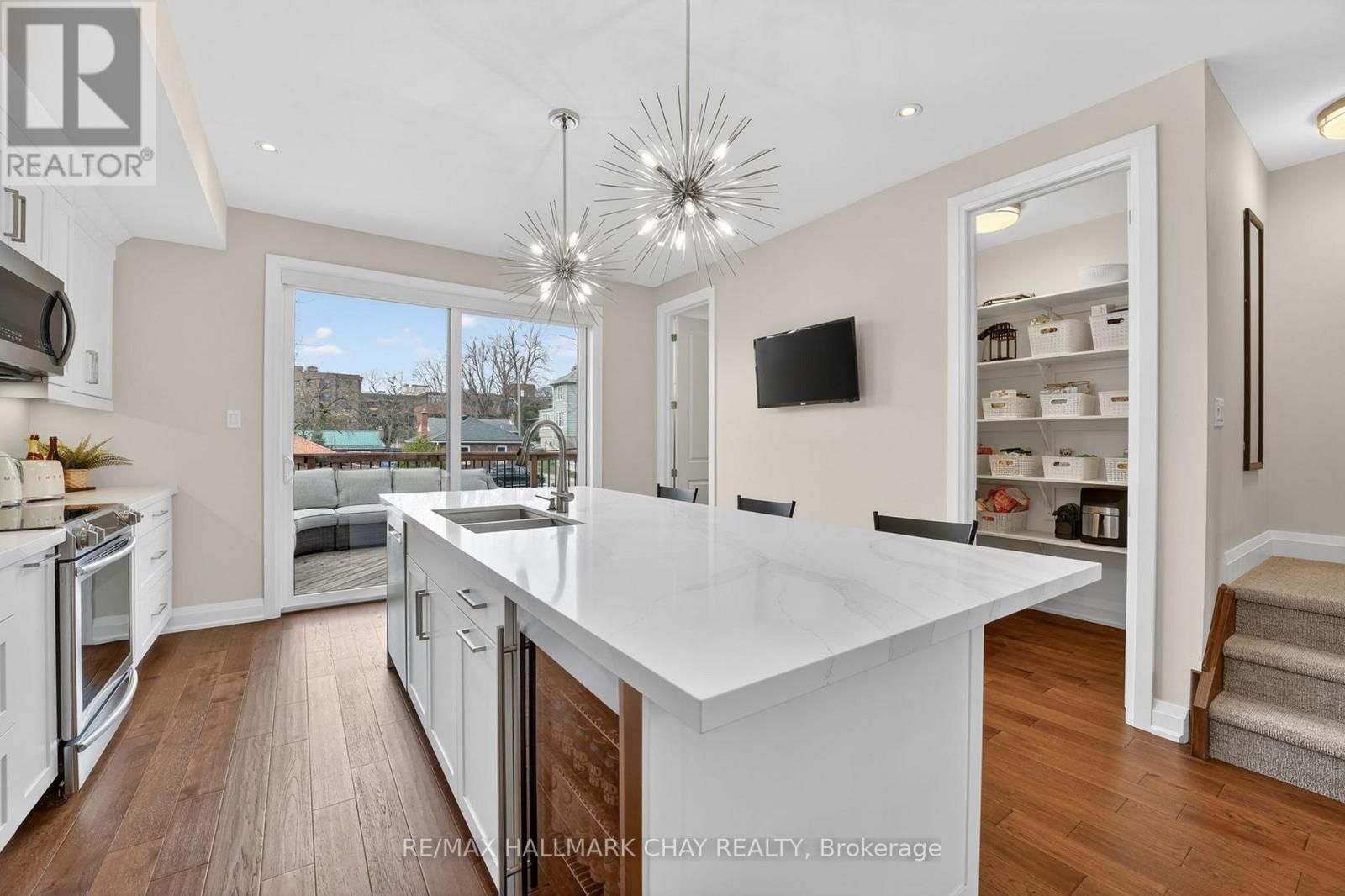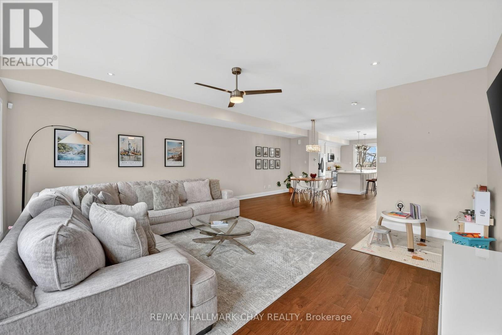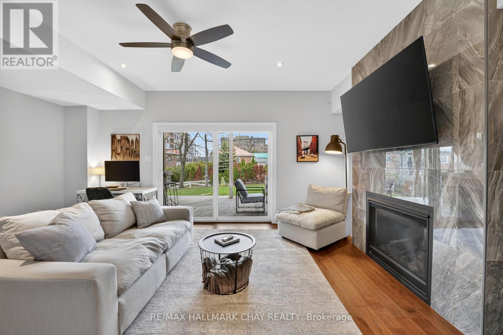 Distinguished Freehold Townhome From Acclaimed Builder Daycor. Built in 2019, This Executive Residence Showcases Approximately 2,400+ Sq. Ft. Above Grade With Countless Premium Upgrades. Just A Short Walk To Barrie's Vibrant Downtown & Waterfront. Thoughtfully Designed Across Three Finished Levels, This Home Blends Modern Sophistication With Exceptional Functionality. The Open-Concept Main Level Is Defined By 9-Ft Ceilings, Rich Hardwood Flooring, Oversized Windows, Pot Lights, & Designer Lighting Throughout. At The Heart Of The Home, The Chef-Inspired Kitchen Features White Shaker Cabinetry w/Soft-Close Doors & Drawers, Quartz Countertops, A Stunning 10-Ft Custom Quartz Island, Walk-In Pantry, Double Sink & Premium Stainless Steel Appliance Package. Seamlessly Connected Living & Dining Spaces Make Entertaining Effortless, While Oversized 8-Ft Sliding Doors Lead To A Spacious Deck Overlooking The Treed Rear Yard. Upstairs, The Home Continues To Impress With Three Generously Sized Bedrooms, Including A Serene Primary Retreat, Alongside Well-Appointed Bathrooms On Every Level, Each Finished With Quartz Countertops & Upgraded Fixtures. Hardwood Flooring Continues Throughout, Complemented By Upgraded Broadloom & Underpad On Staircases For Added Comfort. The Finished Walkout Lower Level Offers A Bright & Inviting Extension Of Living Space, Complete With A Floor-To-Ceiling Napoleon Gas Fireplace With Tile Surround, A Custom Wet Bar w/Quartz Counters, Bar Fridge & An 8-Ft Sliding Door Walkout To A Second Large Deck With Motorized Blinds. A Stylish 3-Piece Bathroom w/Glass Shower, Inside Garage Entry & Abundant Storage Including Multiple Closets Enhance This Level's Versatility. Additional Features Include 9-Ft Ceilings On Main & Second Levels, Upgraded 6.5-Inch Trim, Automatic Blinds, Ceiling Fans & Custom Finishes Throughout. Dual Walkout Decks, Designer-Level Upgrades, And An Unbeatable Location Near Waterfront. Truly A Rare Home Where Luxury Meets Lifestyle. (id:4555)