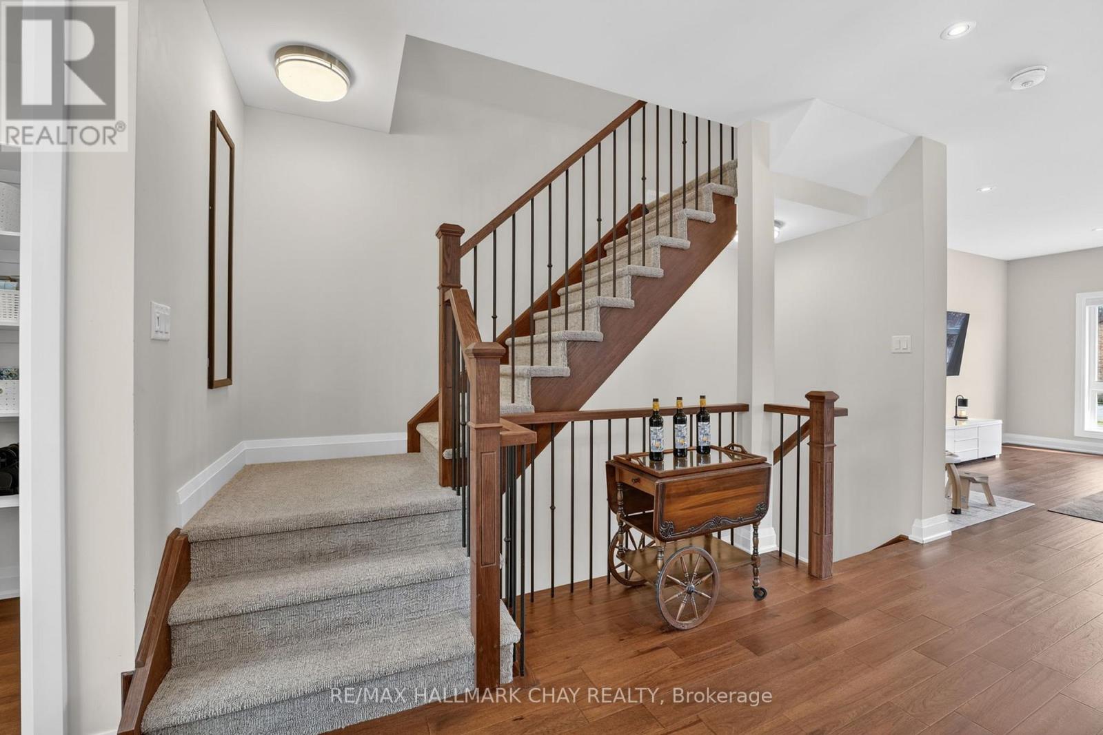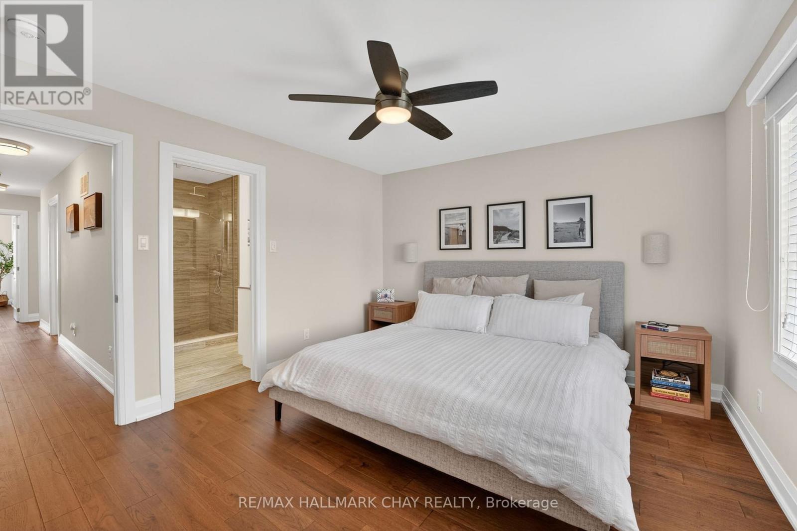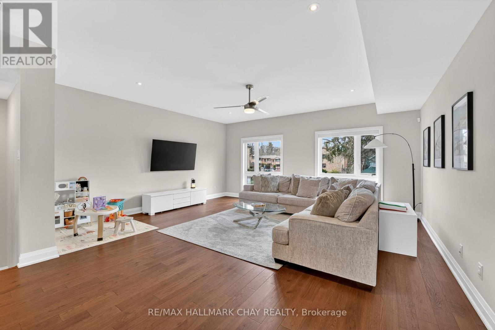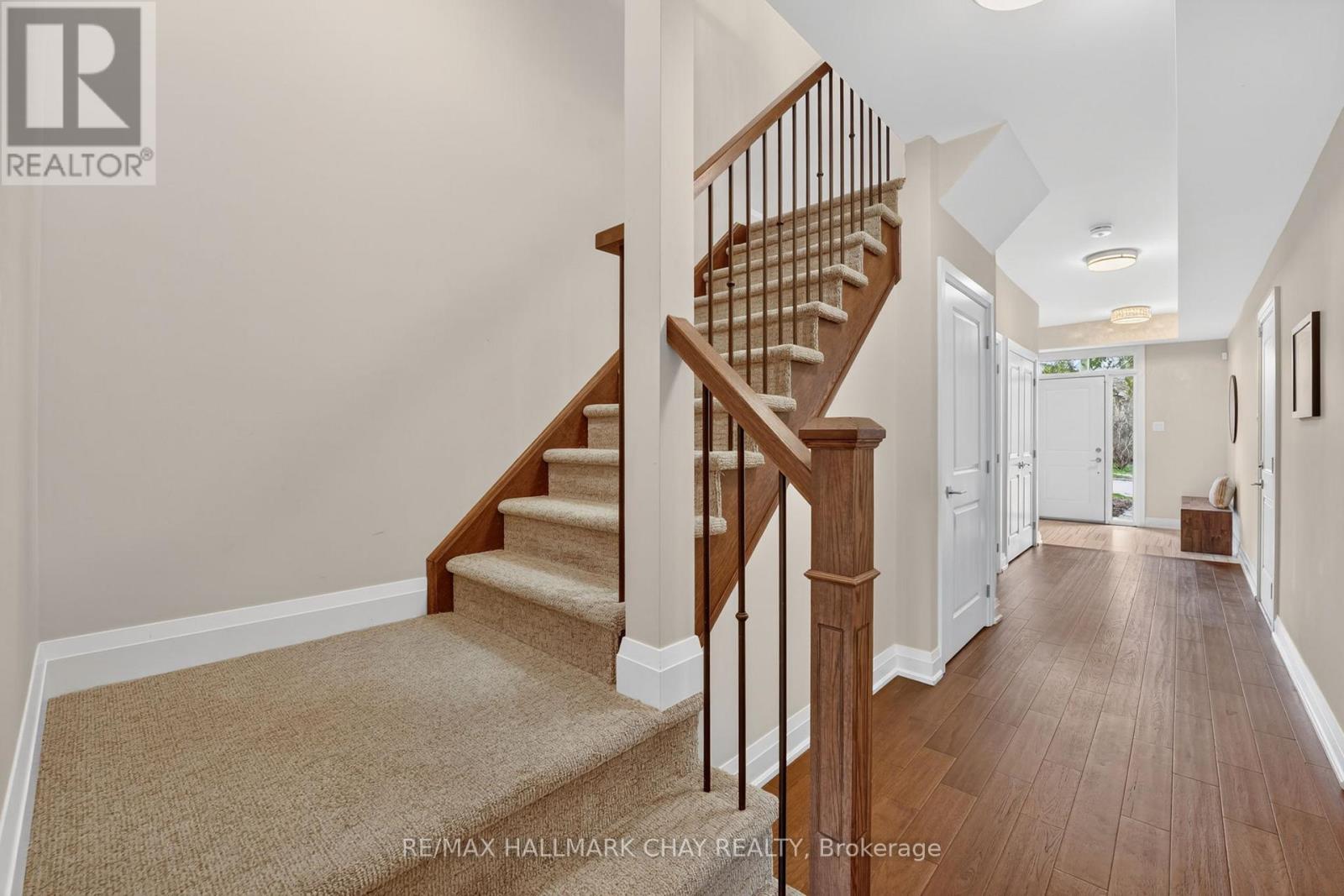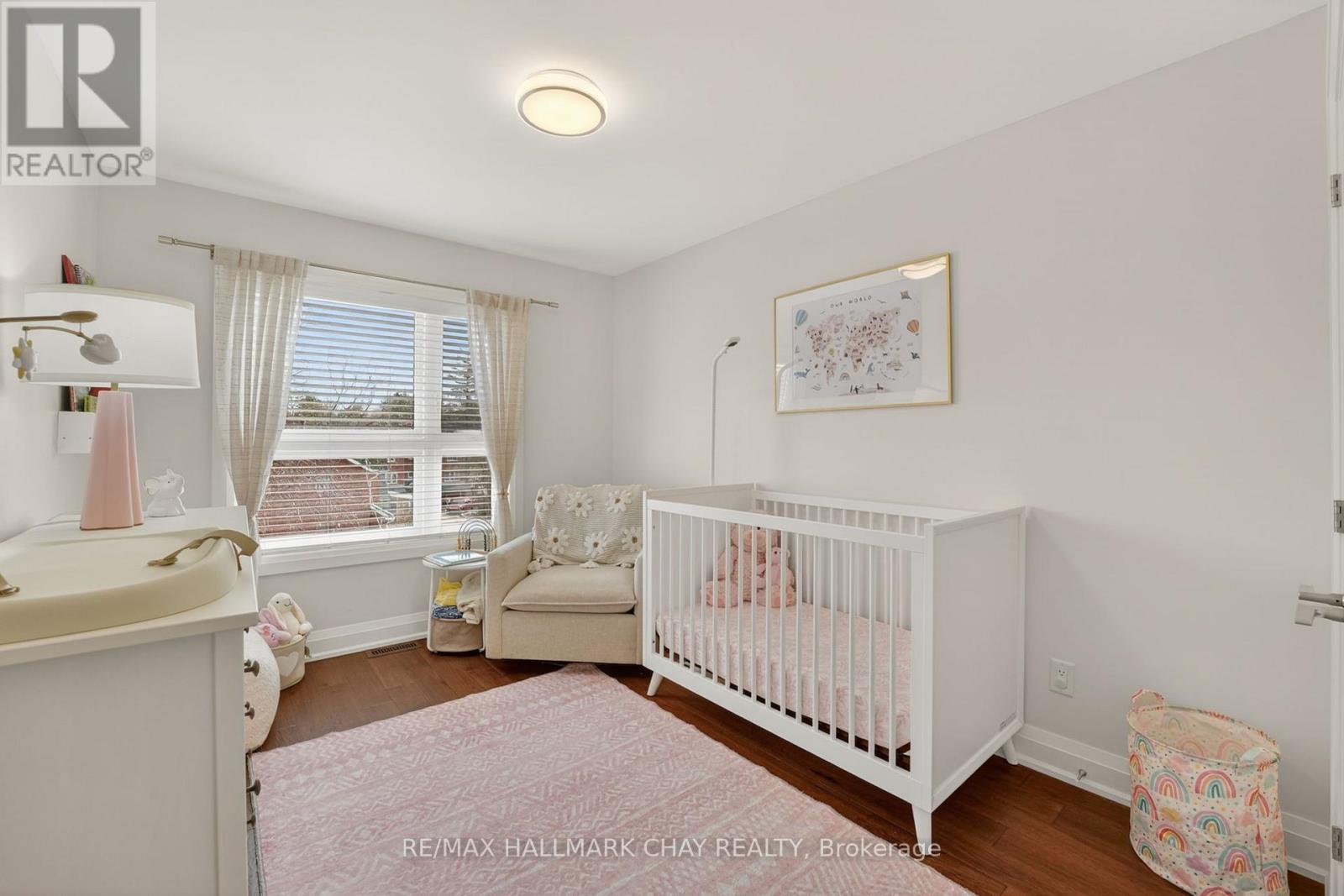 Distinguished Freehold Townhome From Acclaimed Builder Daycor. Built in 2019, This Executive Residence Showcases Approximately 2,400+ Sq. Ft. Above Grade With Countless Premium Upgrades. Just A Short Walk To Barrie's Vibrant Downtown & Waterfront. Thoughtfully Designed Across Three Finished Levels, This Home Blends Modern Sophistication With Exceptional Functionality. The Open-Concept Main Level Is Defined By 9-Ft Ceilings, Rich Hardwood Flooring, Oversized Windows, Pot Lights, & Designer Lighting Throughout. At The Heart Of The Home, The Chef-Inspired Kitchen Features White Shaker Cabinetry w/Soft-Close Doors & Drawers, Quartz Countertops, A Stunning 10-Ft Custom Quartz Island, Walk-In Pantry, Double Sink & Premium Stainless Steel Appliance Package. Seamlessly Connected Living & Dining Spaces Make Entertaining Effortless, While Oversized 8-Ft Sliding Doors Lead To A Spacious Deck Overlooking The Treed Rear Yard. Upstairs, The Home Continues To Impress With Three Generously Sized Bedrooms, Including A Serene Primary Retreat, Alongside Well-Appointed Bathrooms On Every Level, Each Finished With Quartz Countertops & Upgraded Fixtures. Hardwood Flooring Continues Throughout, Complemented By Upgraded Broadloom & Underpad On Staircases For Added Comfort. The Finished Walkout Lower Level Offers A Bright & Inviting Extension Of Living Space, Complete With A Floor-To-Ceiling Napoleon Gas Fireplace With Tile Surround, A Custom Wet Bar w/Quartz Counters, Bar Fridge & An 8-Ft Sliding Door Walkout To A Second Large Deck With Motorized Blinds. A Stylish 3-Piece Bathroom w/Glass Shower, Inside Garage Entry & Abundant Storage Including Multiple Closets Enhance This Level's Versatility. Additional Features Include 9-Ft Ceilings On Main & Second Levels, Upgraded 6.5-Inch Trim, Automatic Blinds, Ceiling Fans & Custom Finishes Throughout. Dual Walkout Decks, Designer-Level Upgrades, And An Unbeatable Location Near Waterfront. Truly A Rare Home Where Luxury Meets Lifestyle. (id:4555)