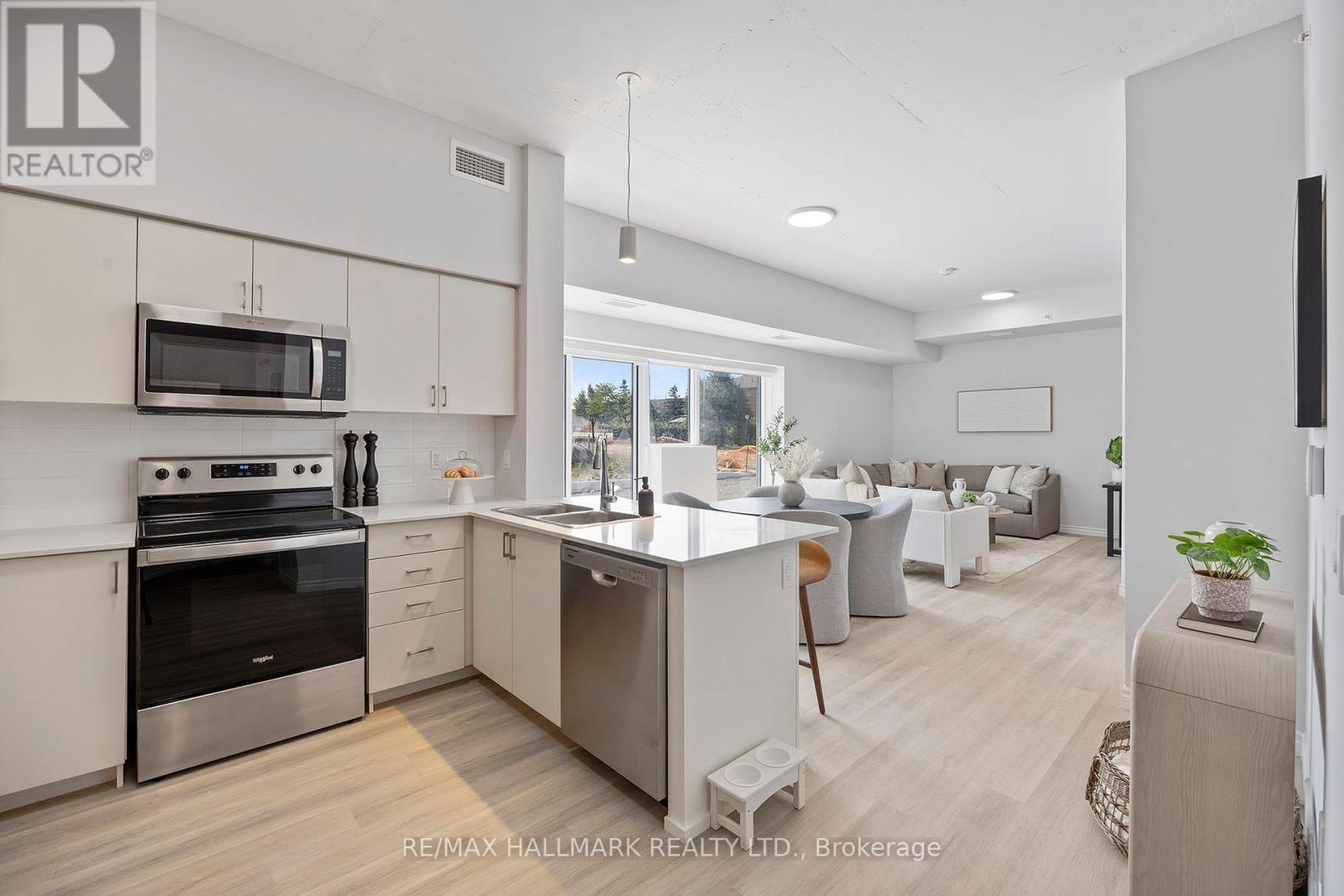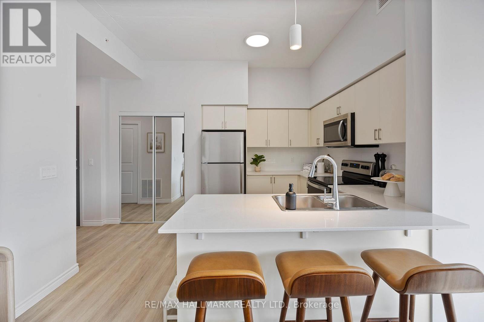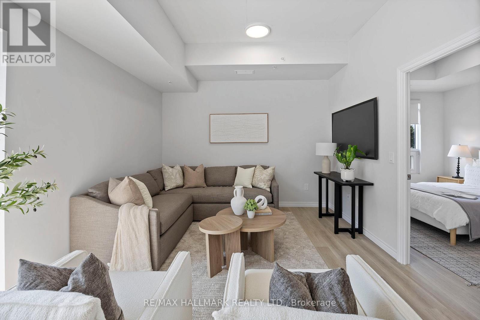 Welcome to The Deanwood in sought-after South Barrie! This bright and spacious 1+Den, 1-bath suite offers approximately 934 sq ft plus a private balcony, providing a perfect blend of comfort and functionality. The open-concept layout features a modern kitchen with sleek finishes and ample cabinetry, flowing into a generous living and dining area with large windows that fill the space with natural light. The versatile den is ideal for a home office or guest area, while the well-sized bedroom offers excellent closet space. Enjoy contemporary design throughout and the added bonus of your own outdoor balcony. Situated in Barrie's desirable Painswick community, this location offers a fantastic lifestyle with easy access to everyday conveniences. Just minutes from the scenic waterfront of Lake Simcoe, parks, walking trails, and beaches, it's perfect for those who enjoy the outdoors. Commuters will appreciate quick access to Highway 400 and GO Transit, while nearby shopping, restaurants, schools, and community amenities make daily living effortless. A great opportunity to live in a modern, professionally managed building in a quiet, family-friendly neighbourhood. (id:4555)
