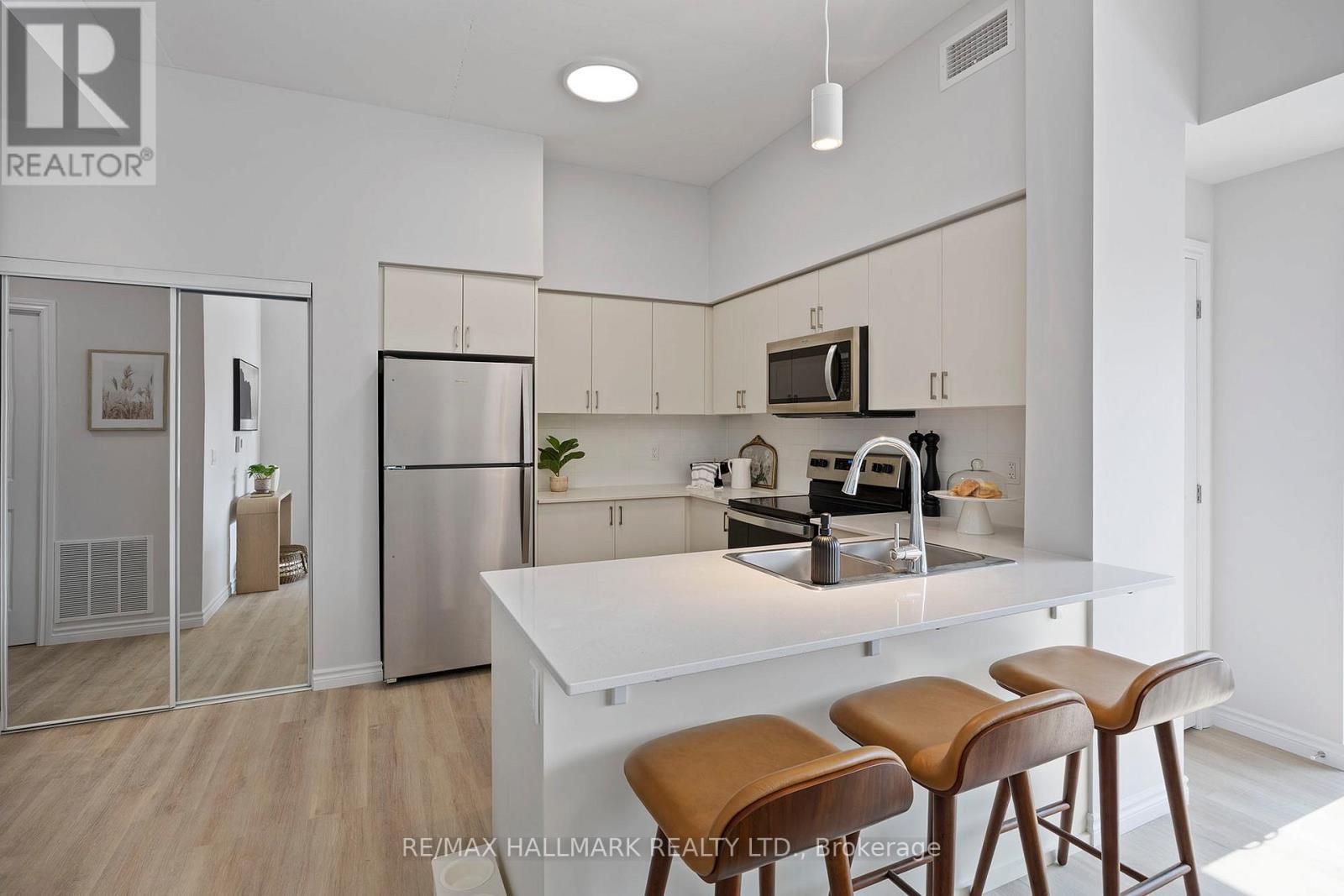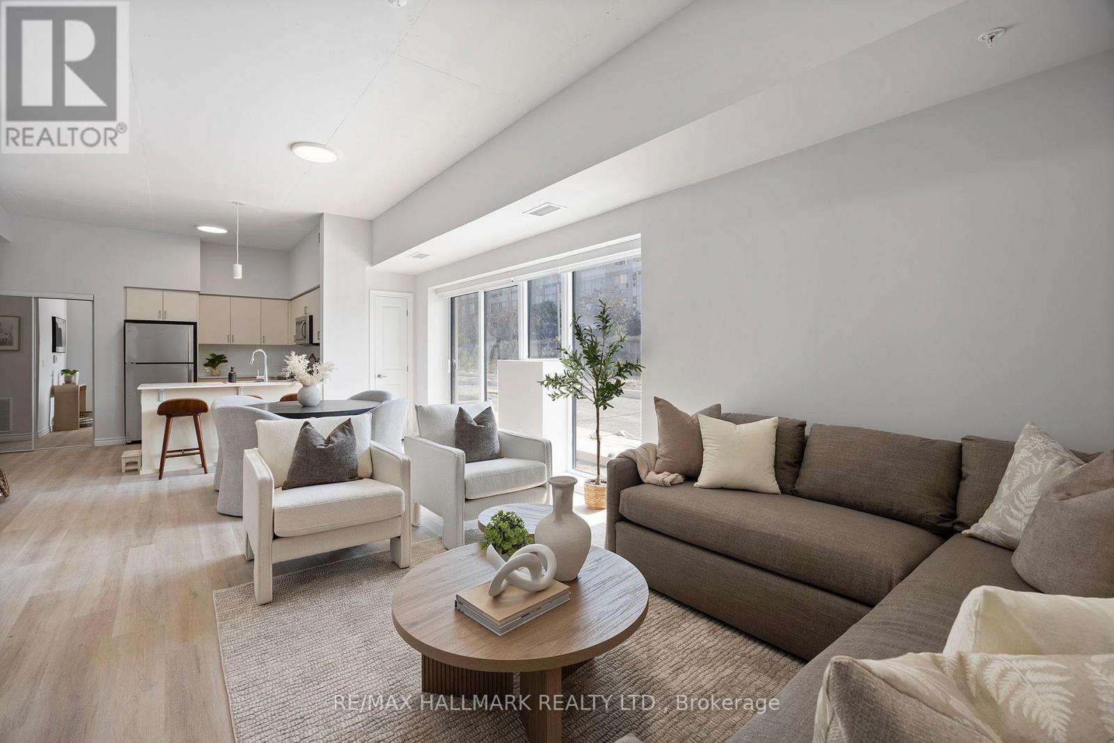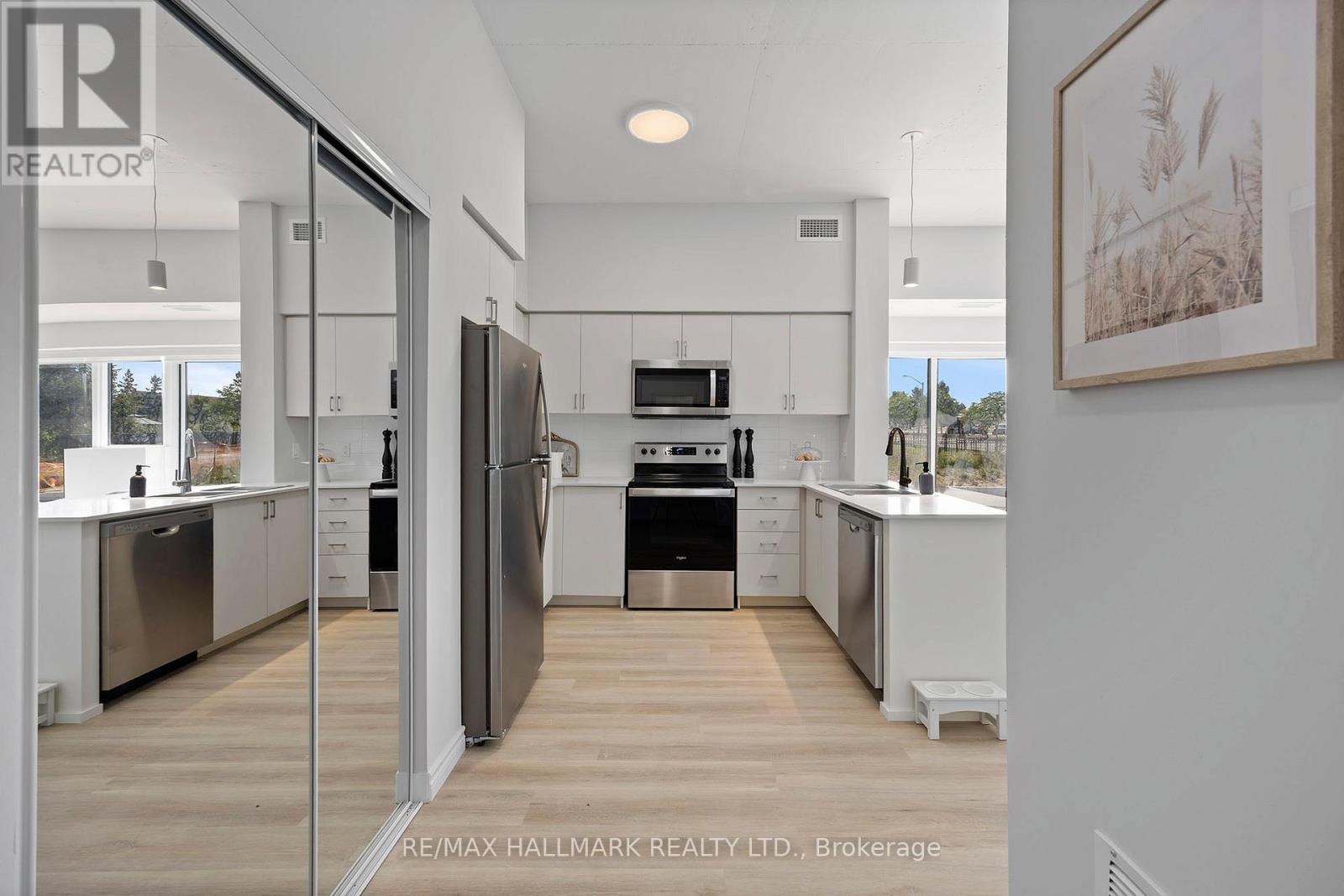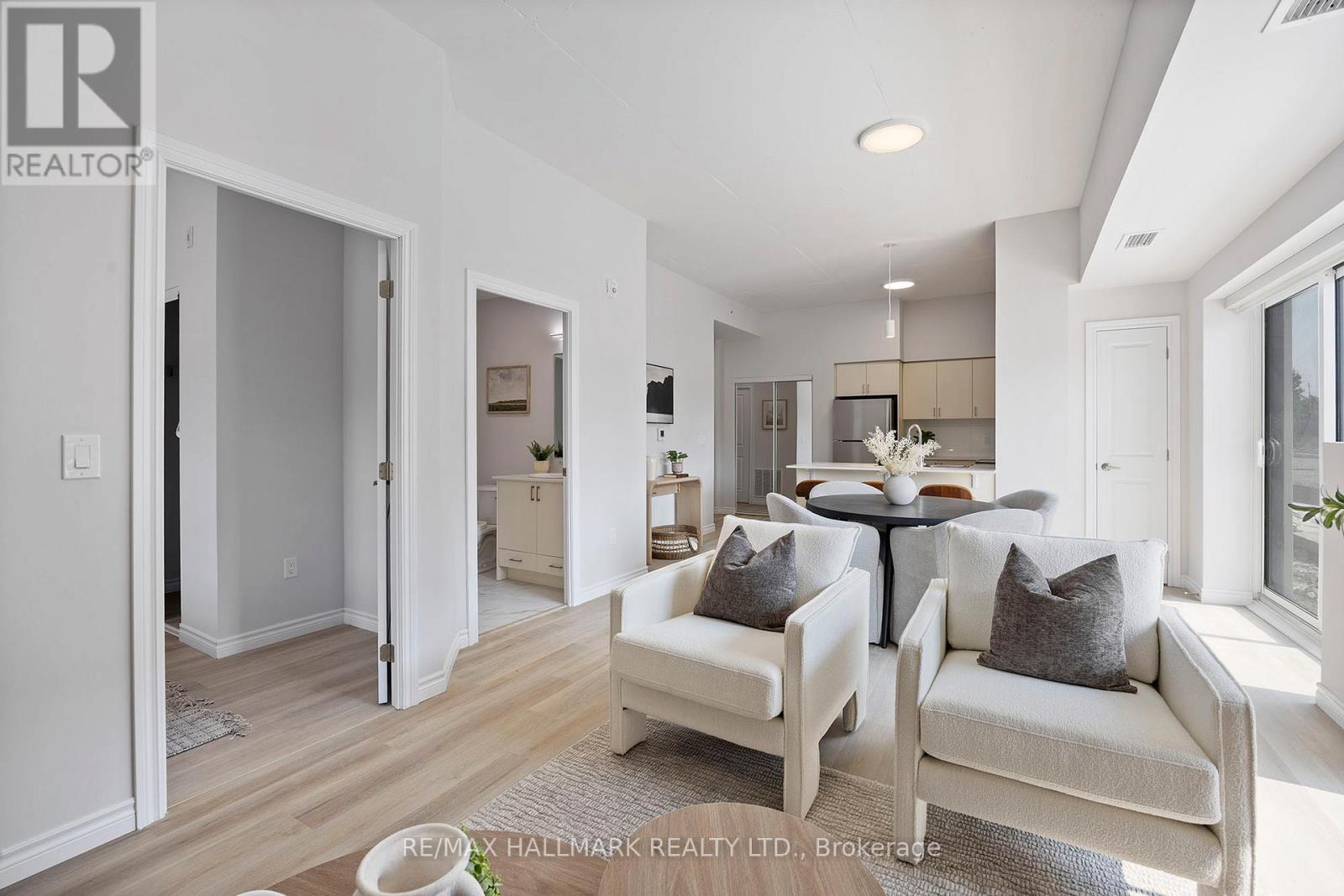 Welcome to The Deanwood in sought-after South Barrie! This bright and spacious 1+Den, 1-bath suite offers approximately 934 sq ft plus a private balcony, providing a perfect blend of comfort and functionality. The open-concept layout features a modern kitchen with sleek finishes and ample cabinetry, flowing into a generous living and dining area with large windows that fill the space with natural light. The versatile den is ideal for a home office or guest area, while the well-sized bedroom offers excellent closet space. Enjoy contemporary design throughout and the added bonus of your own outdoor balcony. Situated in Barrie's desirable Painswick community, this location offers a fantastic lifestyle with easy access to everyday conveniences. Just minutes from the scenic waterfront of Lake Simcoe, parks, walking trails, and beaches, it's perfect for those who enjoy the outdoors. Commuters will appreciate quick access to Highway 400 and GO Transit, while nearby shopping, restaurants, schools, and community amenities make daily living effortless. A great opportunity to live in a modern, professionally managed building in a quiet, family-friendly neighbourhood. (id:4555)