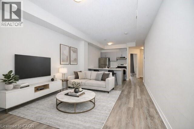 Rare find! Wonderful one floor stacked townhouse. Enjoy the spacious open concept living rm/dining and kitchen. Modern appointed kitchen with stunning grey cabinets, large island and stainless steel appliances. Wide plank vinyl flooring through out living area - no carpeting. Inviting foyer at your front door and balcony at your rear door. Nine foot ceilings and neutral finishes add to this modern styled unit. Located in the heart of an amazing Beamsville community. Step out your door to shops, restaurants, community centre with library, arena and park. Move in immediate! Some listing photos have been virtually staged. (id:4555)